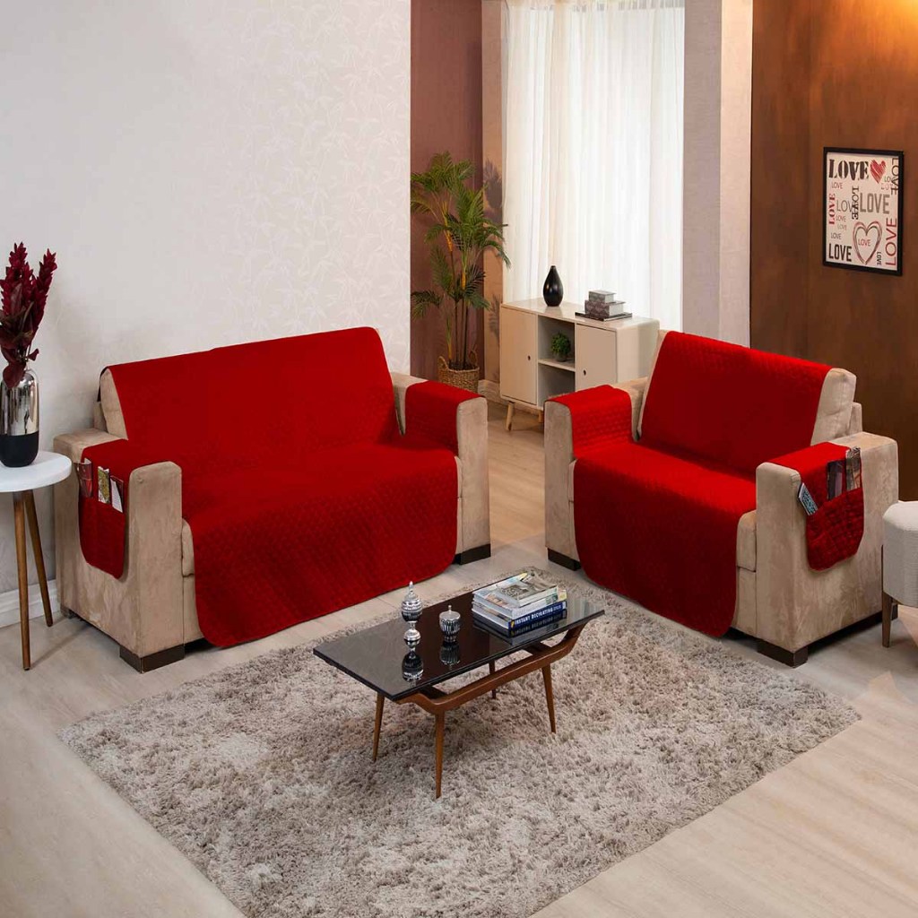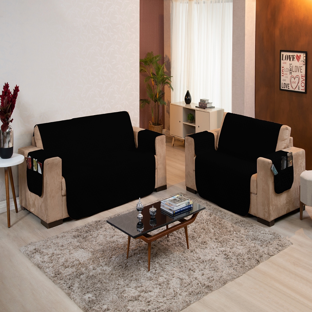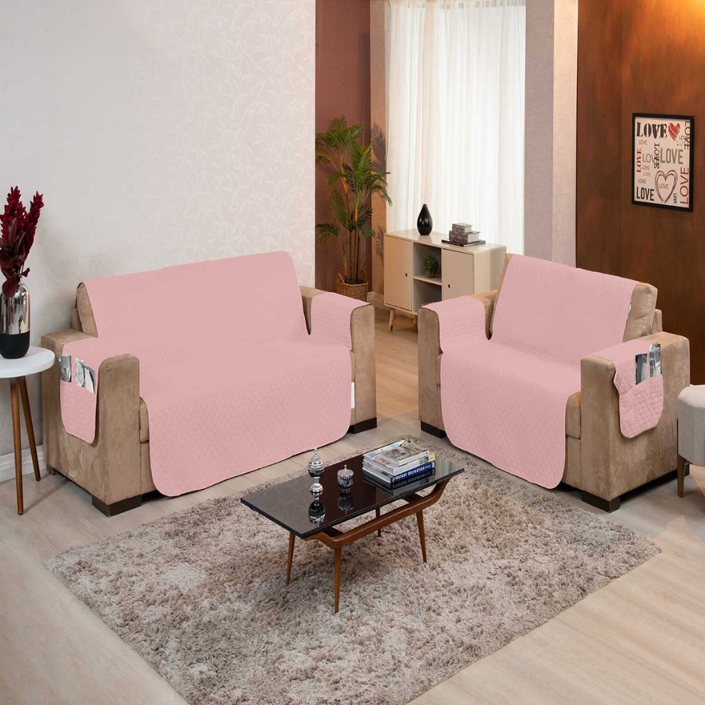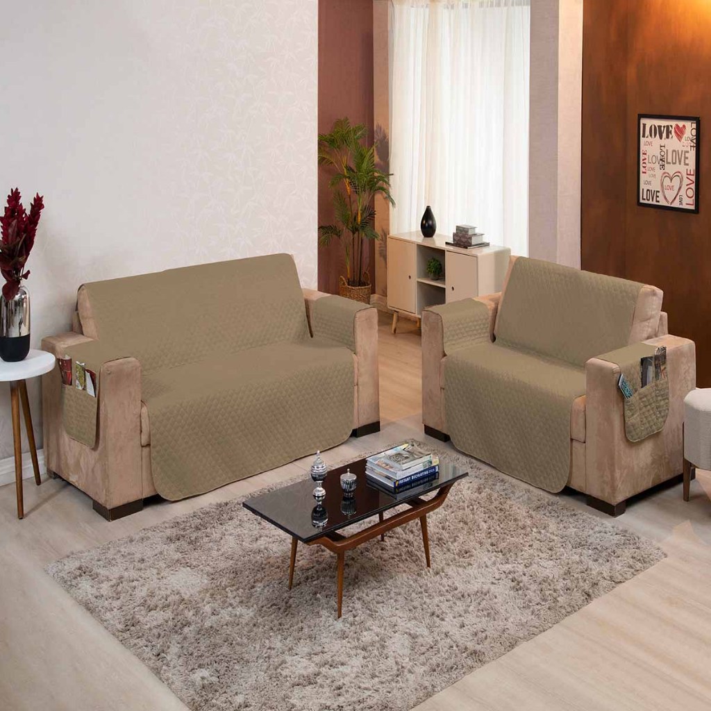 Kit Protetor De Sofá 2 e 3 Lugares Matelado retratil 100% Poliester Com Bolso Toque Macio