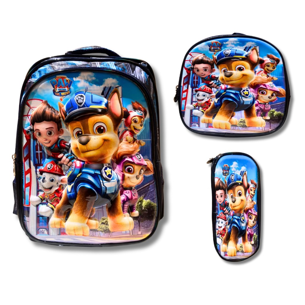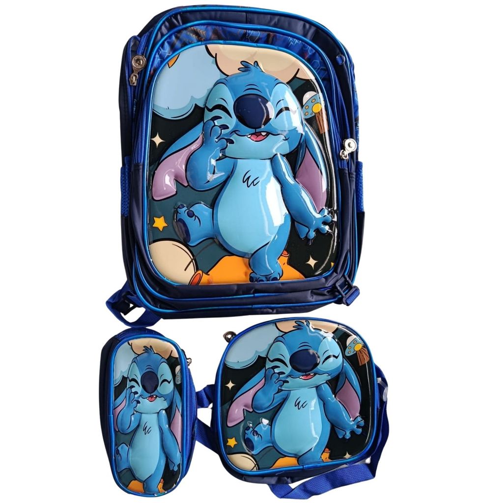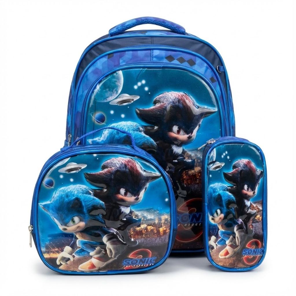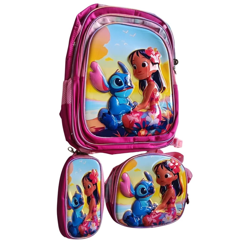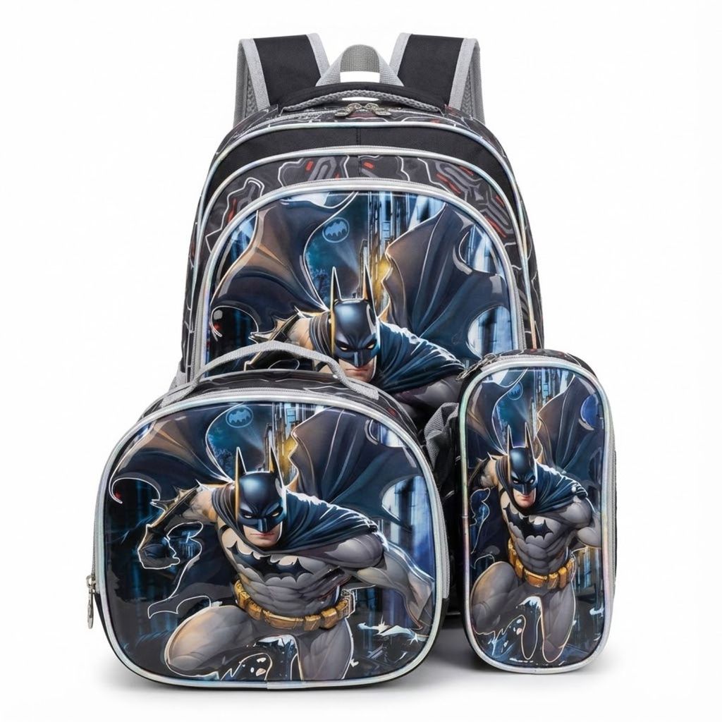 Kit Mochila Escolar Infantil Lancheira Estojo Estampas 3D Menino e Menina