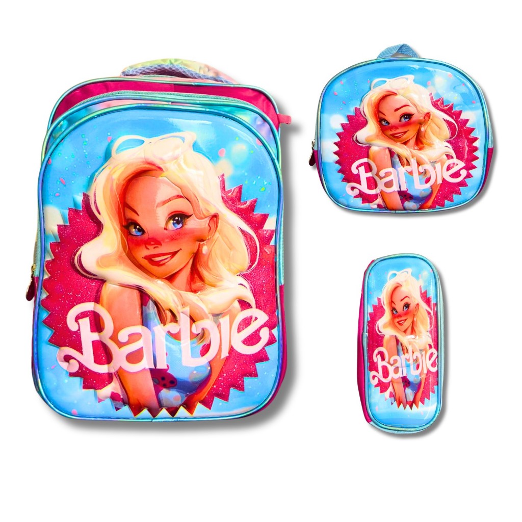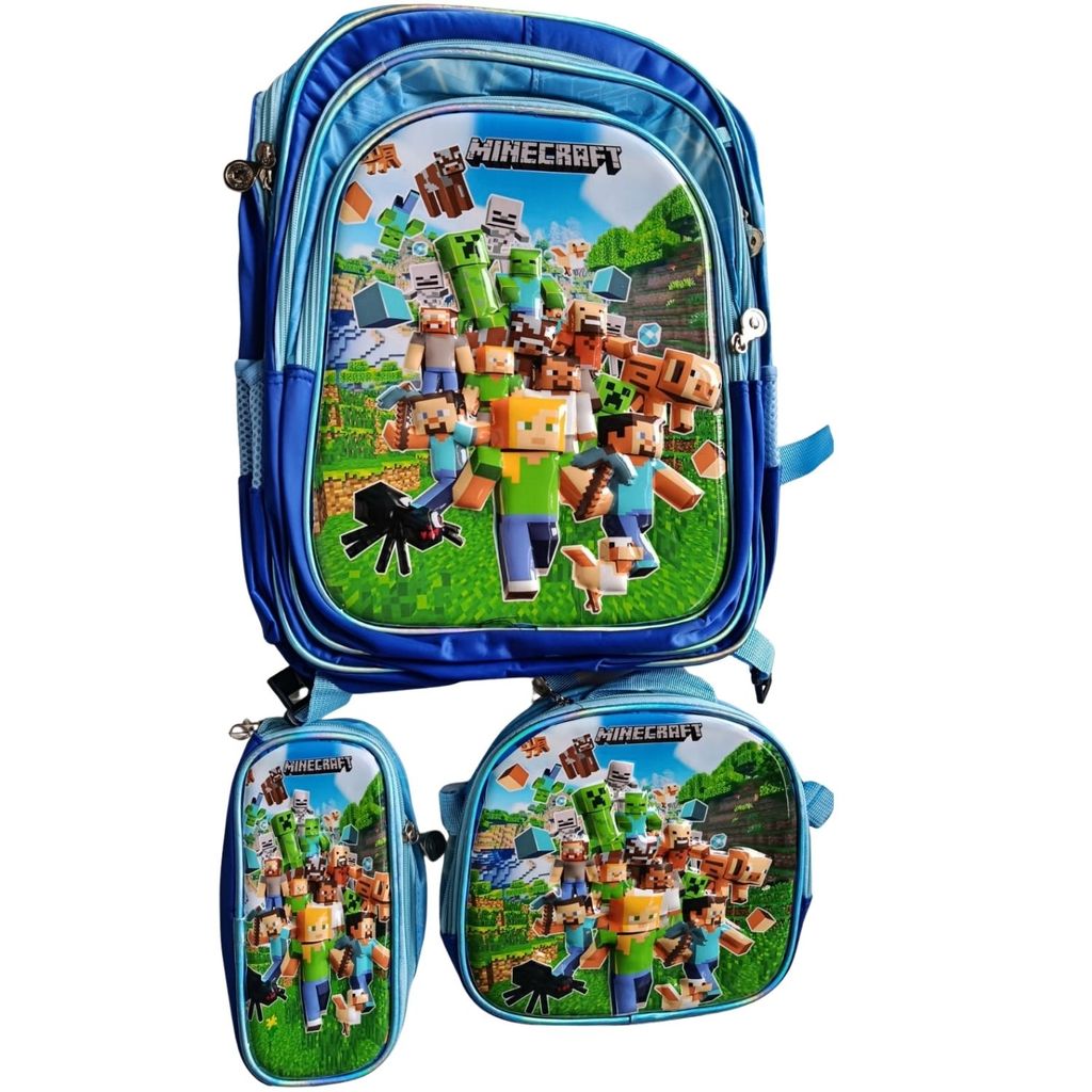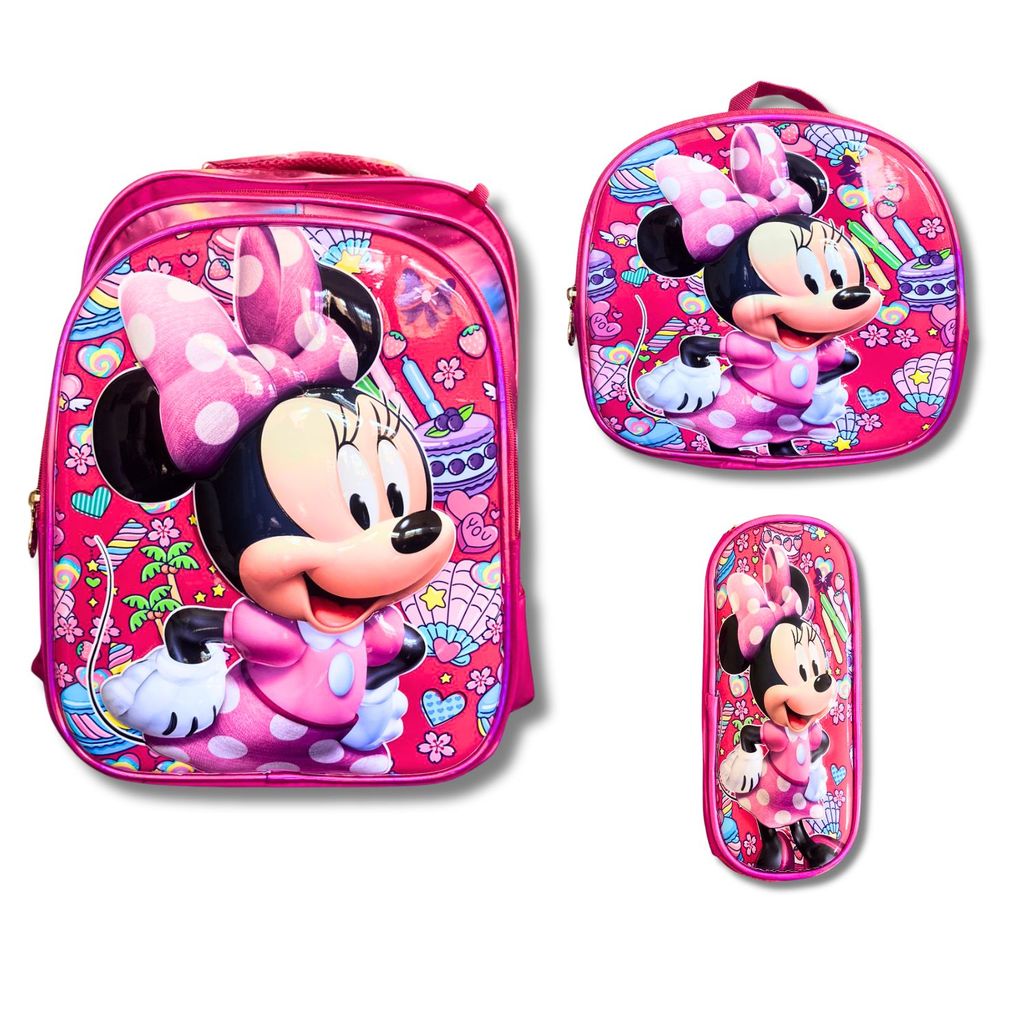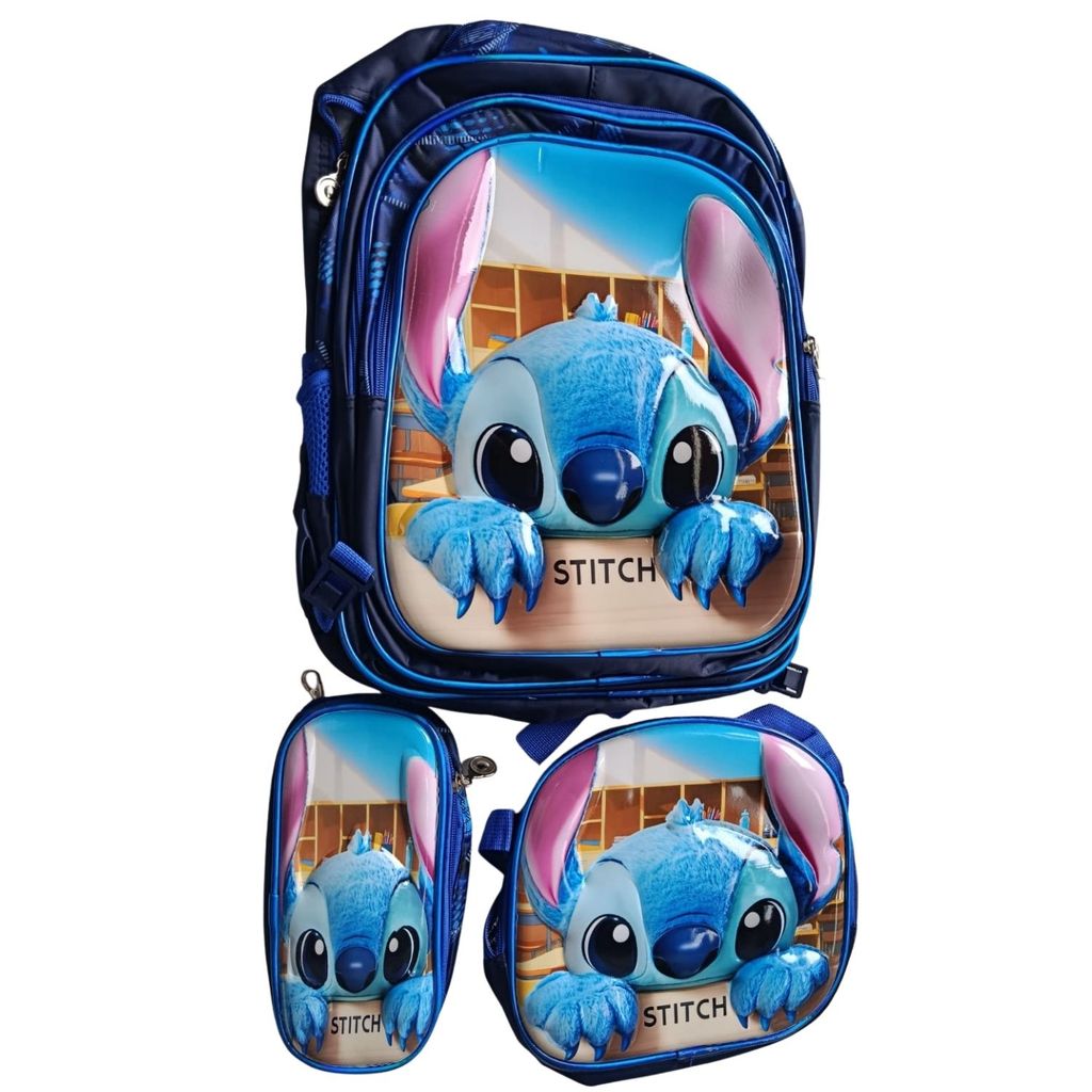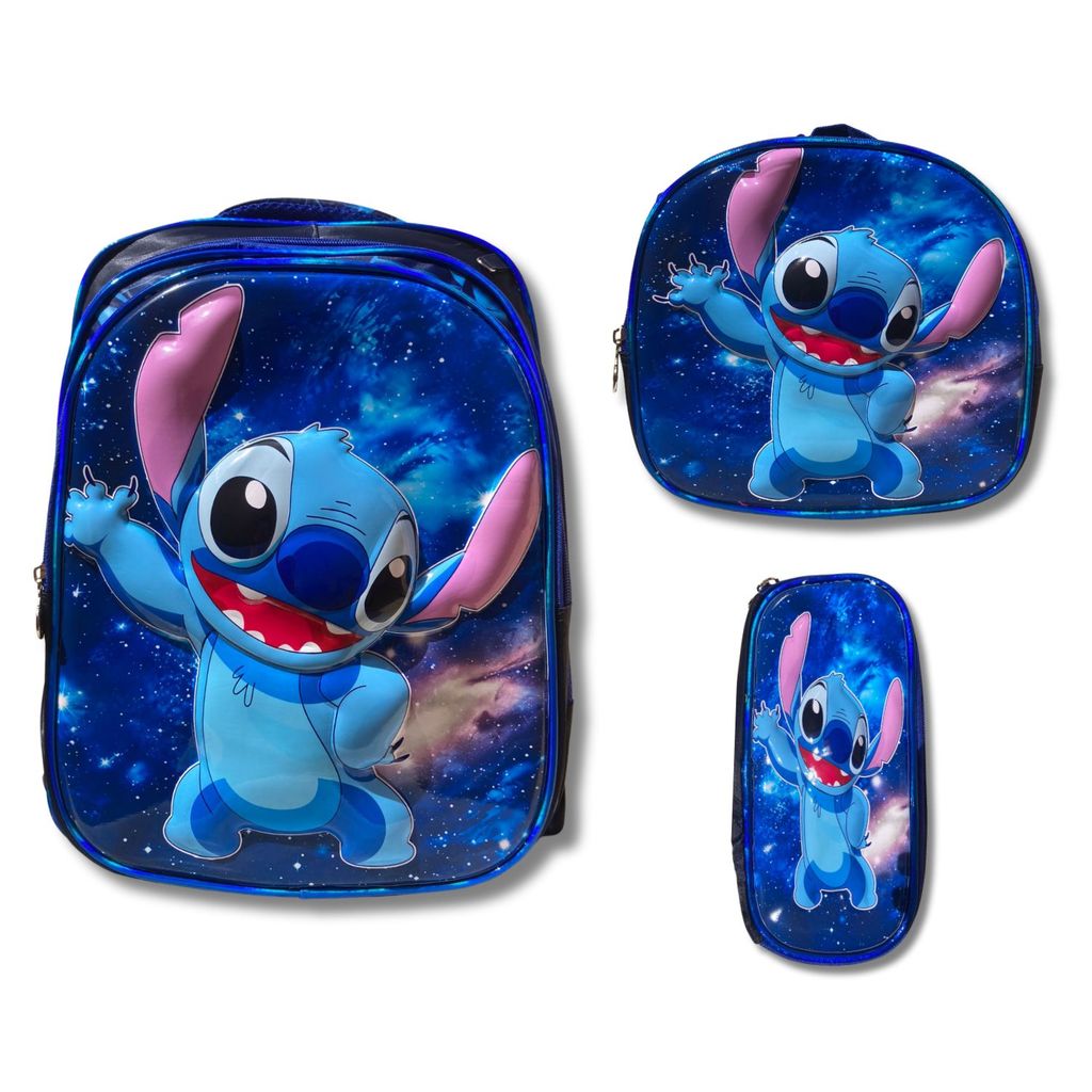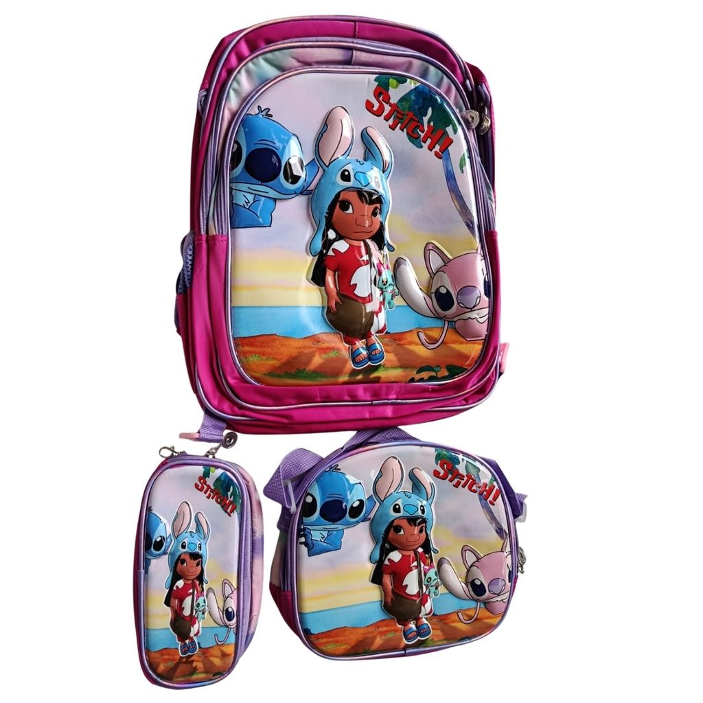 Kit Mochila Escolar Infantil Lancheira Estojo Estampas 3D Menino e Menina