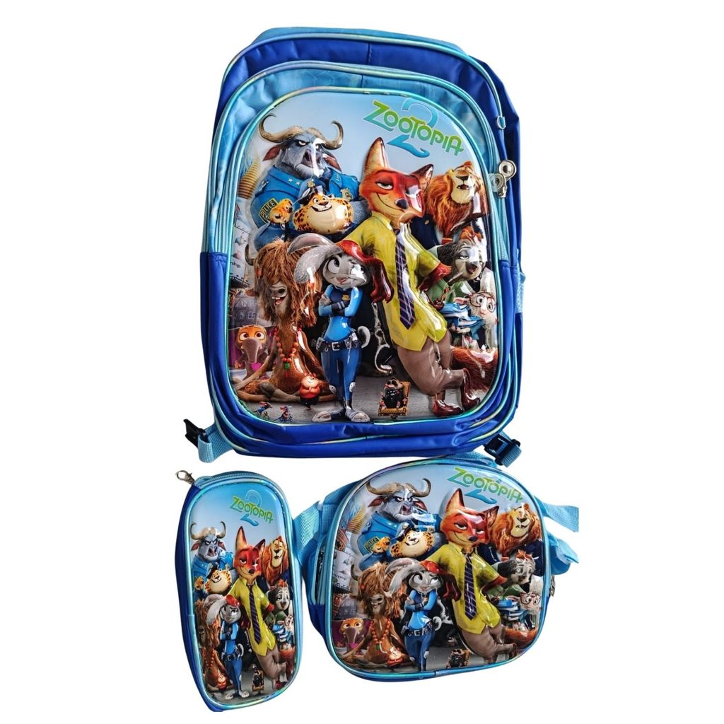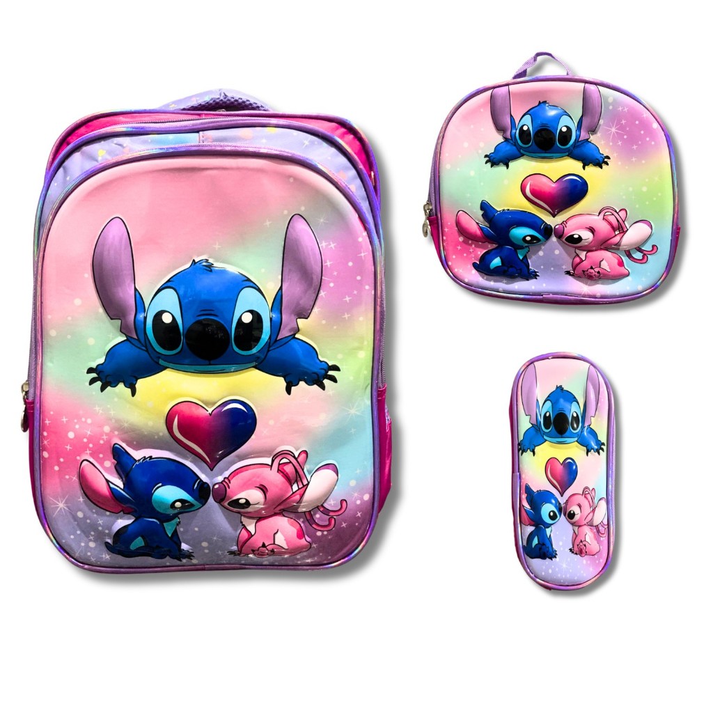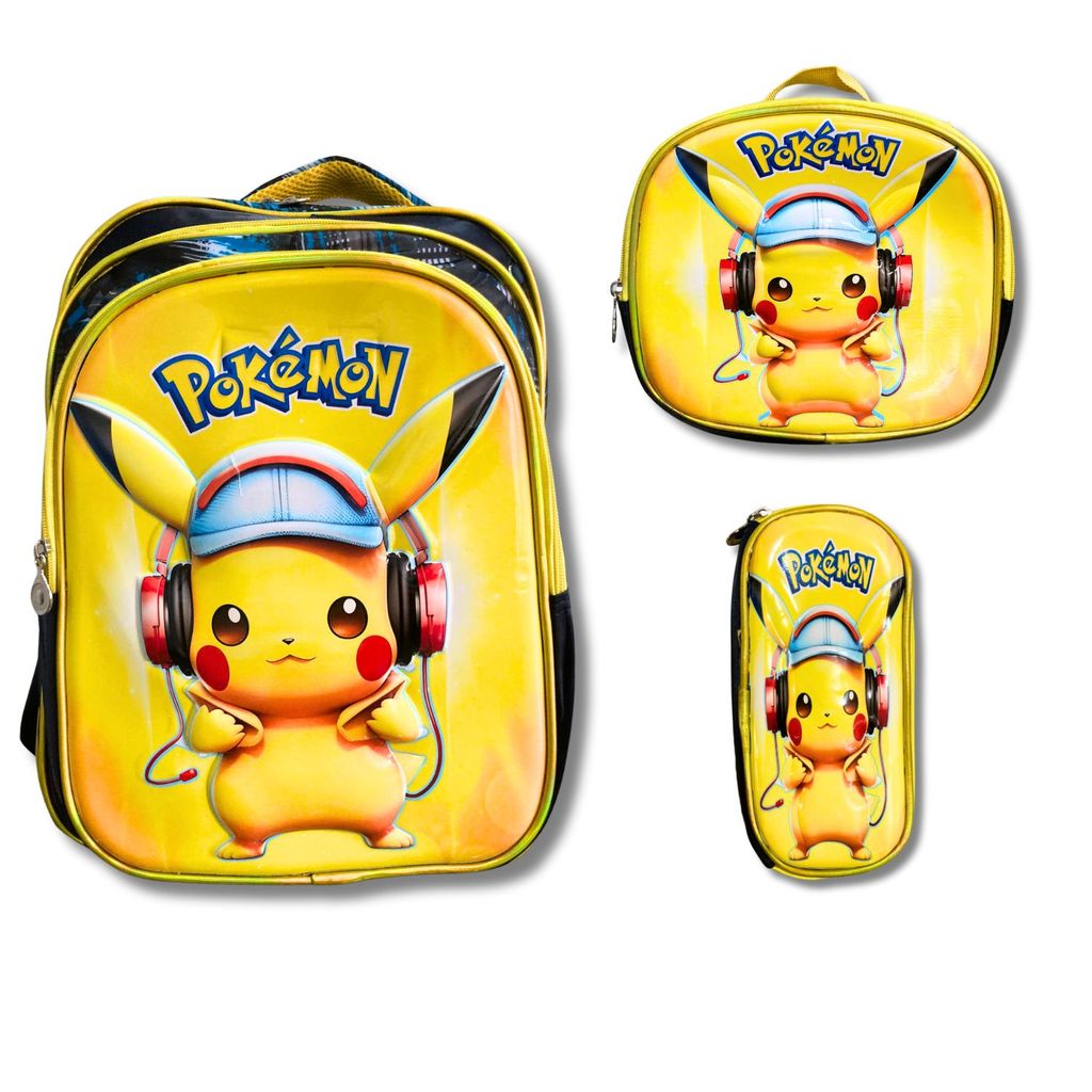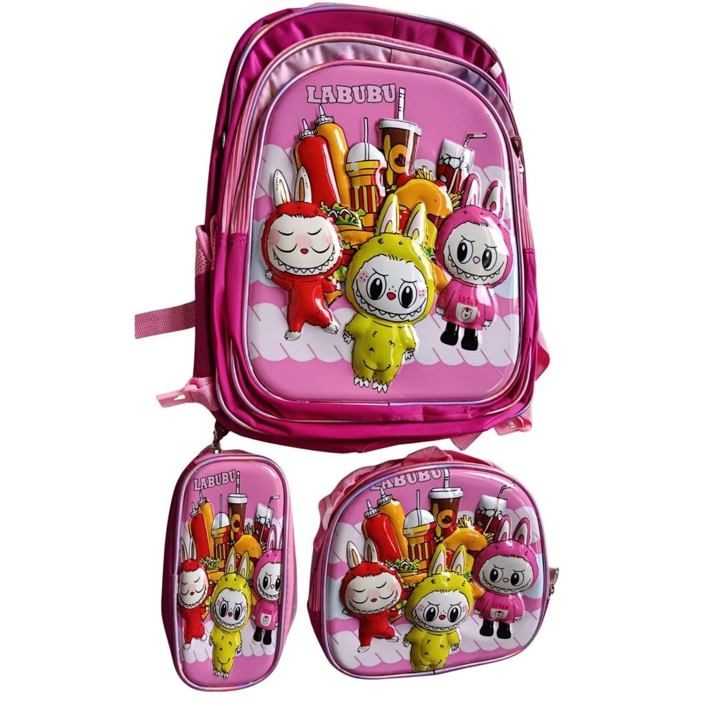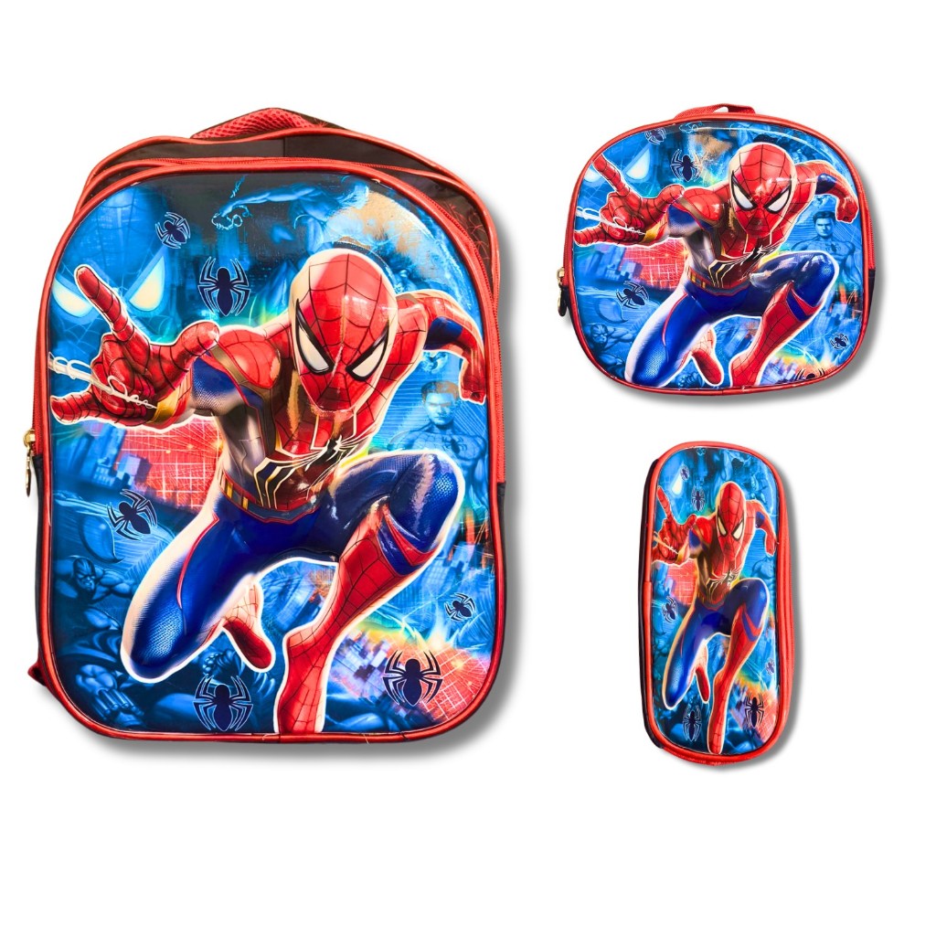 Kit Mochila Escolar Infantil Lancheira Estojo Estampas 3D Menino e Menina