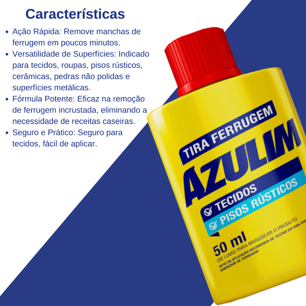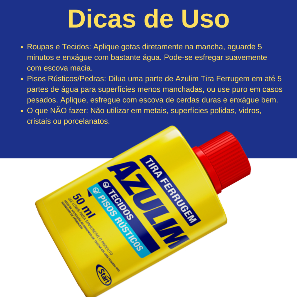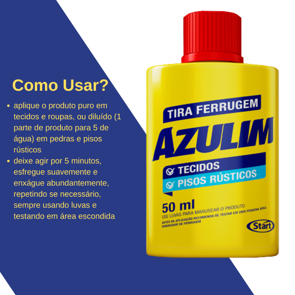 Até 2UN Tira Ferrugem Azulim 50ml Para Tecidos/Pisos Rústicos