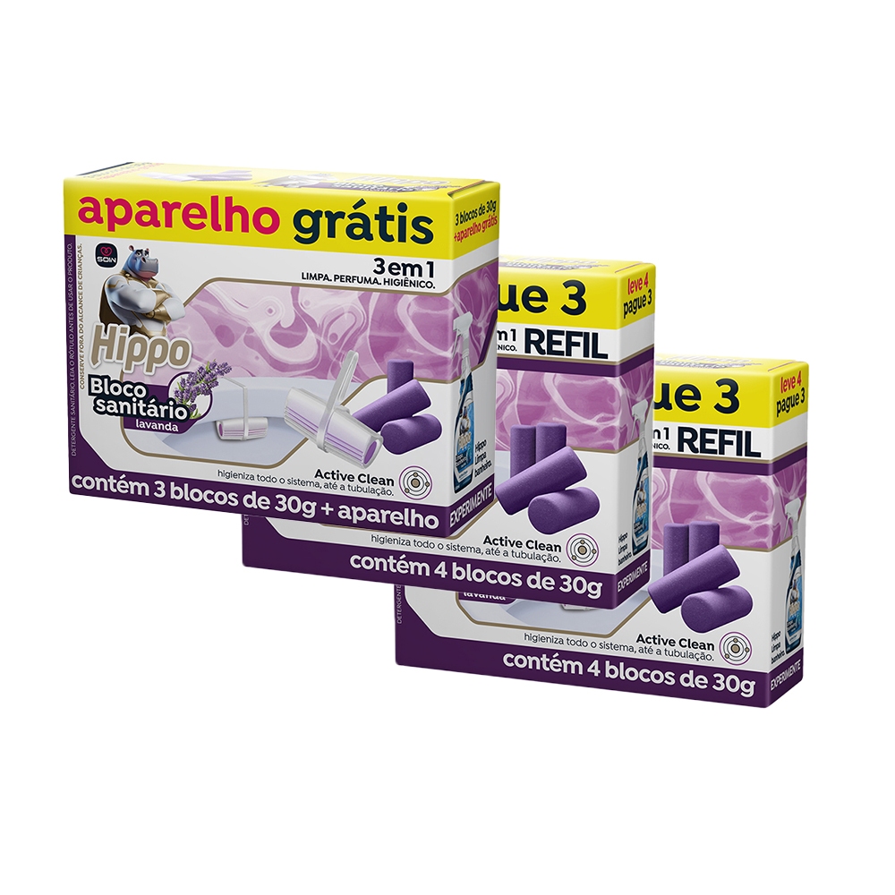 Kit com 3 Un. Bloco sanitário Hippo - Ap e Refil