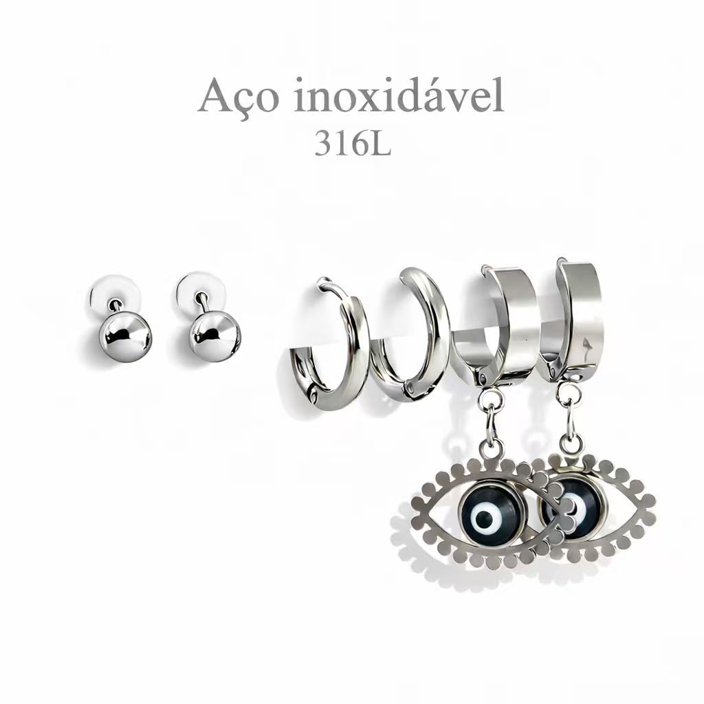 Brincos de argola hipoalergênicos de 6 unidades feitos de prata esterlina 925 e ouro -