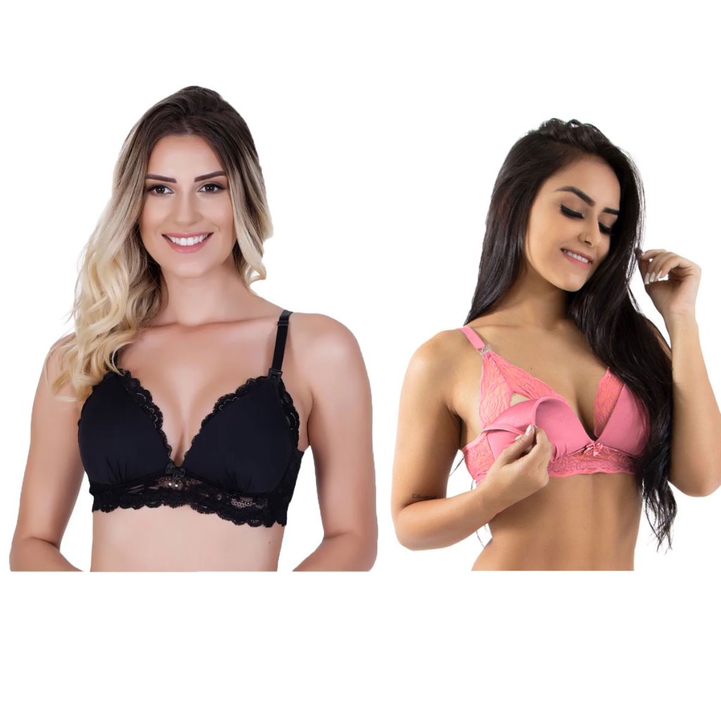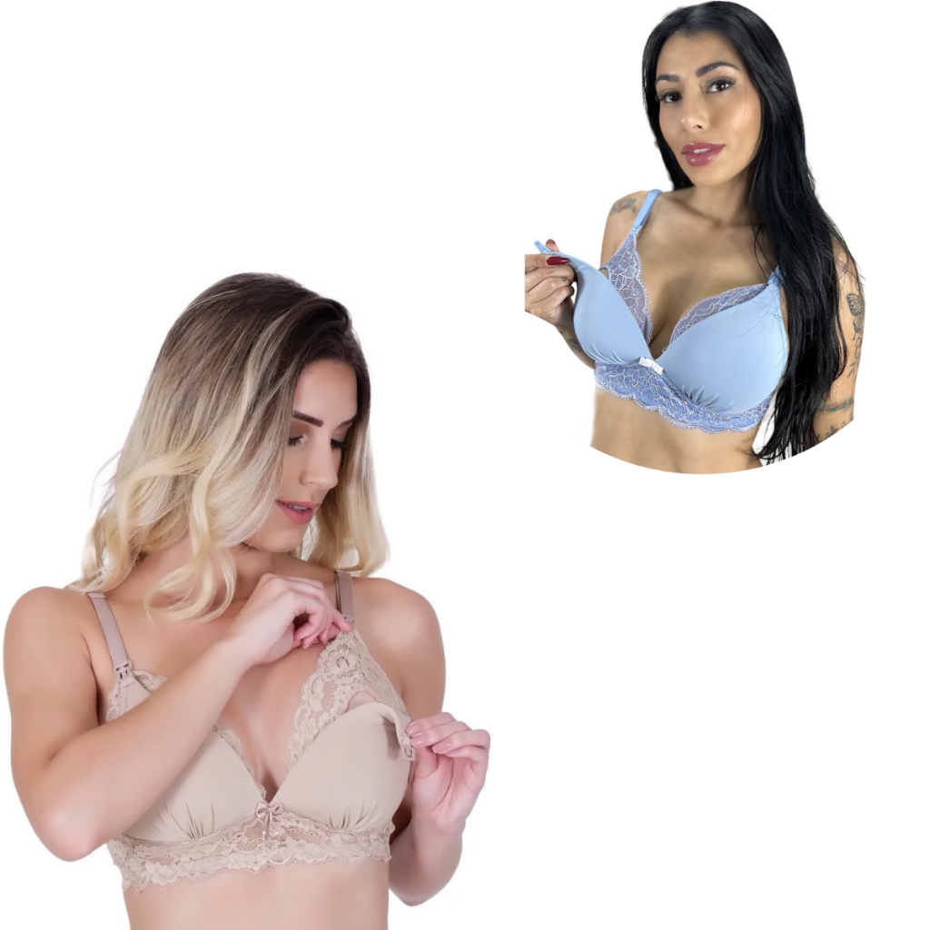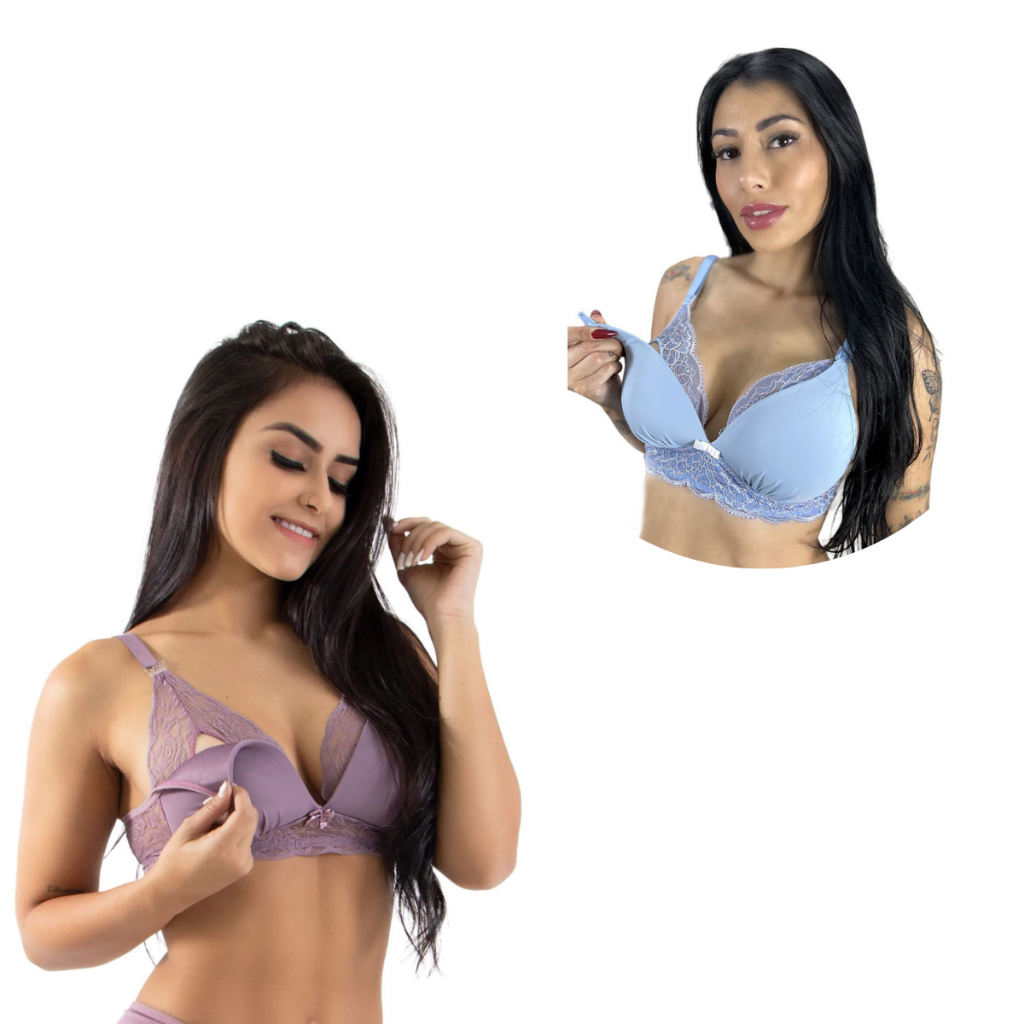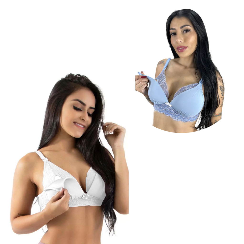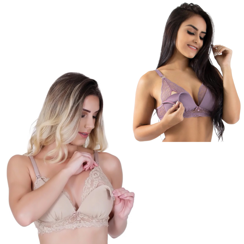 Kit 2 Sutiã Amamentação com Bojo Soft de Algodão e Renda Gestante Pós Parto