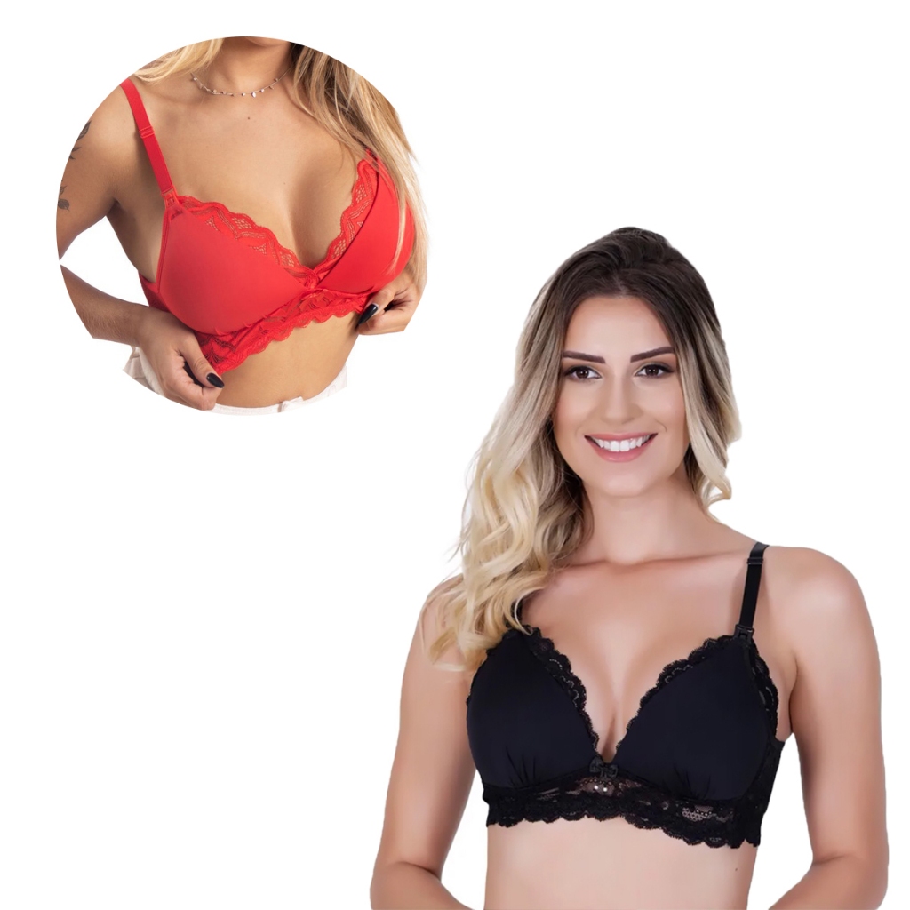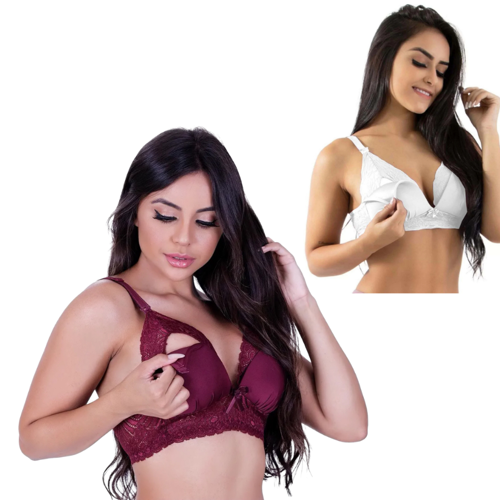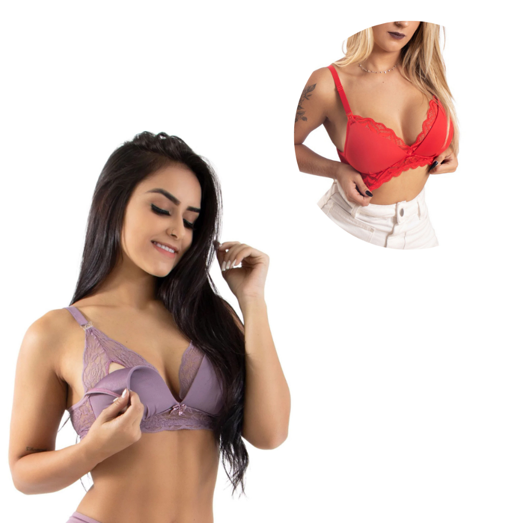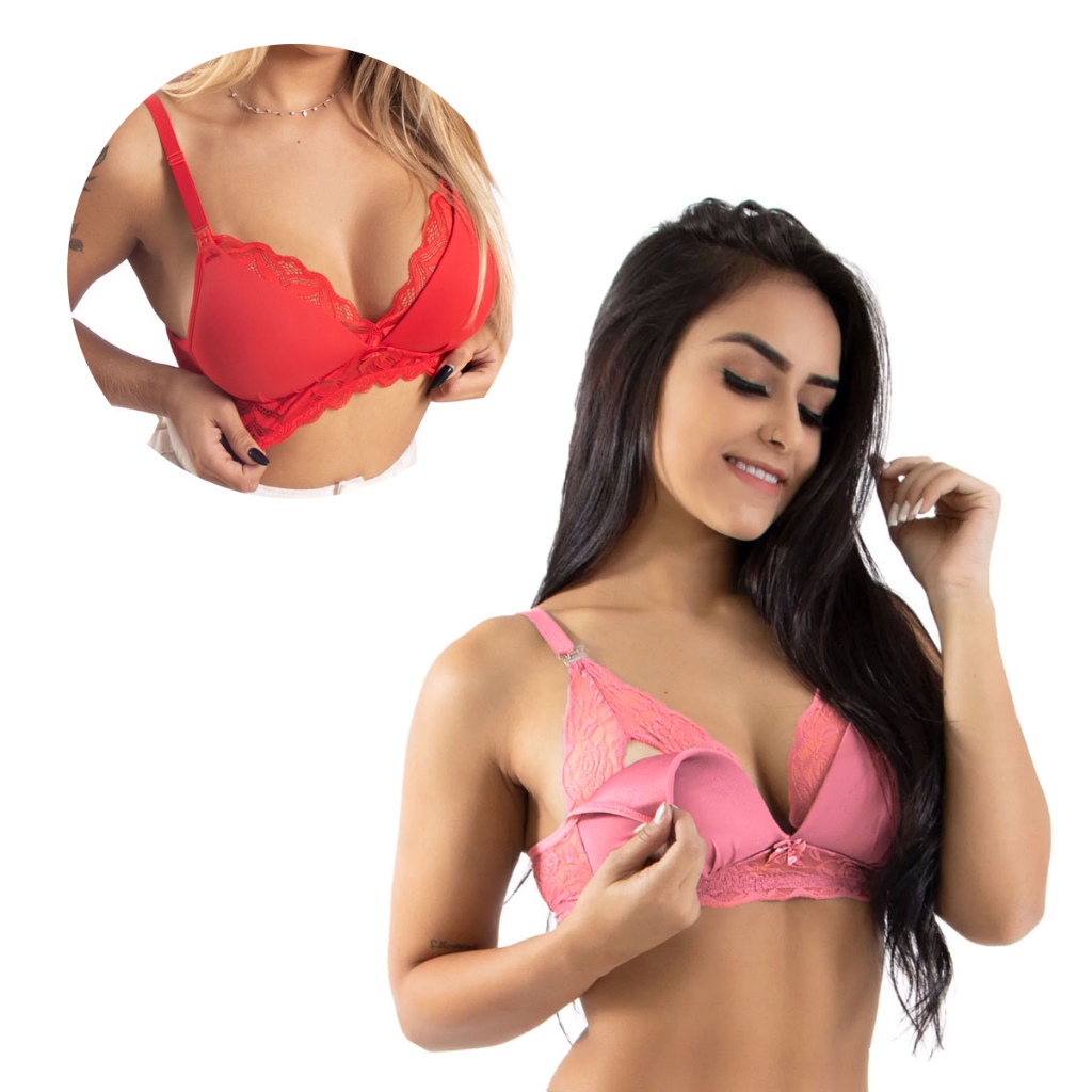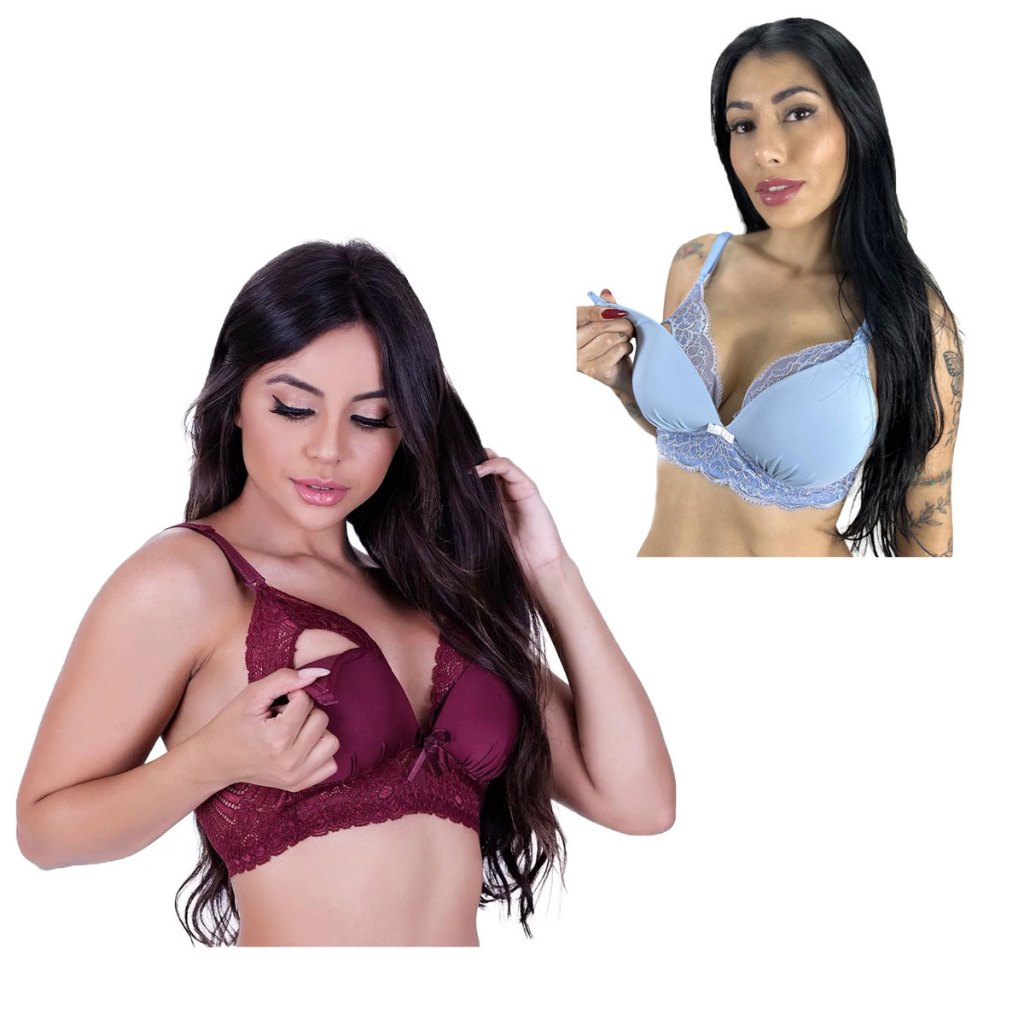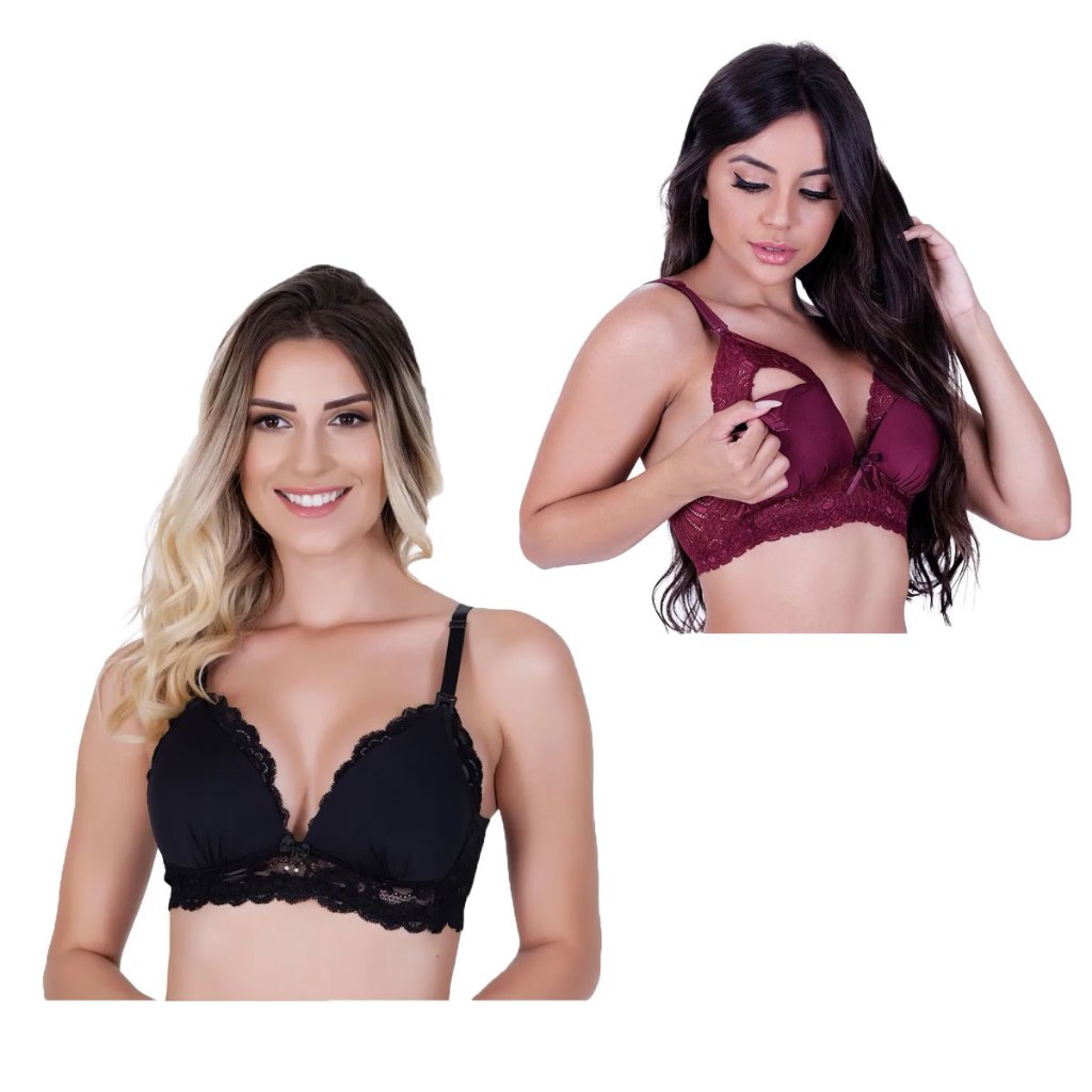 Kit 2 Sutiã Amamentação com Bojo Soft de Algodão e Renda Gestante Pós Parto