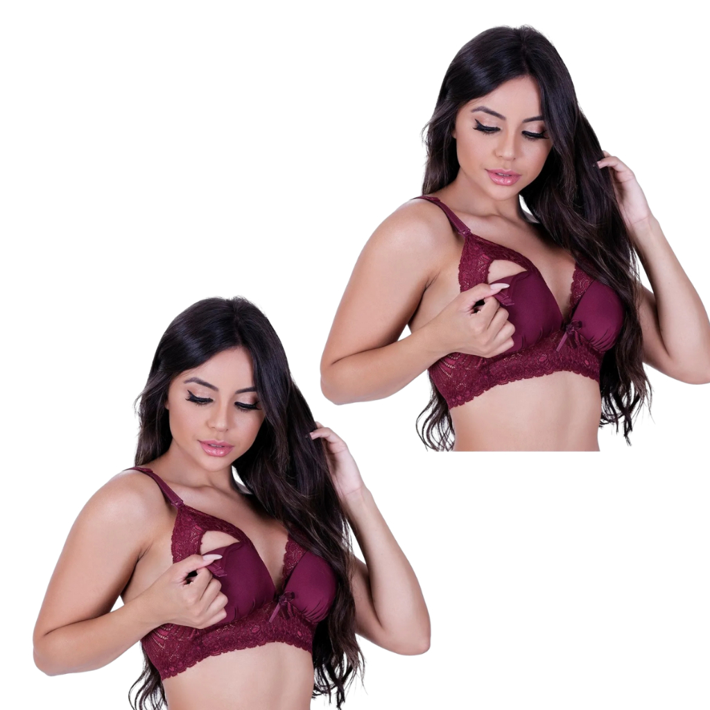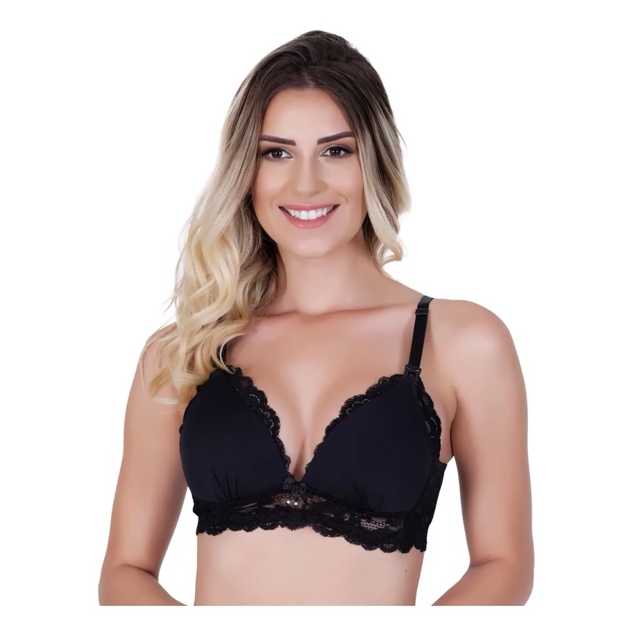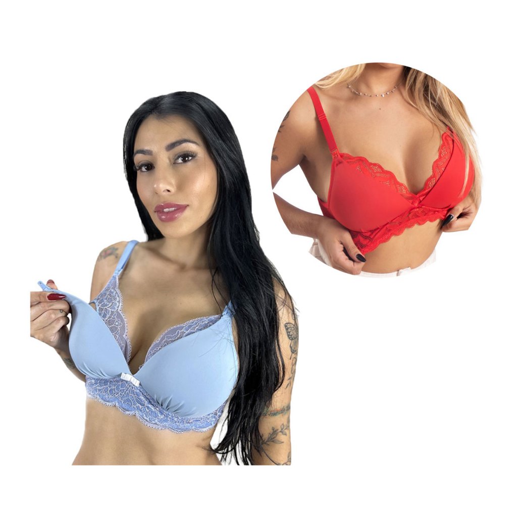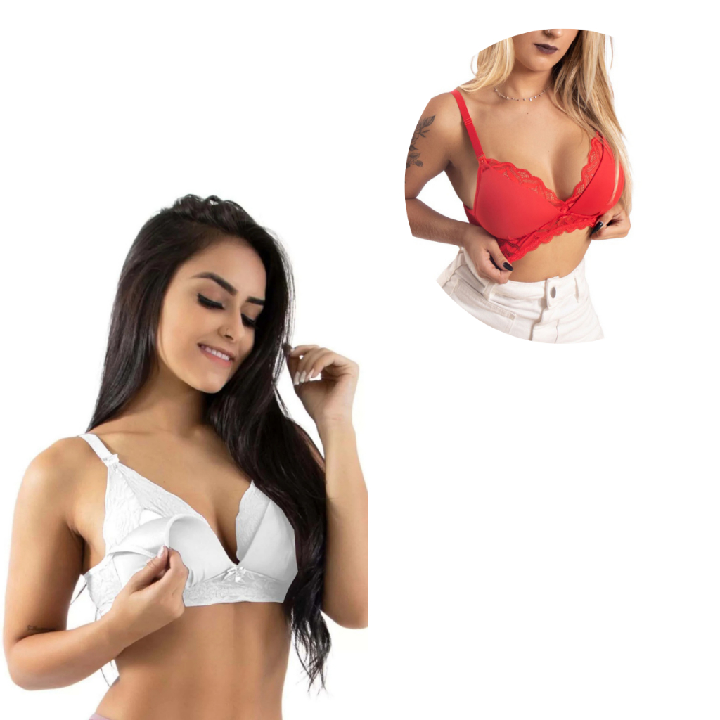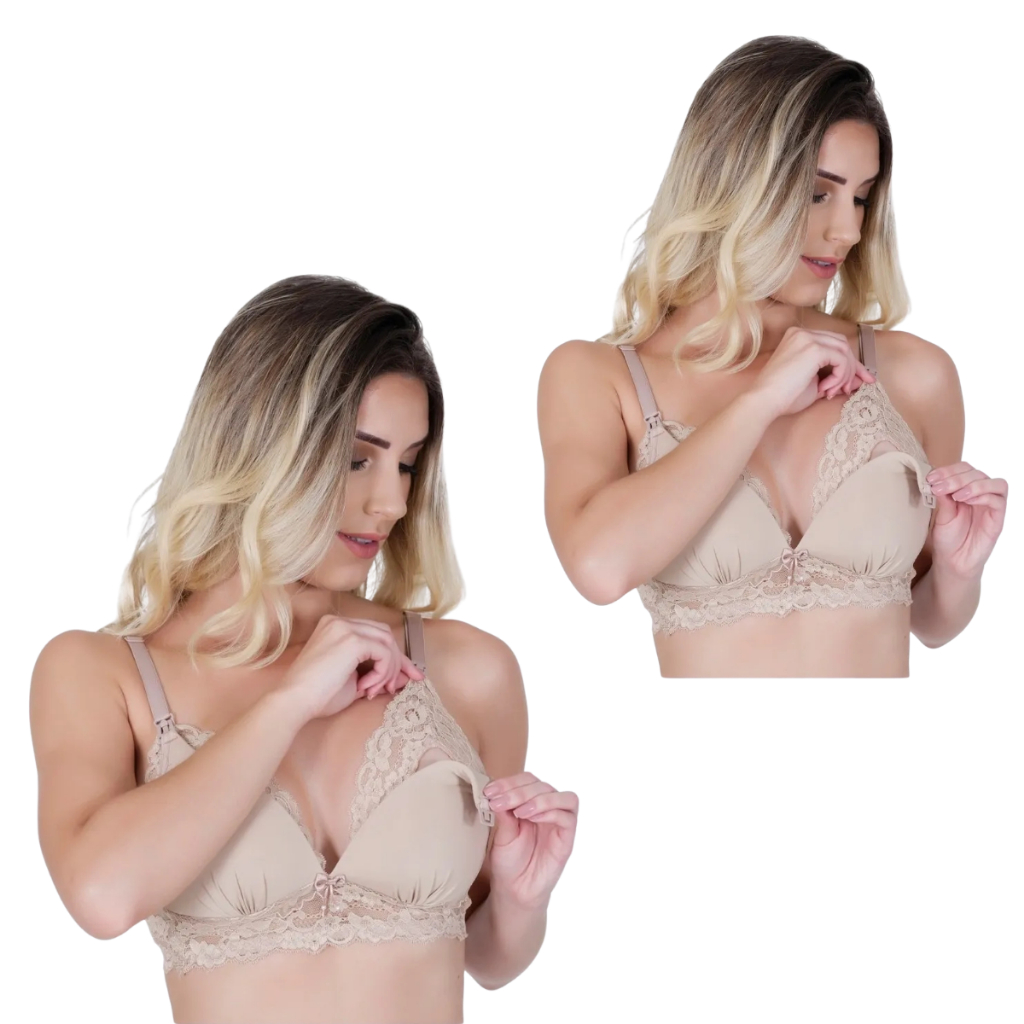 Kit 2 Sutiã Amamentação com Bojo Soft de Algodão e Renda Gestante Pós Parto