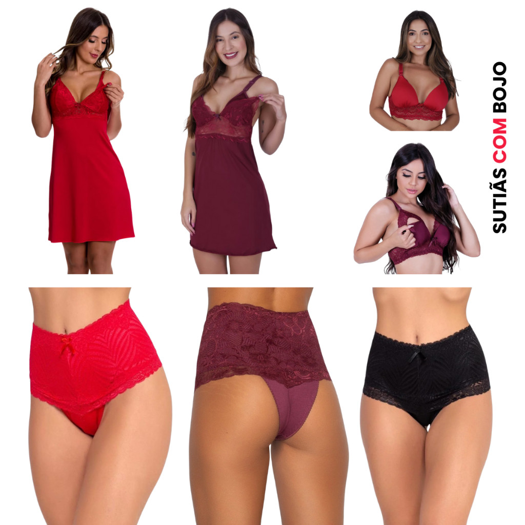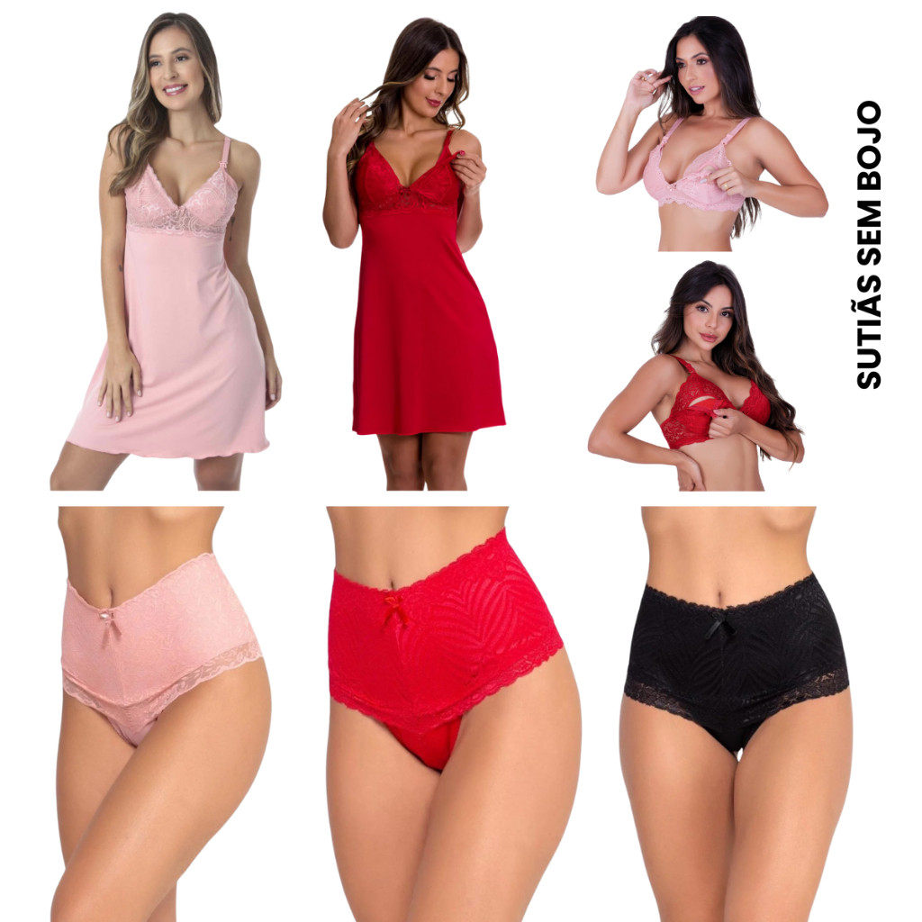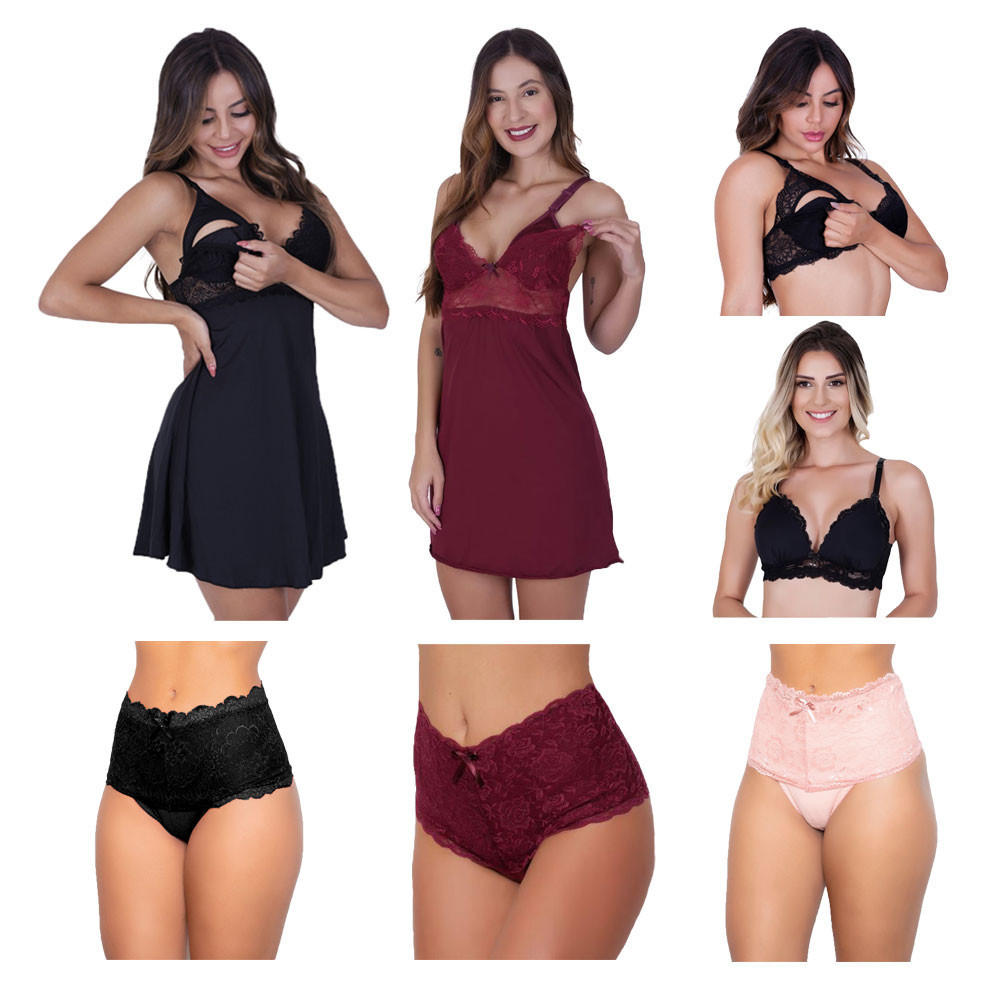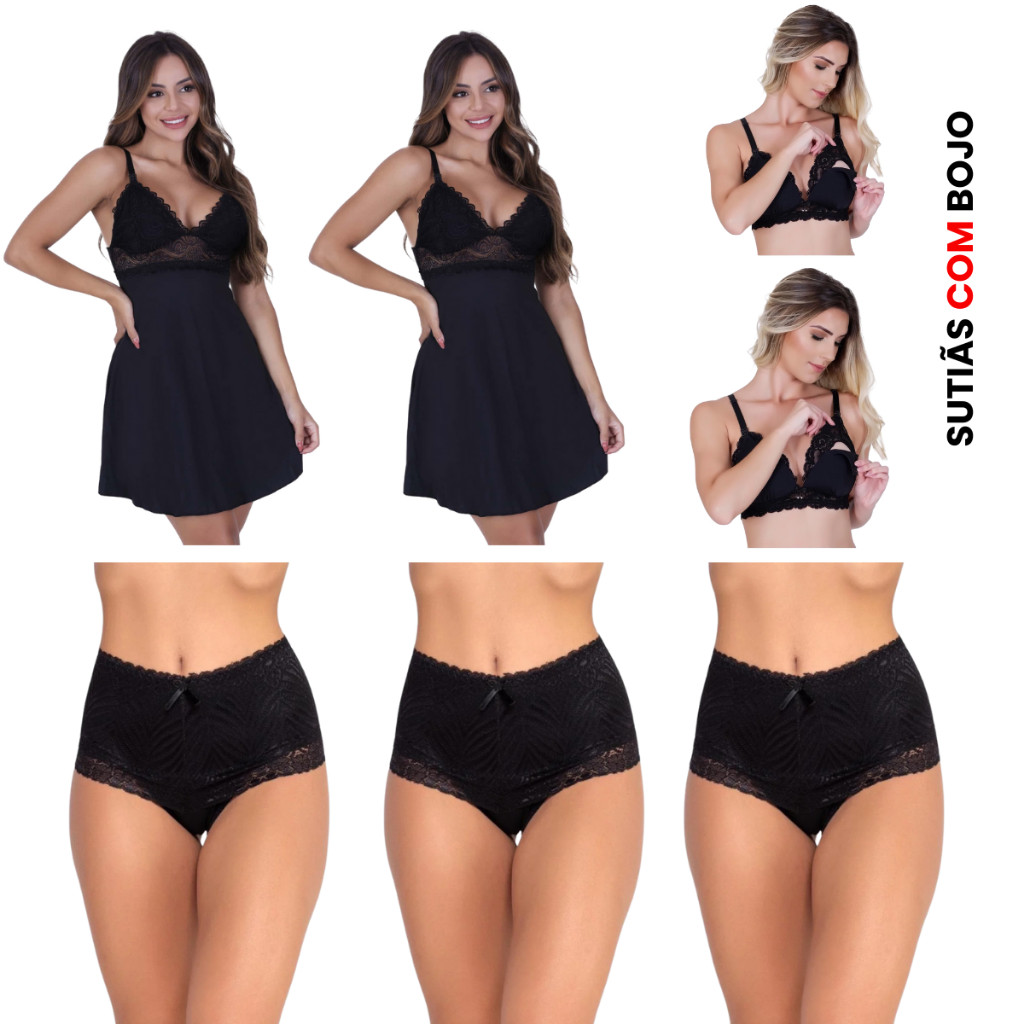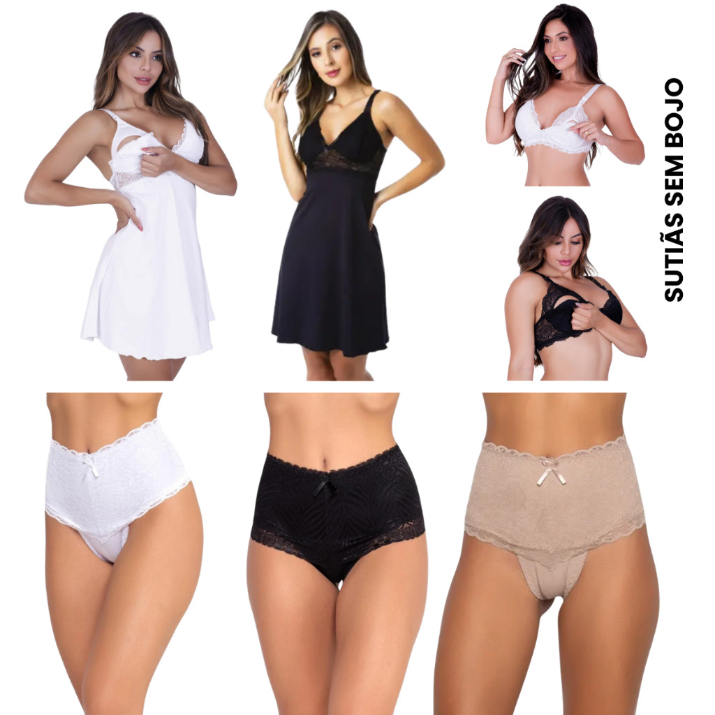 Kit Amamentação 2 Camisolas + 2 Sutiã Amamentação Com Bojo ou Sem Bojo + 3 Calcinha Pós Parto