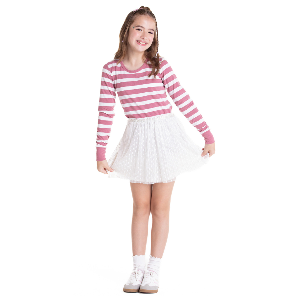 Blusa Cotton Manga Longa Listrada Juvenil Menina Tamanho 12 ao 16
