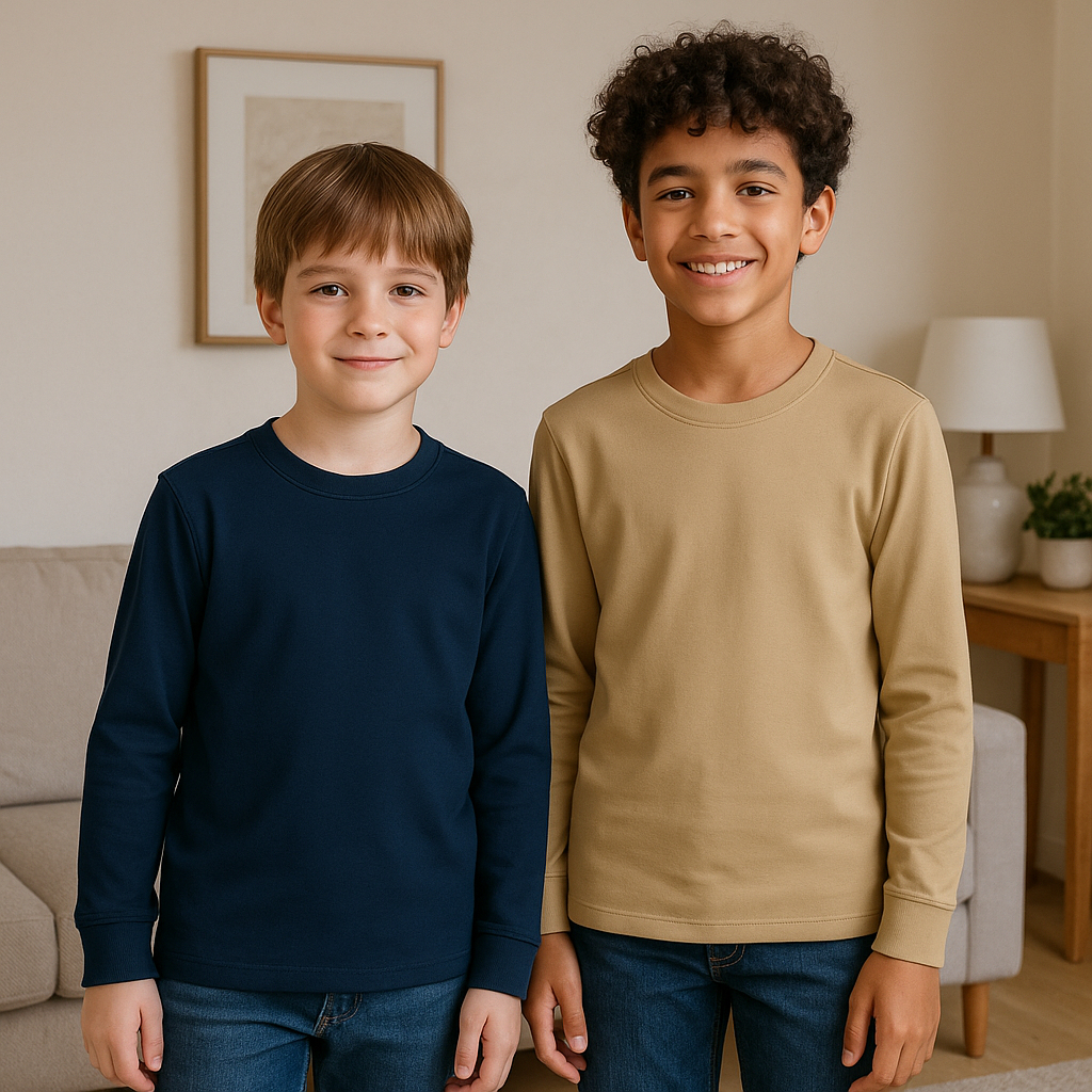Blusa 100% Algodão Manga Longa Infantil Juvenil Menino Malha Lisa Basica Tamanho 1 ao 16