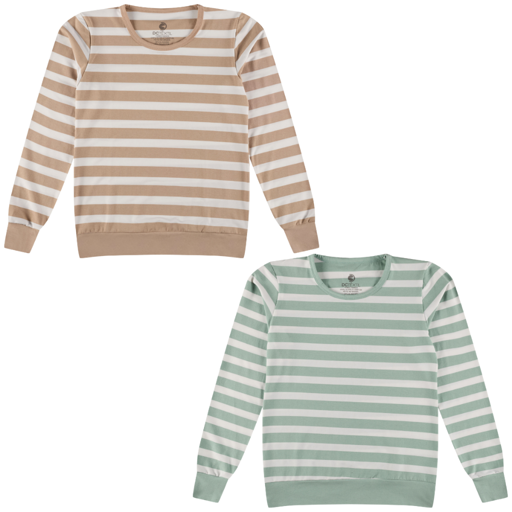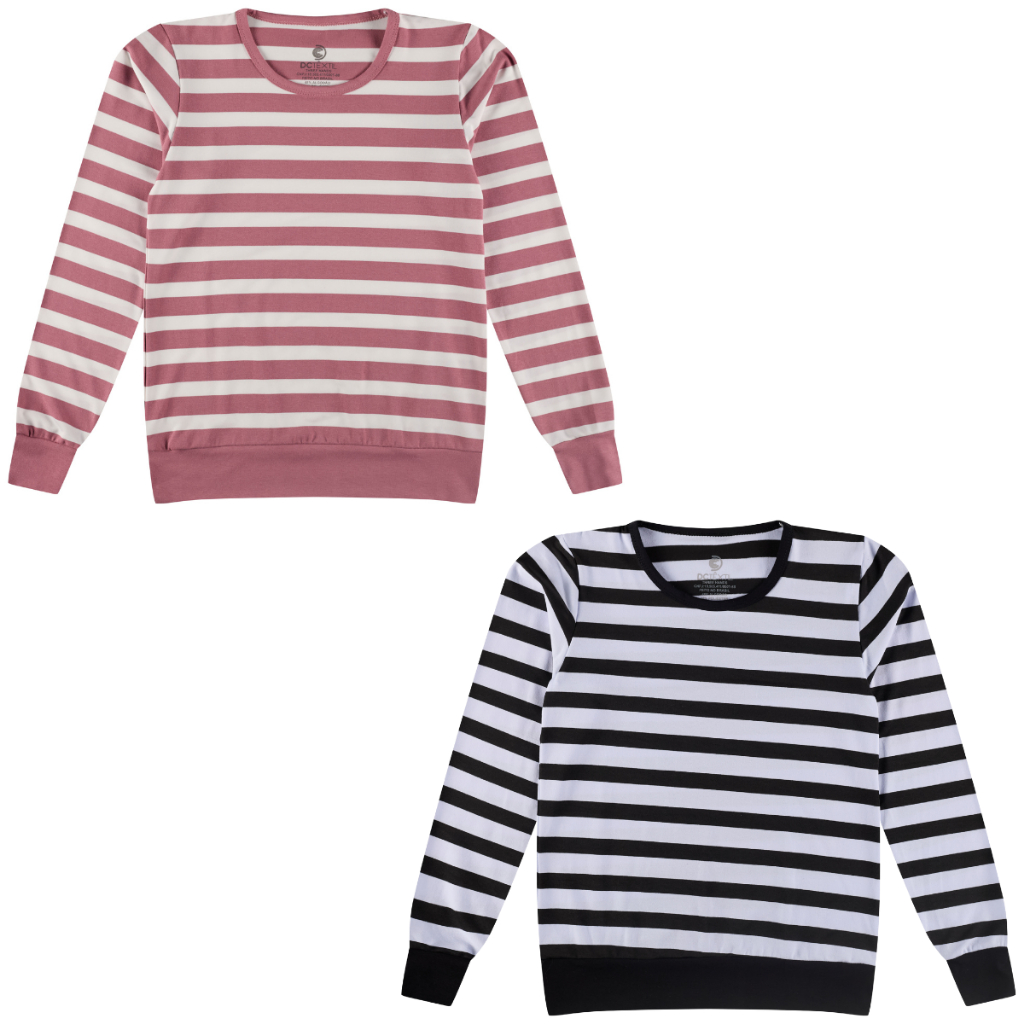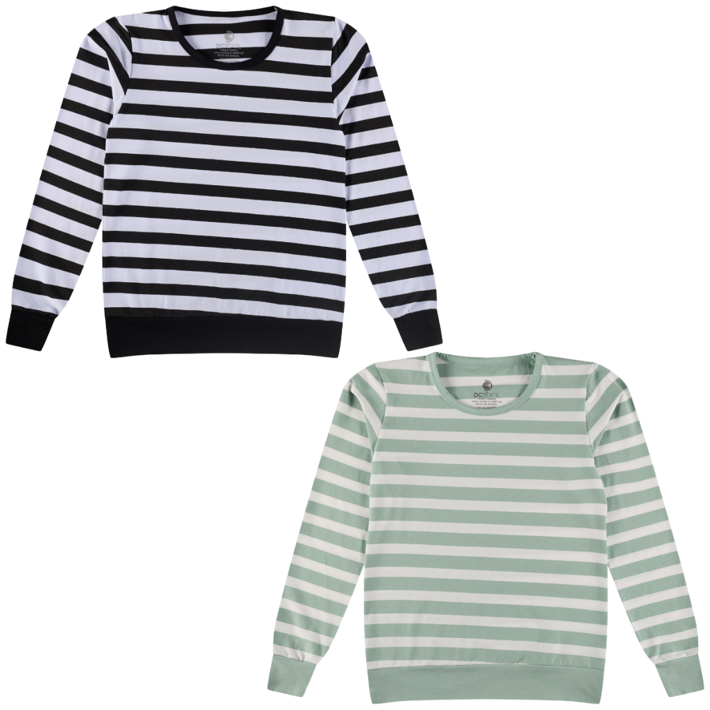 Kit 2 Blusa Cotton Manga Longa Listrada Juvenil Menina Tamanho 12 ao 16