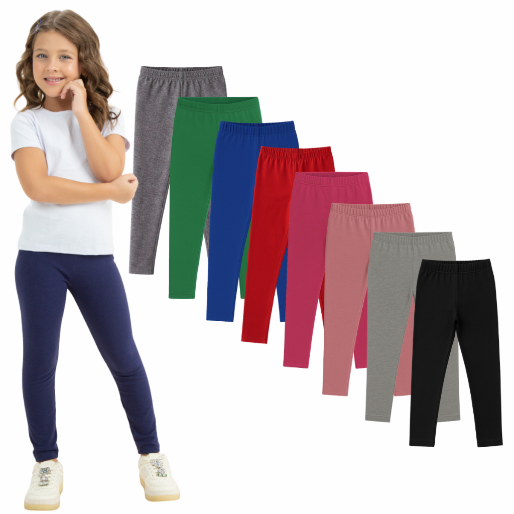Kit 5 Calça Legging Cotton Uniforme Escolar Infantil Juvenil Menina Tamanho 1 ao 16