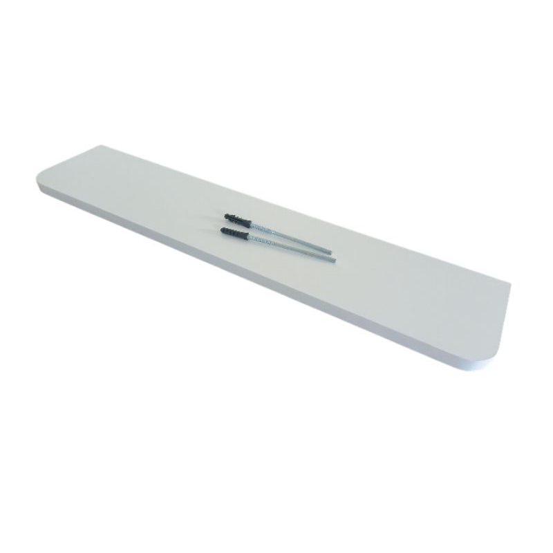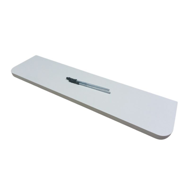 Prateleira boleada flutuante de canto arredondado MDF 18mm Branco c/ suporte invisível salão, parede, banheiro, decoraçã