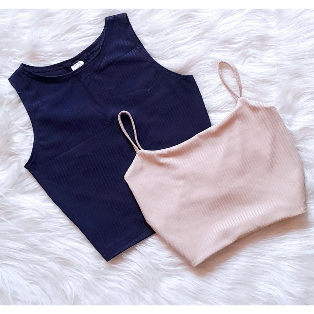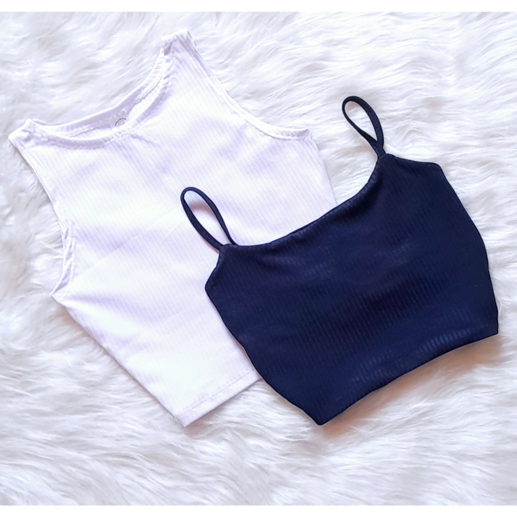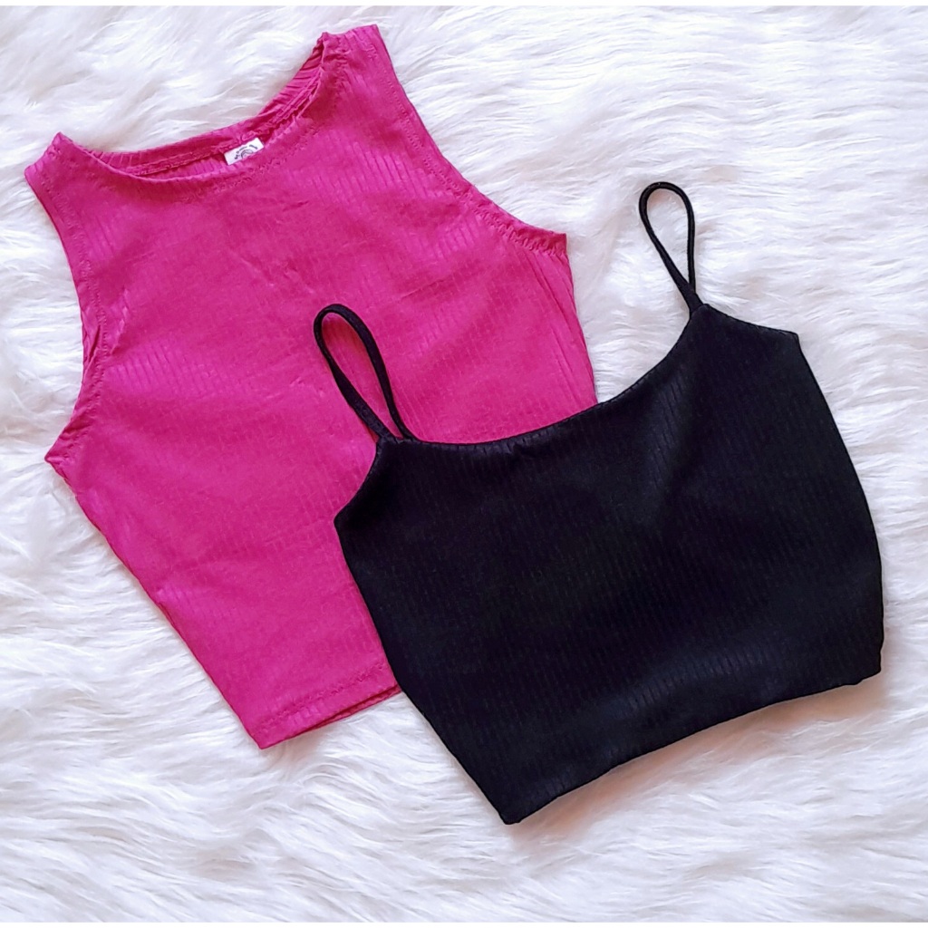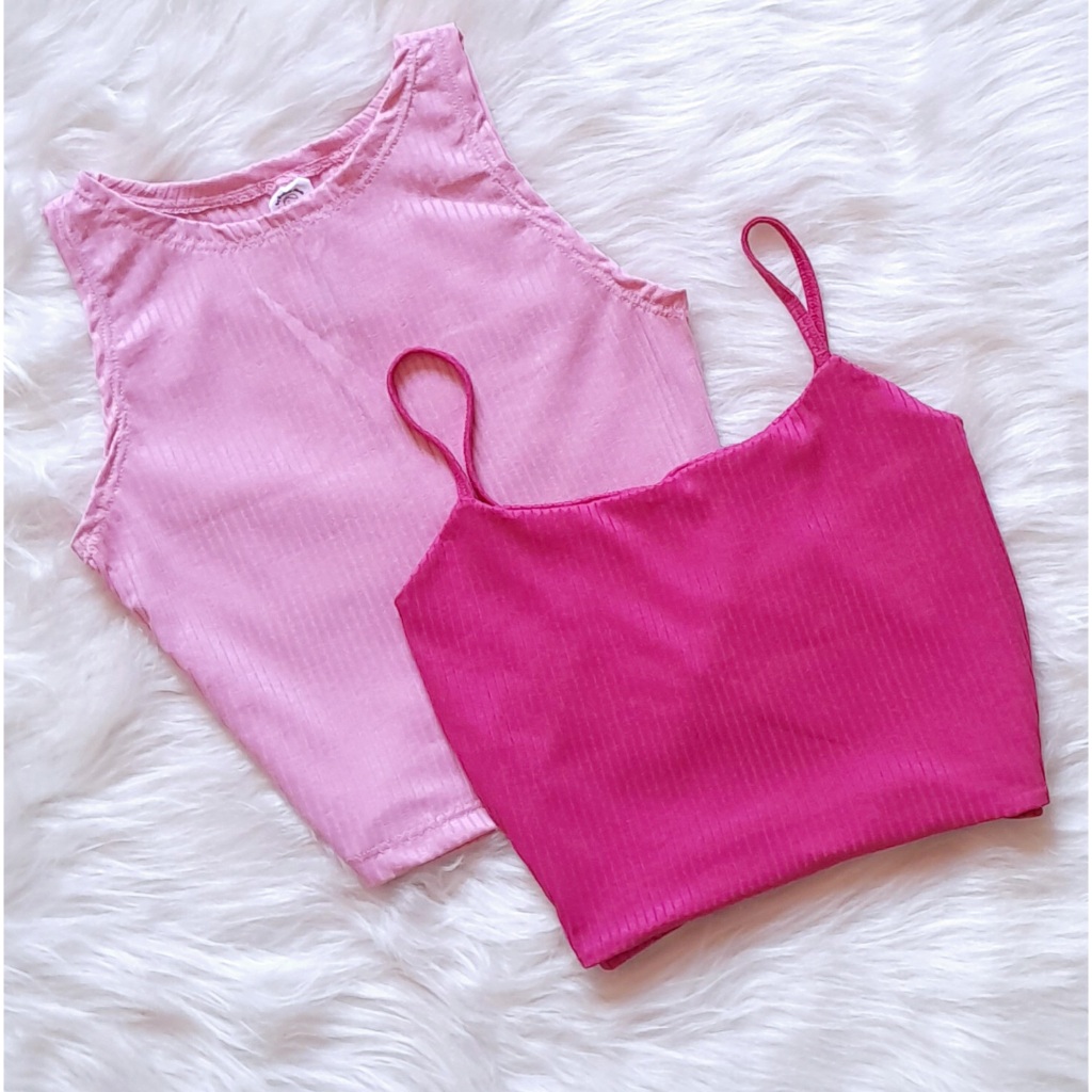 KIT 2: Croppeds Top Regata e Alça fina Feminino Malha Canelada