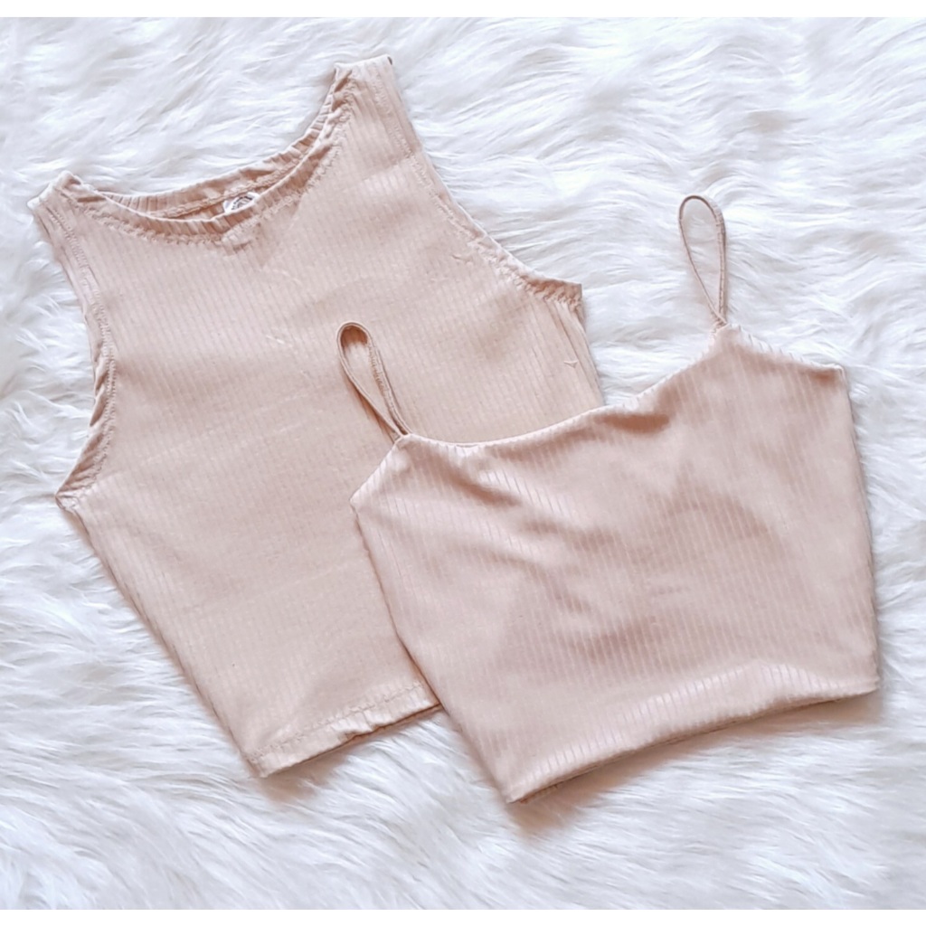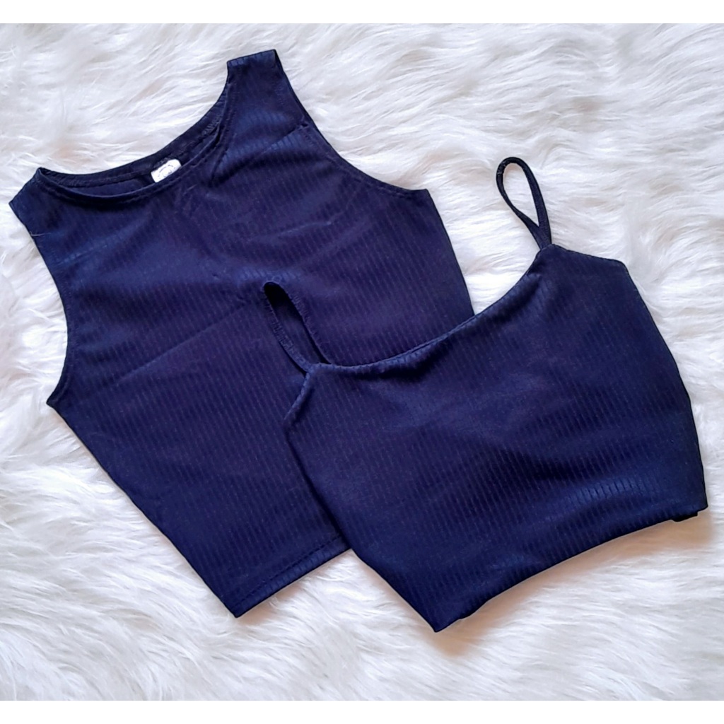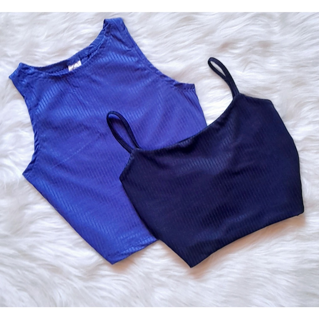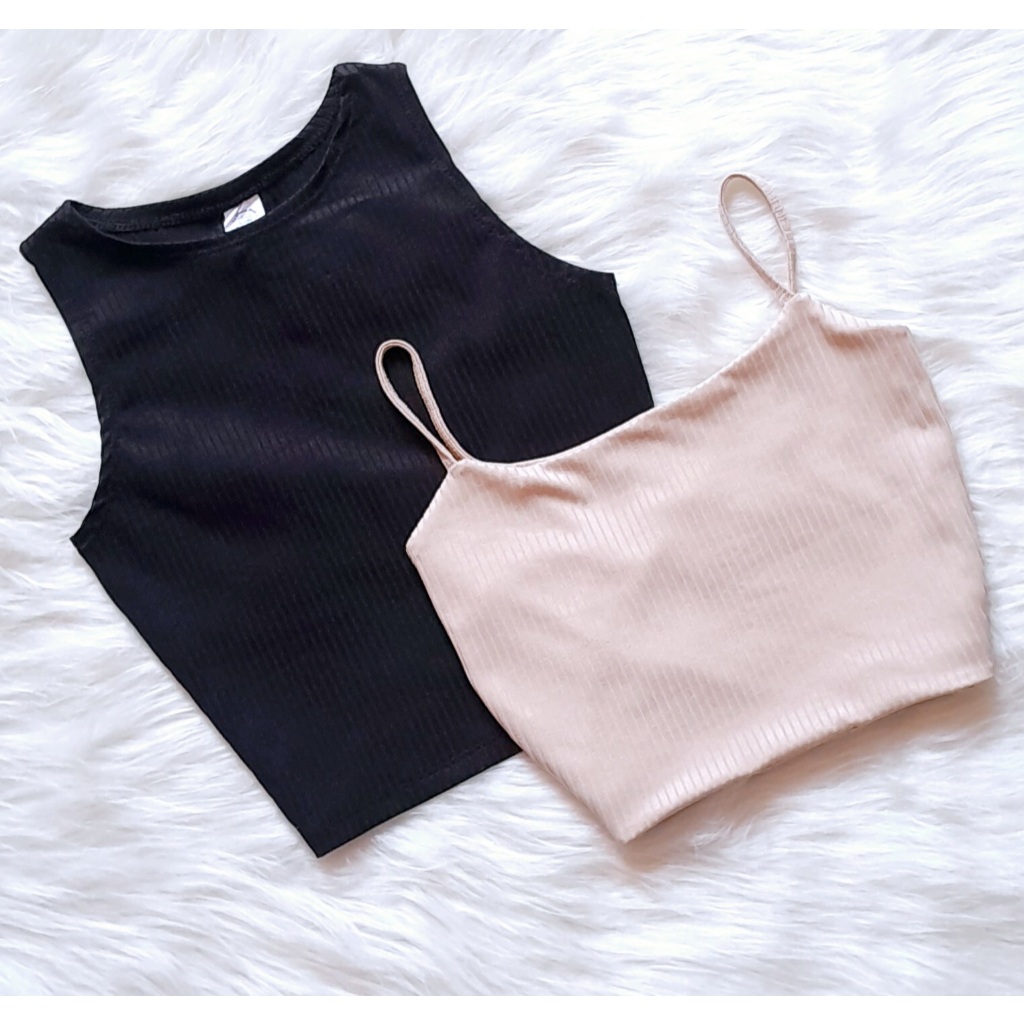 KIT 2: Croppeds Top Regata e Alça fina Feminino Malha Canelada