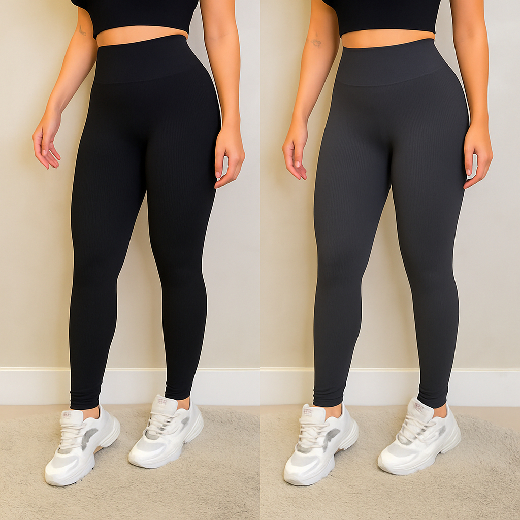 Calça Legging Canelada Preta - Cintura Alta Com Costura Realça Bumbum para Academia Feminina, Elástica e Fitness