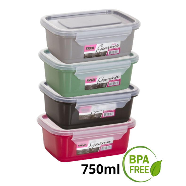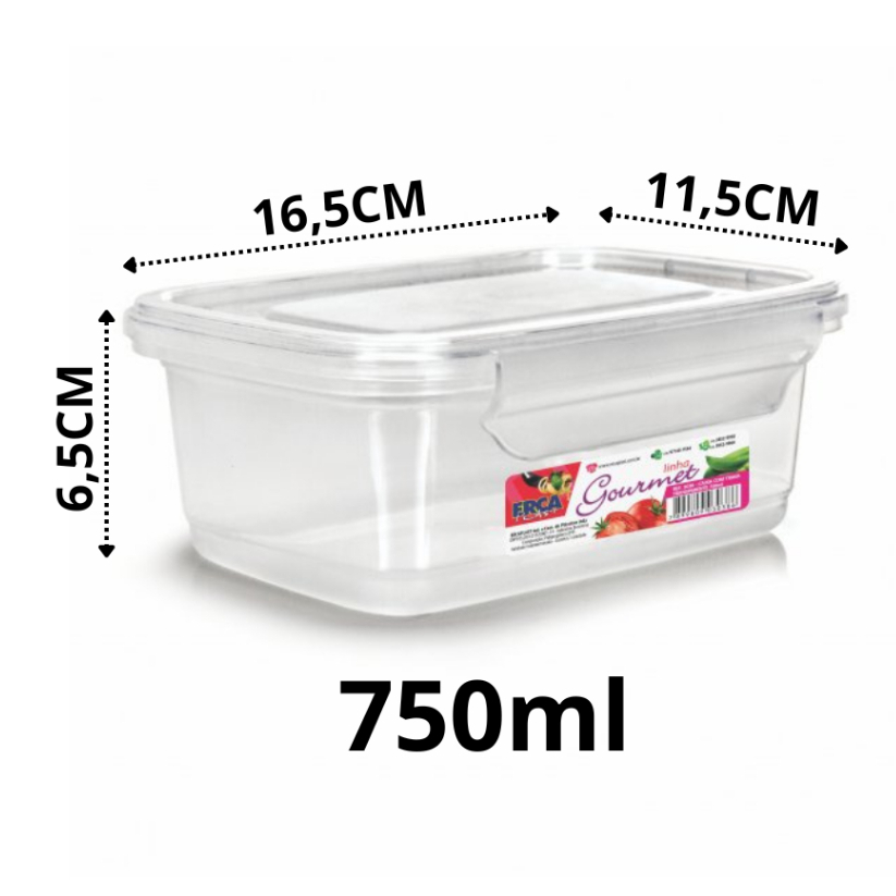 Jogo 10 Potes Tampa Com Trava 750ml, Pote Organizador Retangular Marmita Fitness BPA FREE