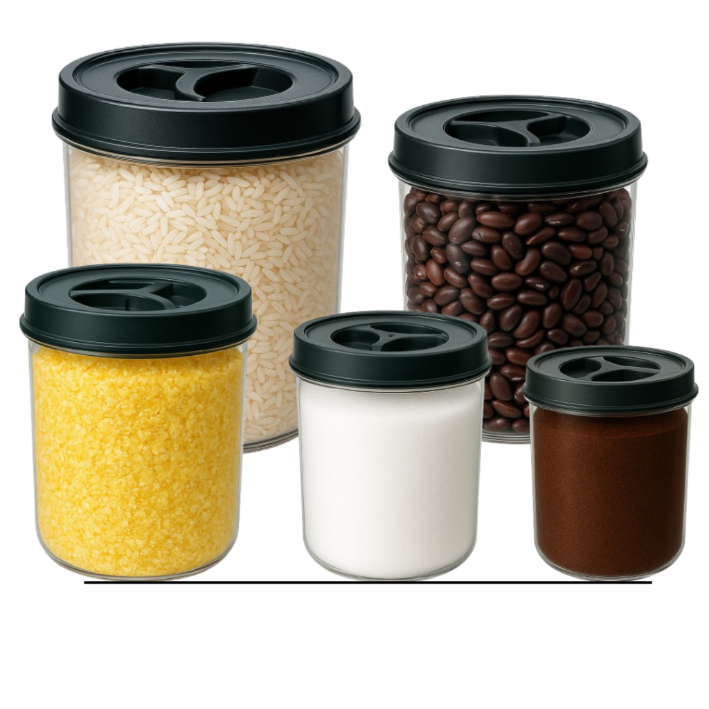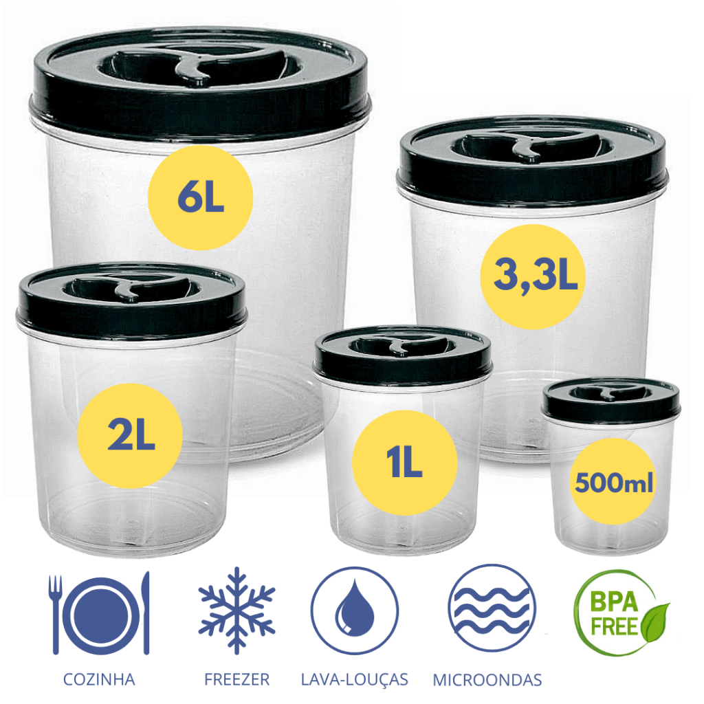 Jogo de 5 Potes Para Mantimentos Com Tampa De Rosca Conjunto 5 Peças BPA FREE
