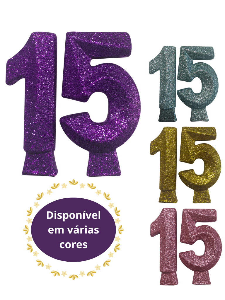 Vela de Aniversário 15 Anos Gold Glitter Dourada Prata Rosa Claro Rose Gold Tiffany ou Roxa