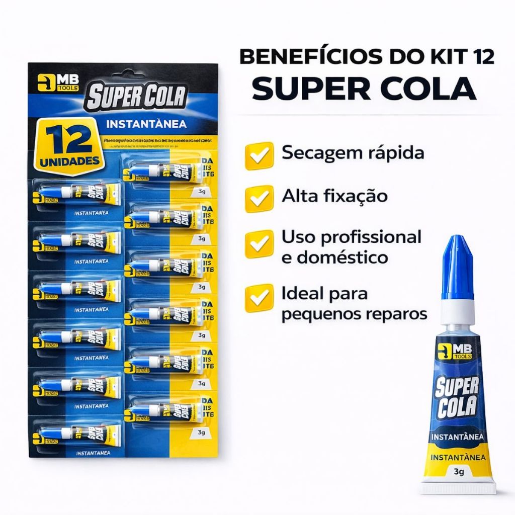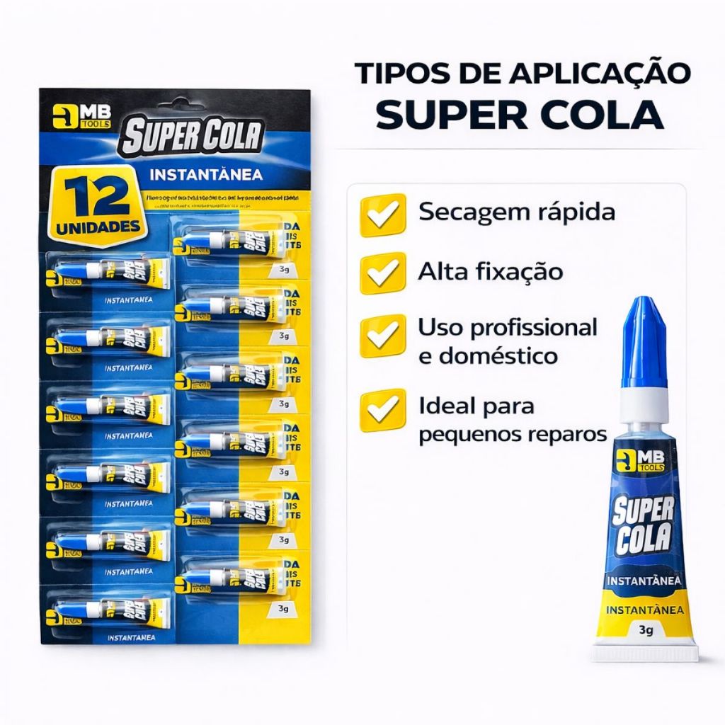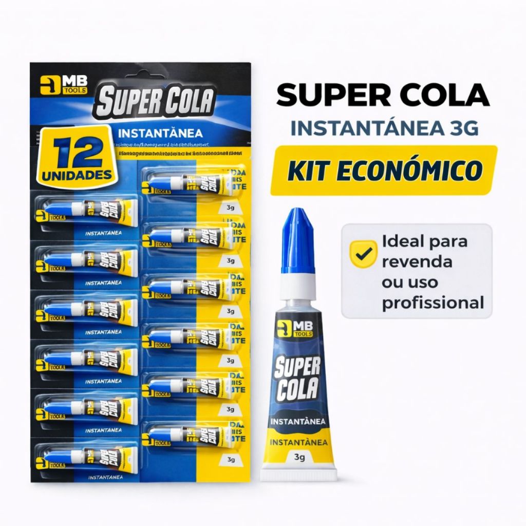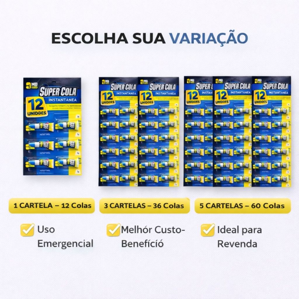 Kit Super Cola 3g Instantânea Alta Fixação 12 Unidades Cartela Econômica 1-3-5 Cartelas