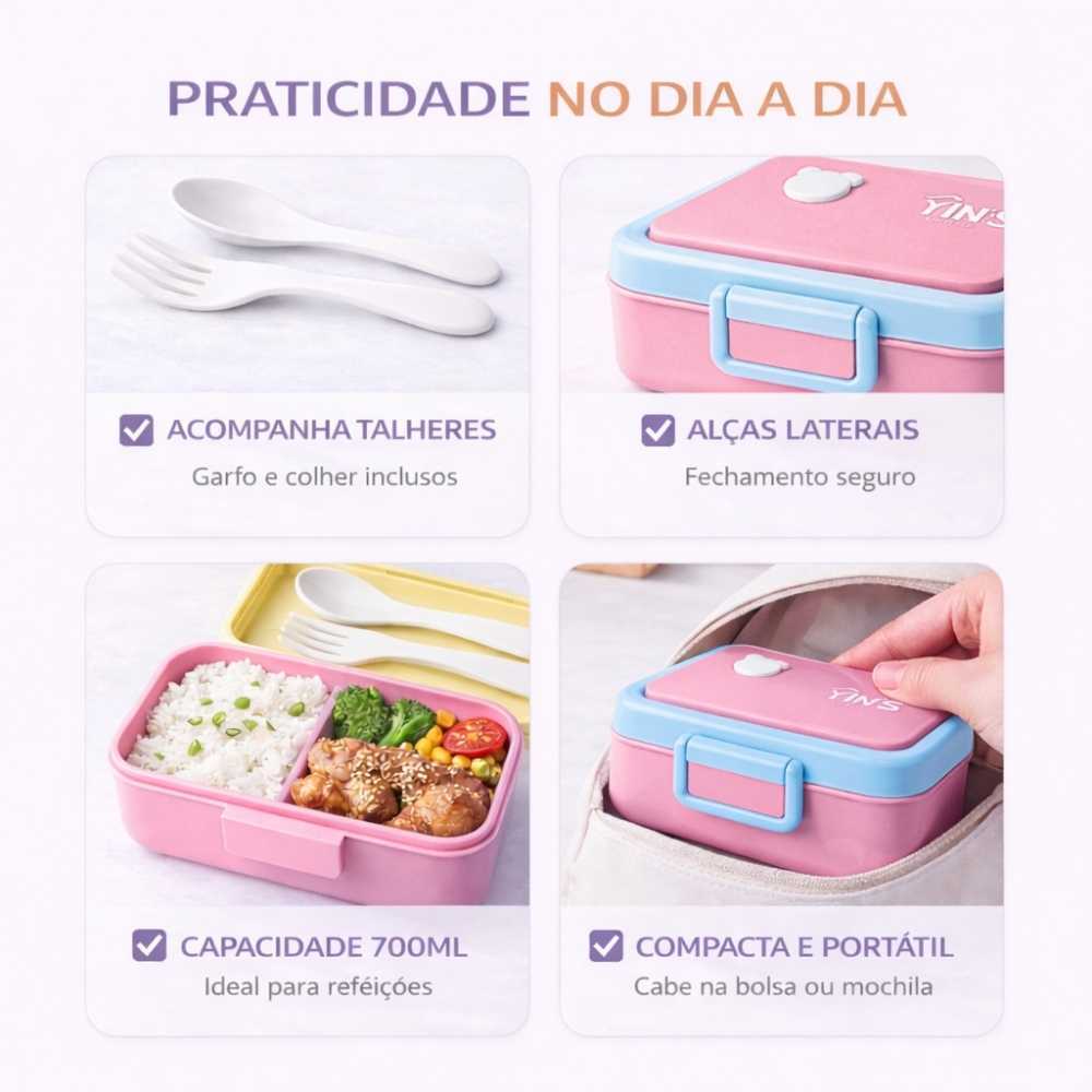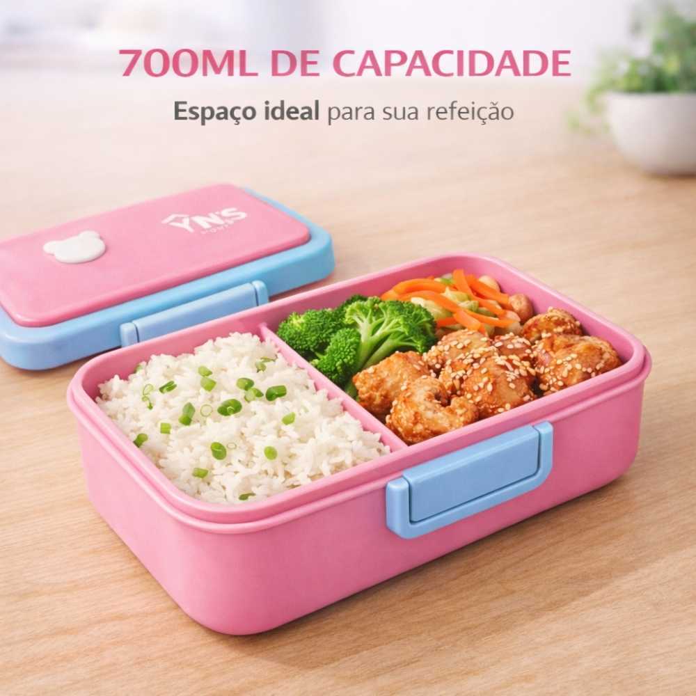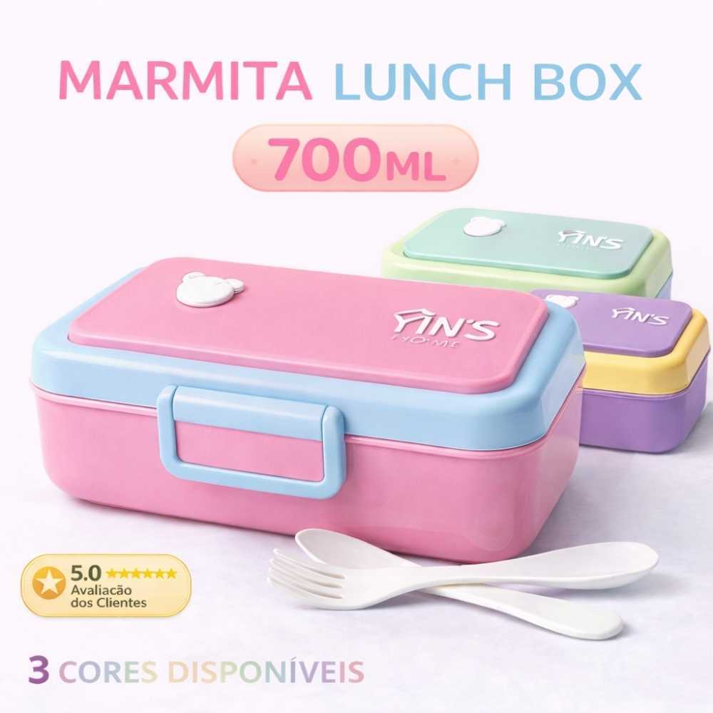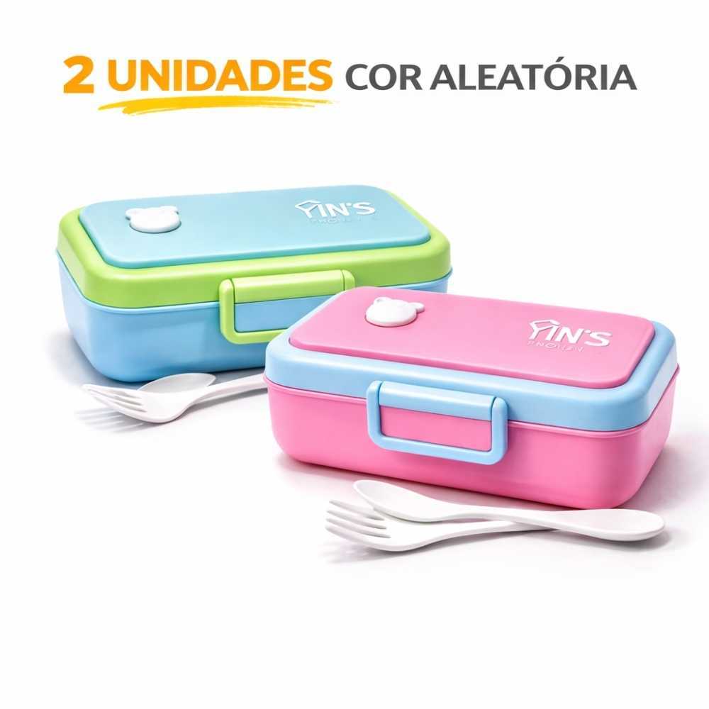 Kit Marmita Lunch Box 700ml Com Talheres Vedação Hermética Lancheira Academina Escolar 1 2 ou 3 Unidades