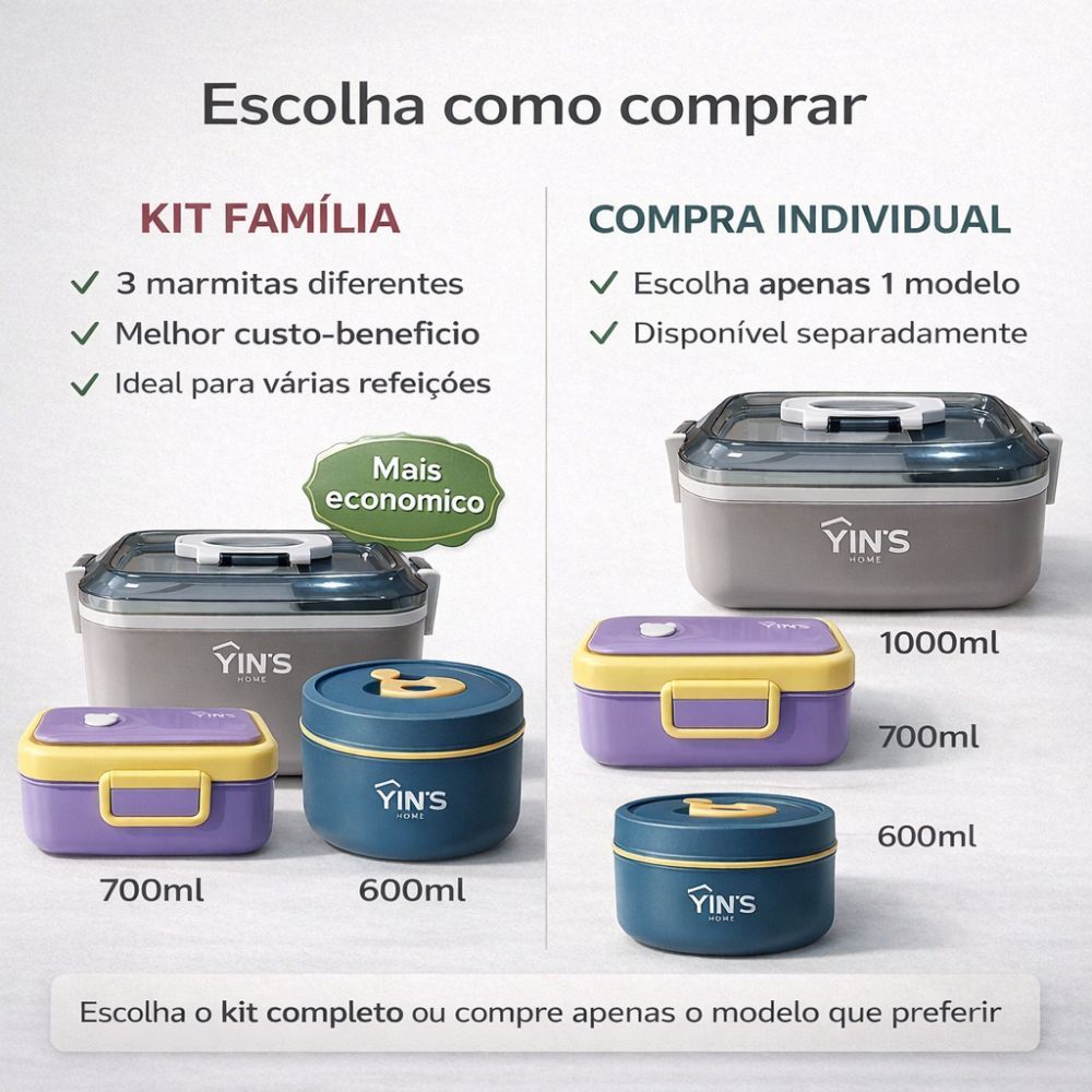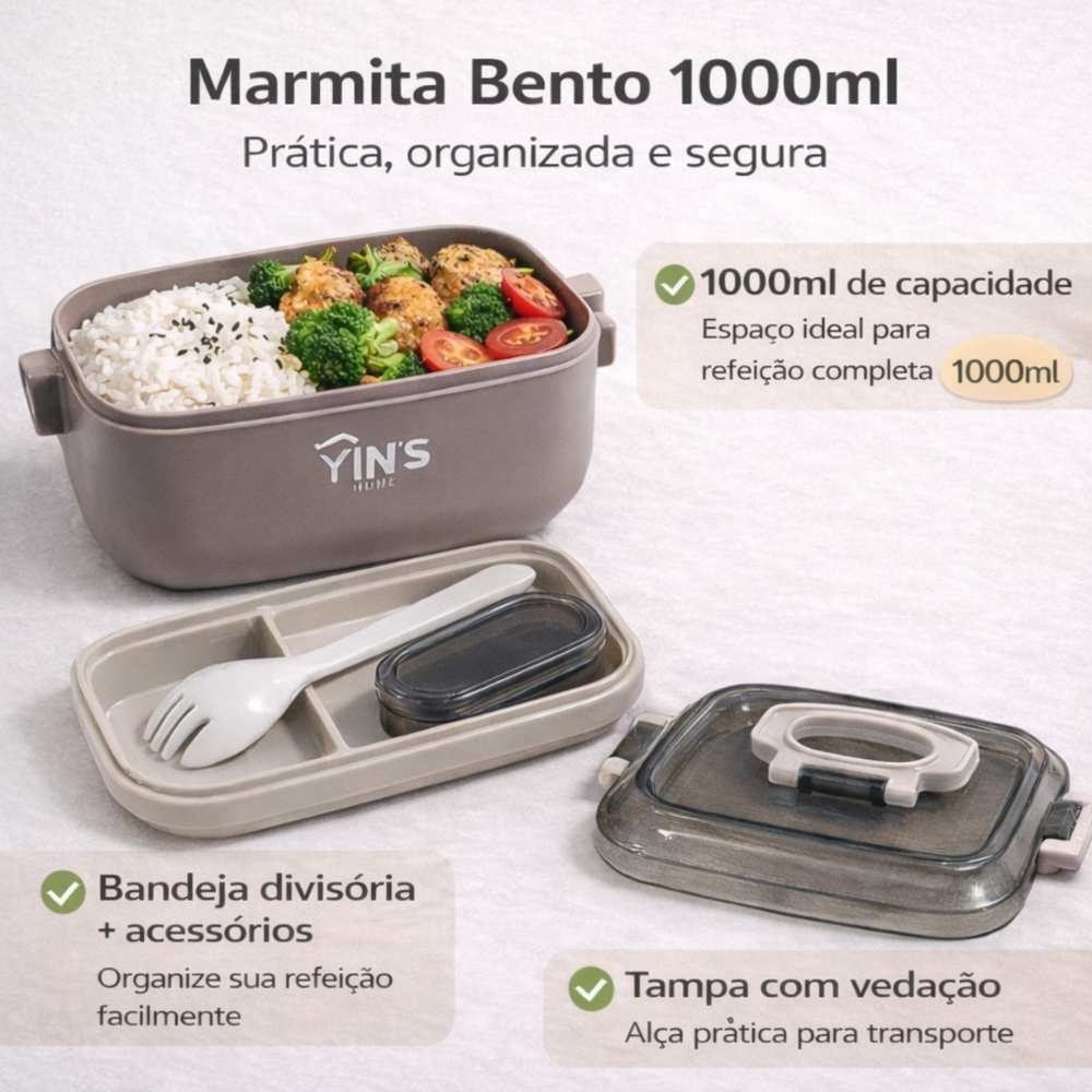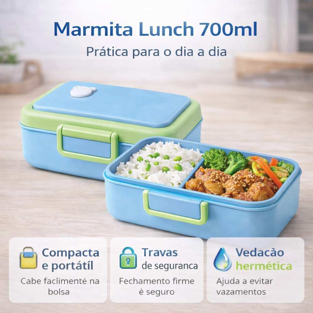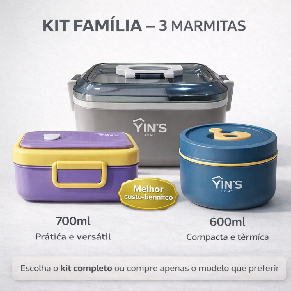 Kit 3 Marmitas Herméticas 1000ml 700ml 600ml Com Colher e Divisória | Marmita Térmica Vedada
