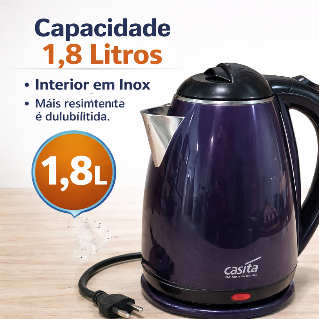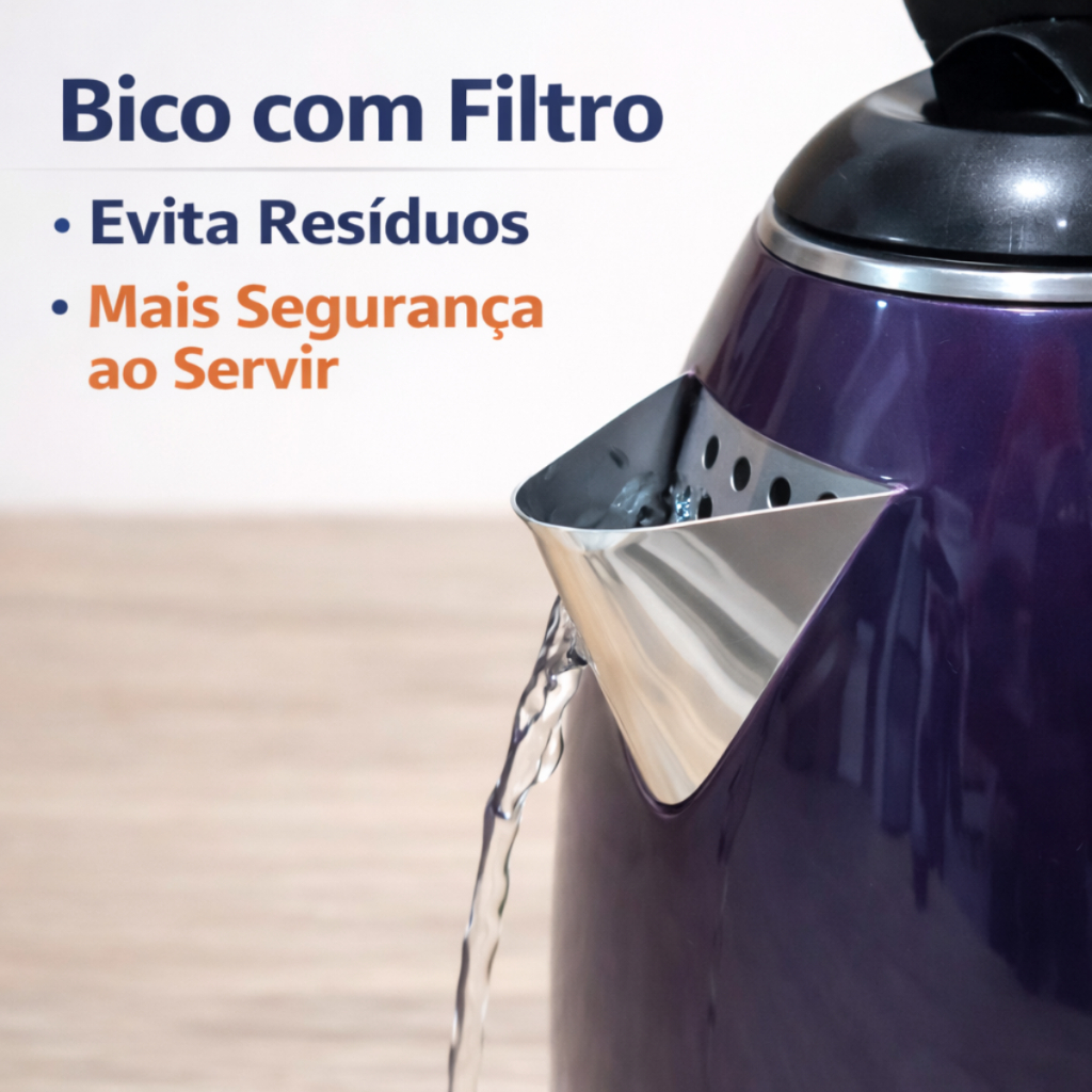 Jarra Elétrica Inox 1,8L Ferve Água Rápido Base 360° Desligamento Automático 220V Chaleira Roxa