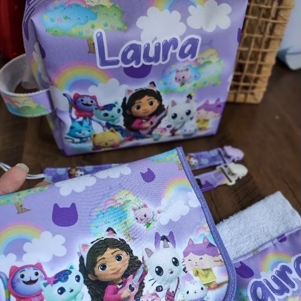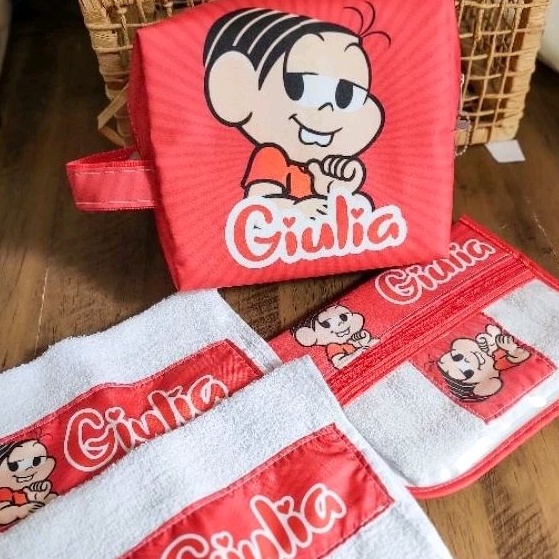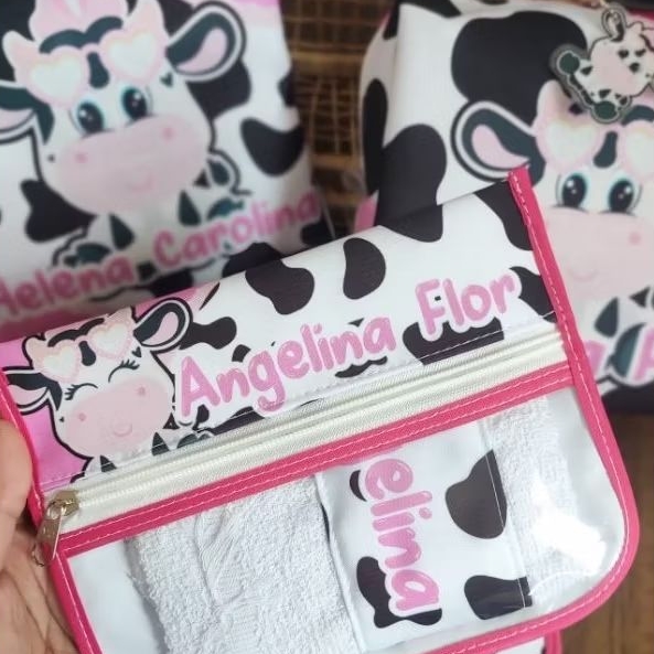 Kit creche/escolar infantil personalizado necesser compacta e porta escova com toalhinha