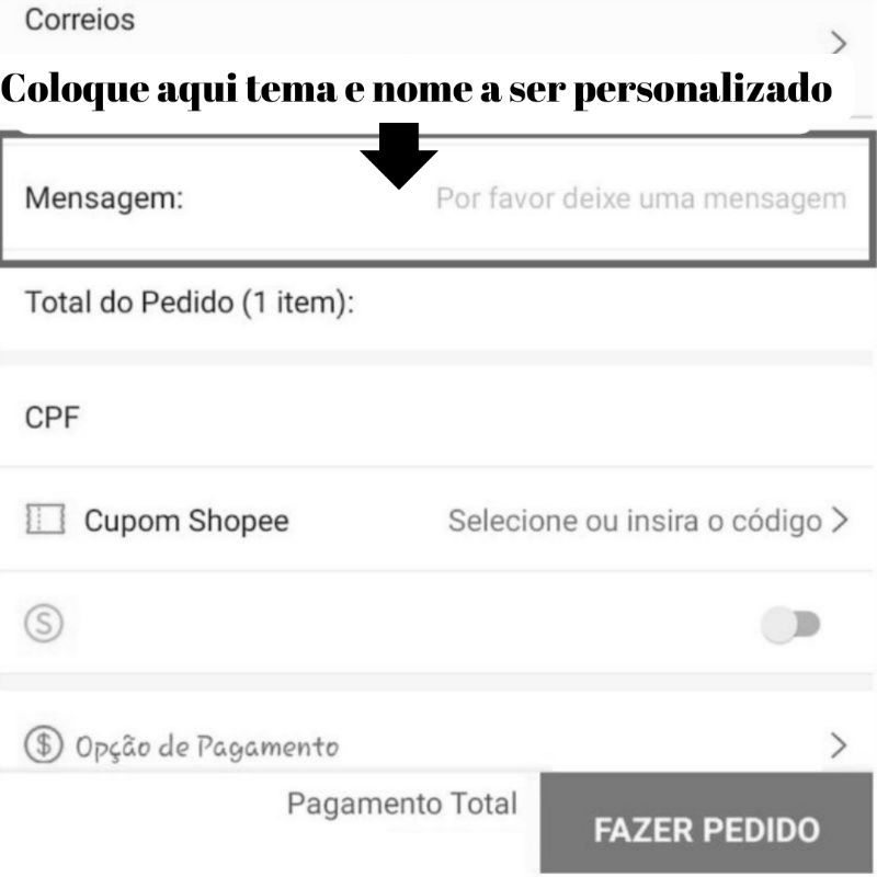 Sob encomenda: envio após 15 dias da compra