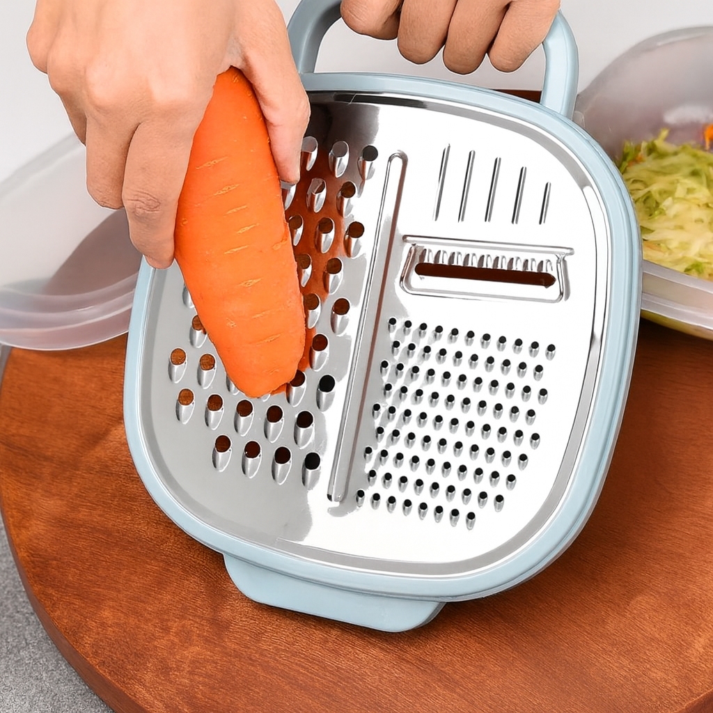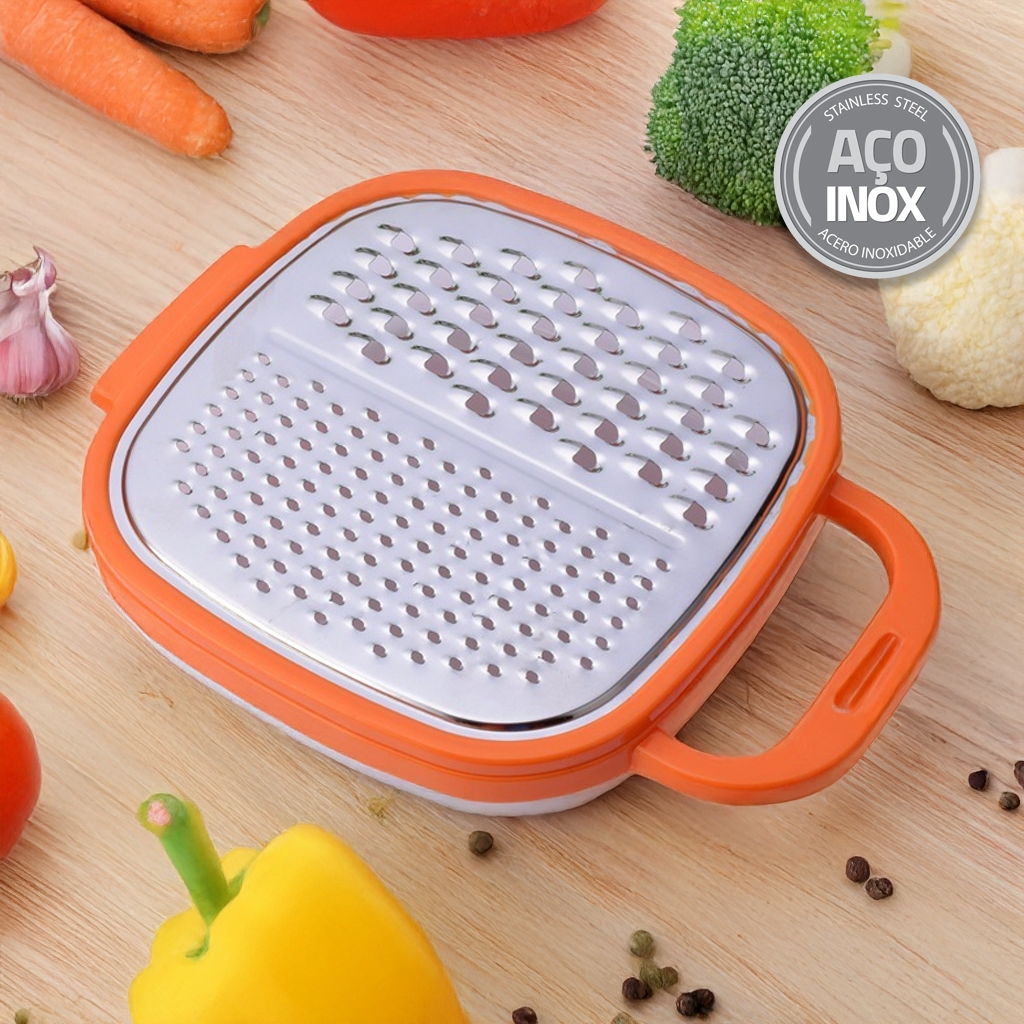 Ralador de Legumes 4 em 1 Com Recipiente Aço Inox Cortador Fatiador Multicortes Para Queijo