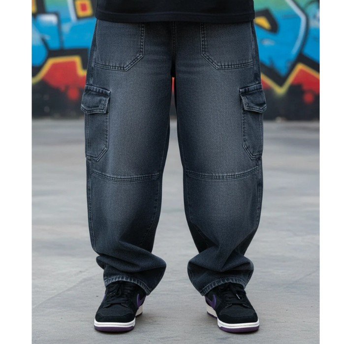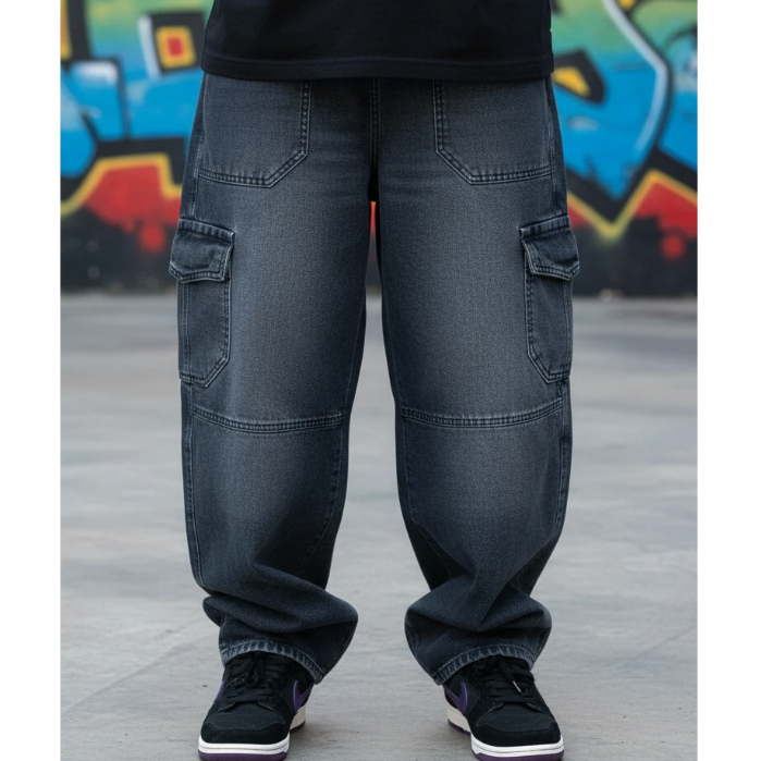 Calça Cargo Jeans Larga Bolsos Lateral Skatista Streatwear 5 Bolsos