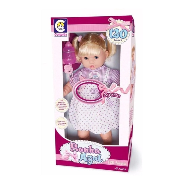 Boneca Sonho Azul Fala Frases Com Cabelo Cotiplas