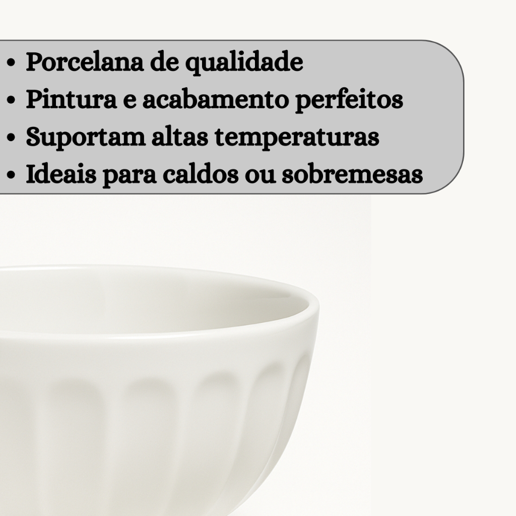 Kit Cumbuca Canelada Tigela Porcelana Branca 310ml Caldos & Sopas Petiscos Sobremesas