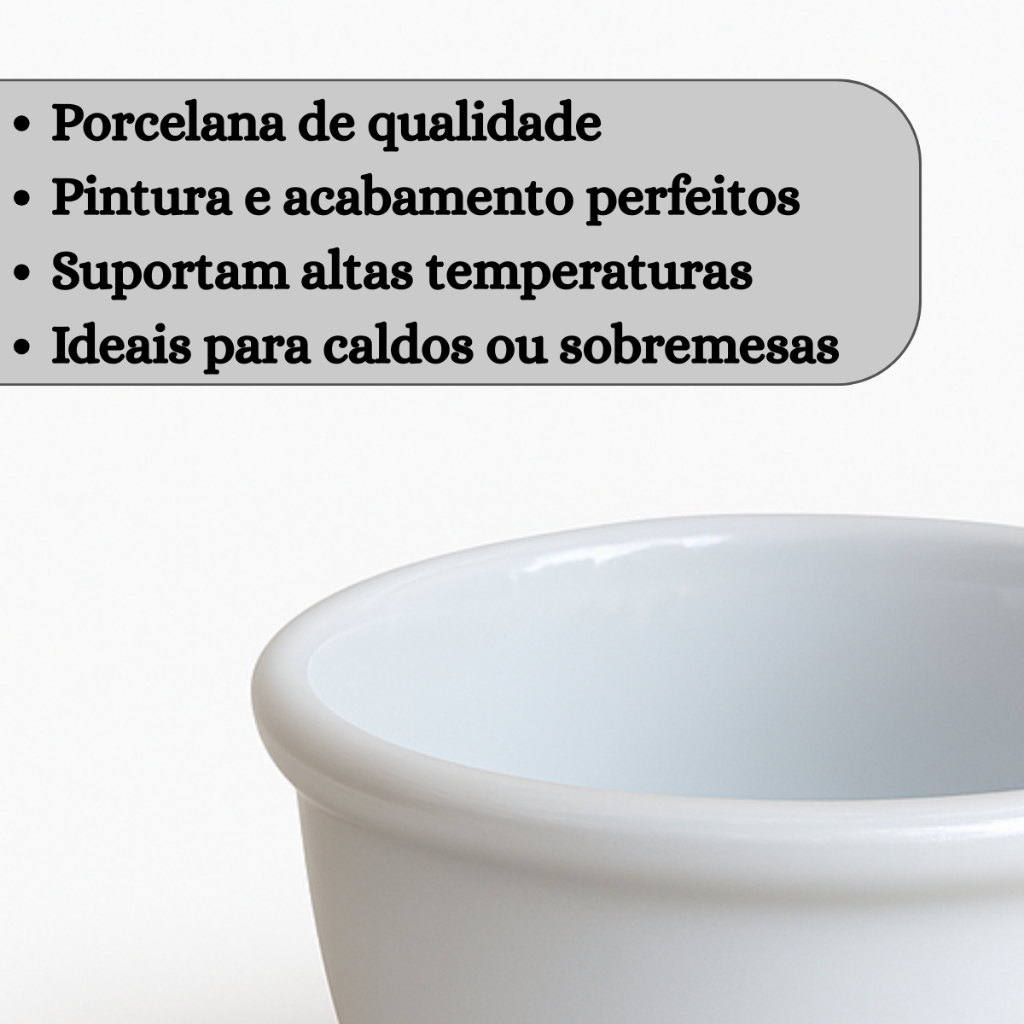 Kit 6 Cumbuca Hotel Tigela 350ml Bowl Porcelana Branca Sopas & Caldos Petiscos Açaí