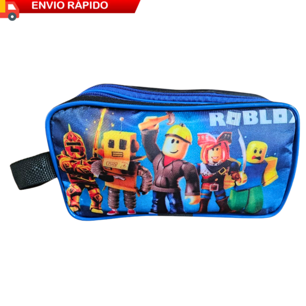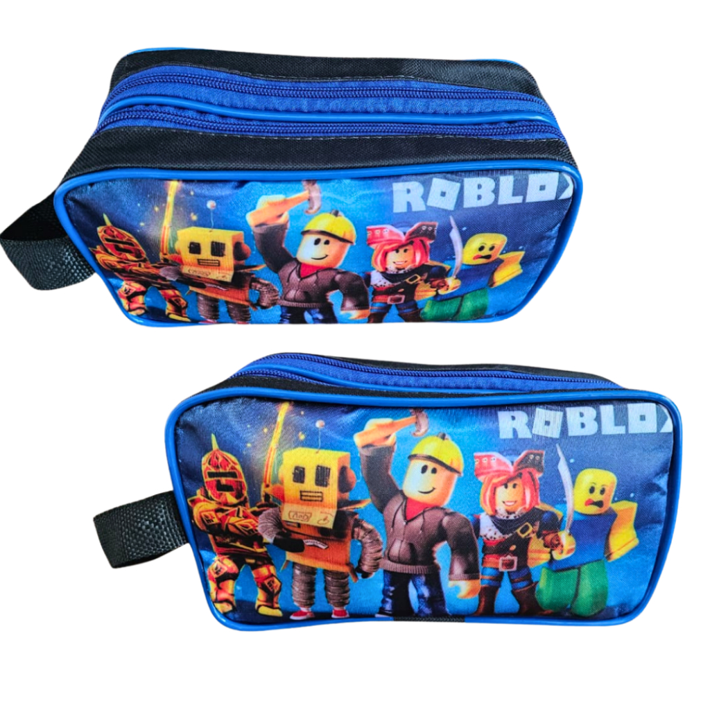 Estojo Lápis Duplo Escolar Roblox 2 Divisórias Bolsos Infantil Criança Menino Azul