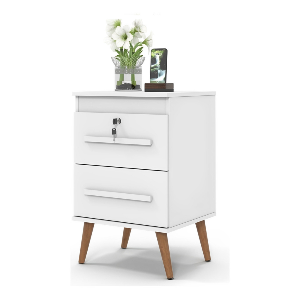 Mesa De Cabeceira Chave Para Cama Box Pés Palito 2 Gavetas Branco