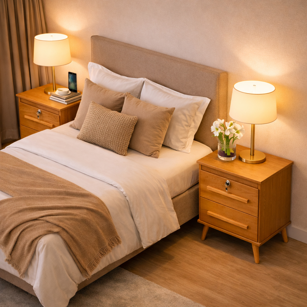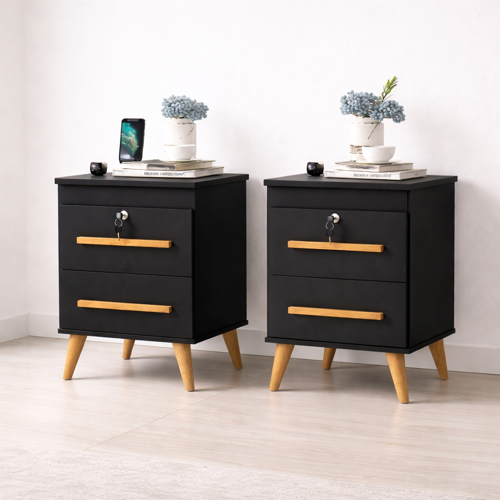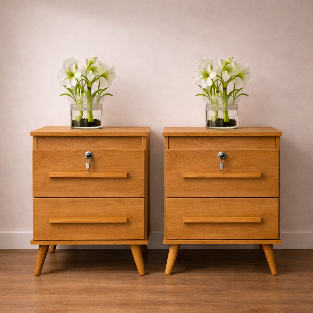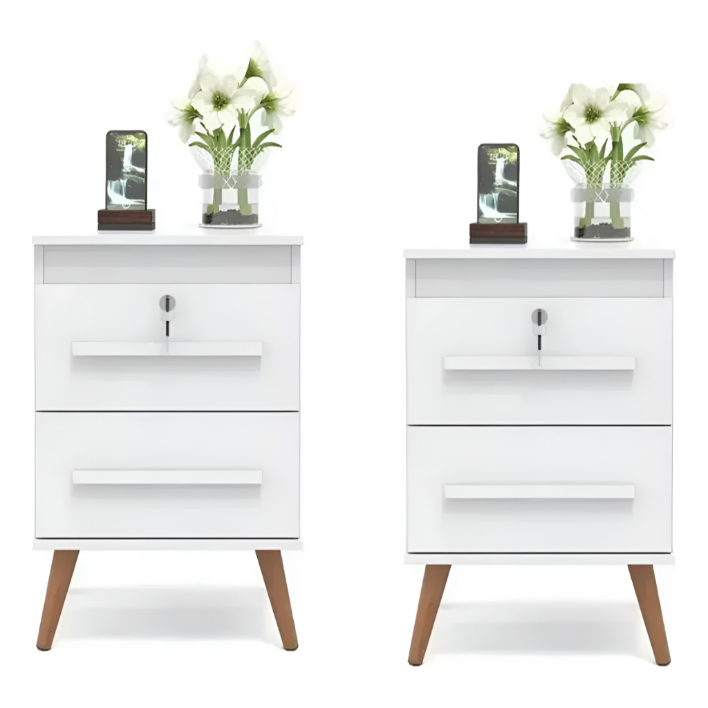 Kit 2 Mesas De Cabeceira Box Quarto Com Chave 2 Gavetas Chave Canela