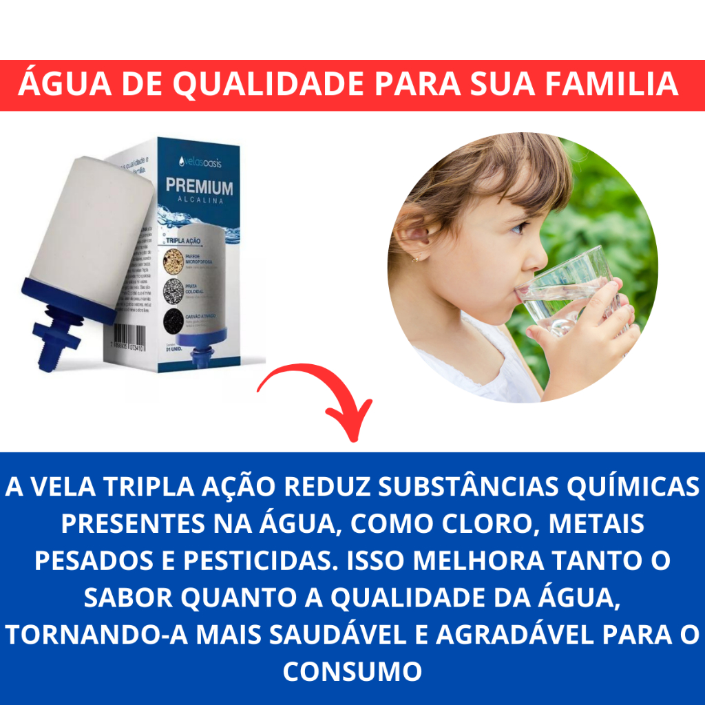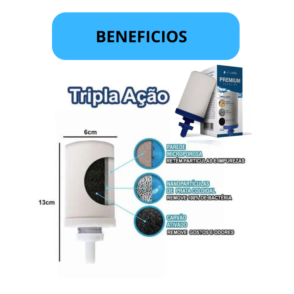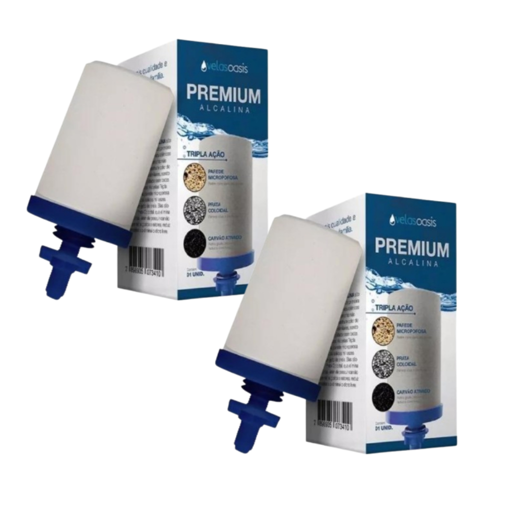 Vela Filtro De Barro Tripla Ação Carvão Ativado Prata Coloidal Alcalina - kit 2 unidades Refil