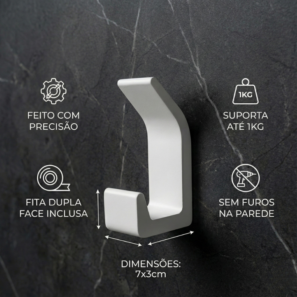 Kit 3 Ganchos Suporte Banheiro de Parede Pendurar Cozinha Quarto Adesivo
