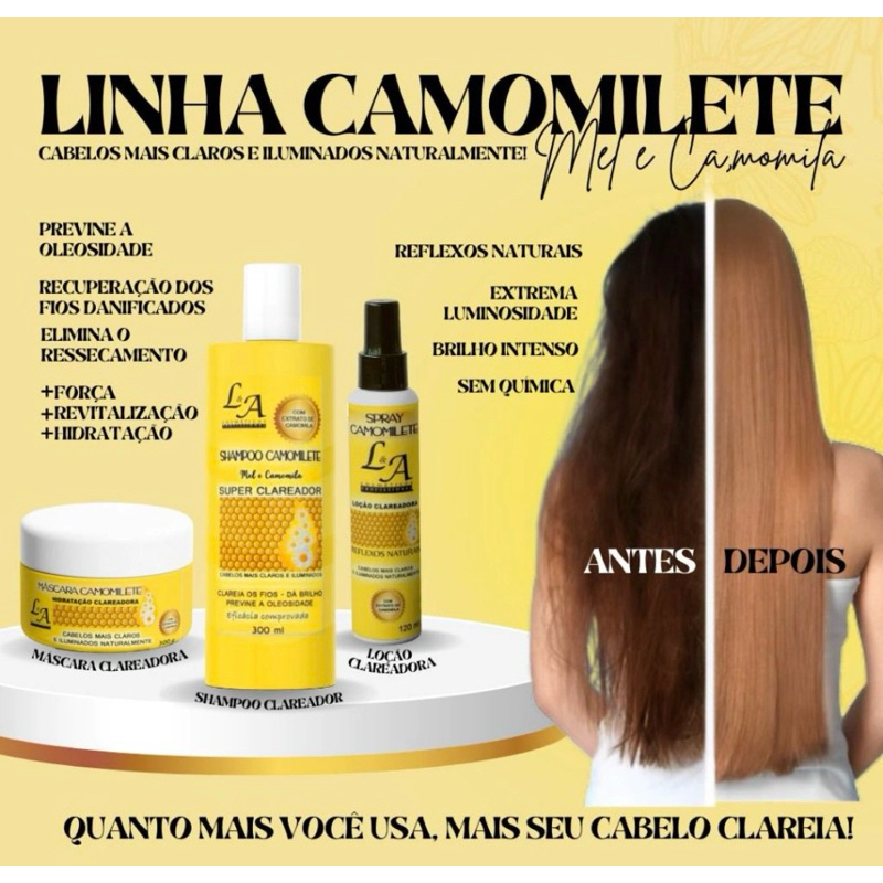 Kit Camomilete Super Clareador Mel e Extrato de Camomila L&A Cosméticos 2x300g 1x120ml