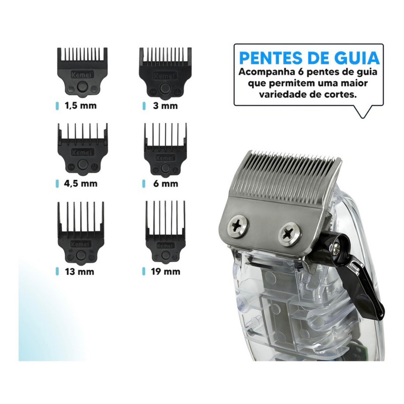 Máquina de cortar cabelo profissional Kemei NG-108 Original Com visor LCD recarregável transparente - Bivolt