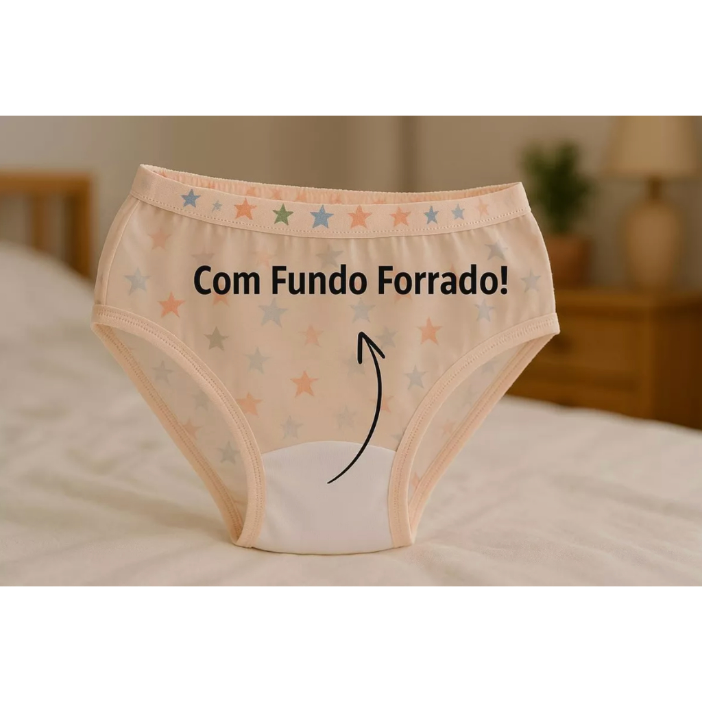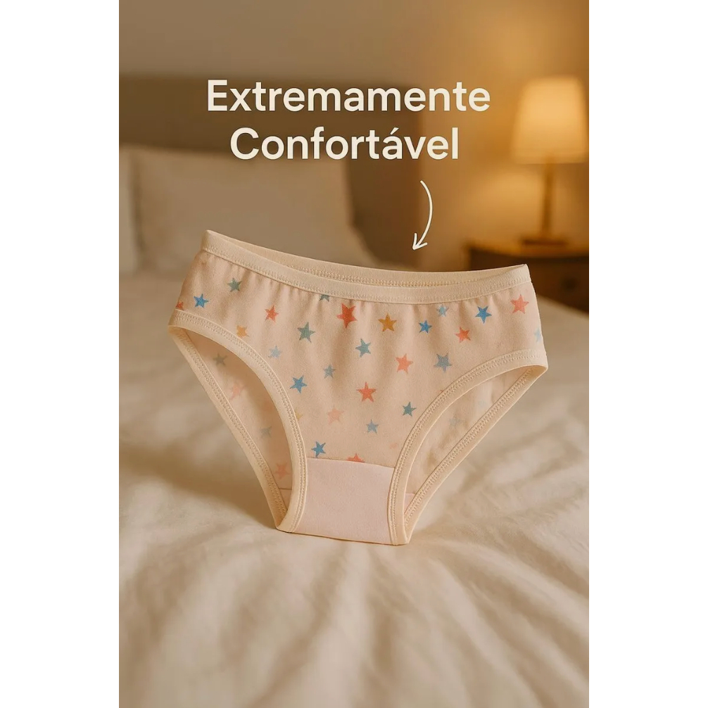 Kit 12 Calcinhas Infantil 100% Algodão Premium Menina 2 a 12 Anos Costura Tripla