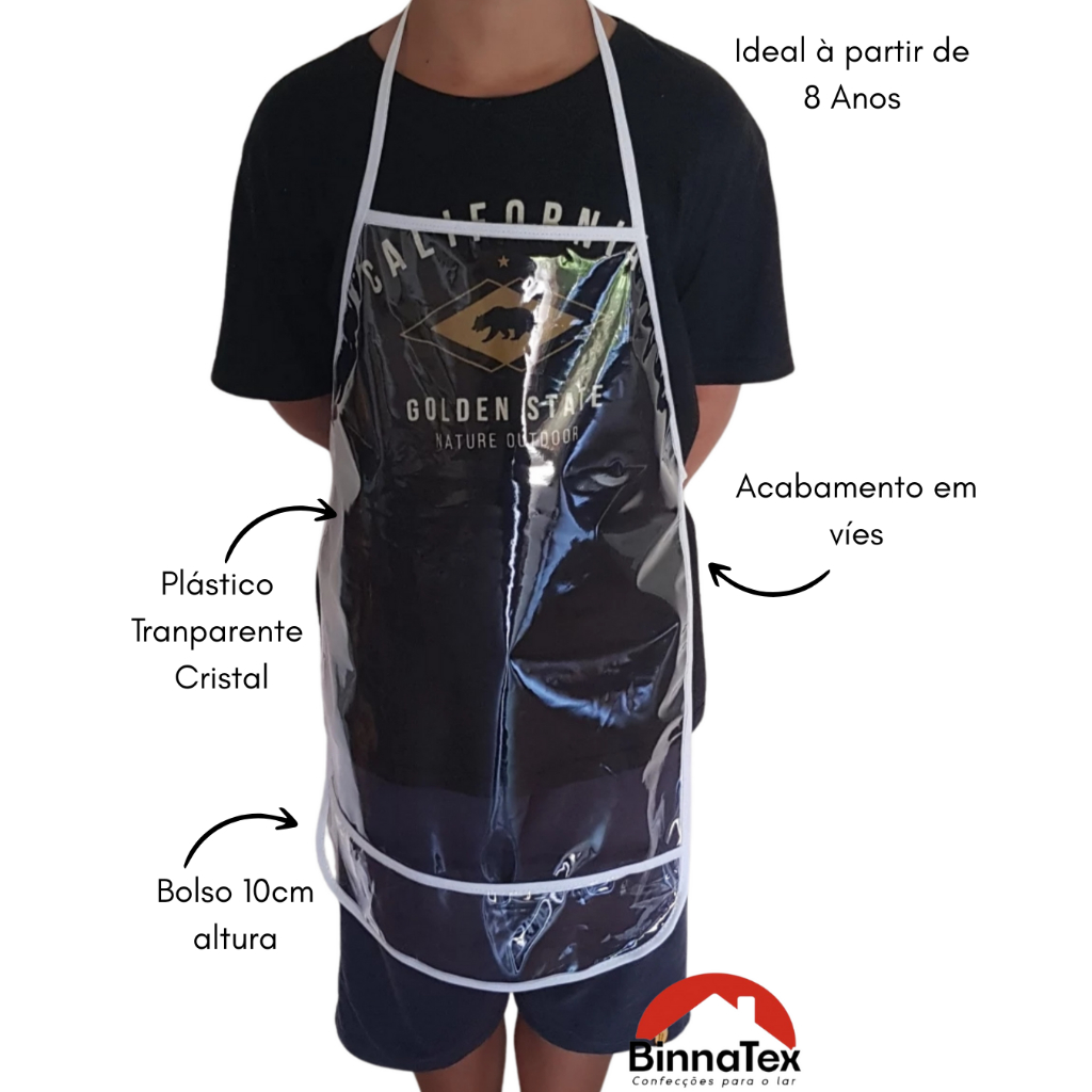 Avental Infantil Unissex Impermeável com bolso transparente pvc plástico pintura culinária escolar
