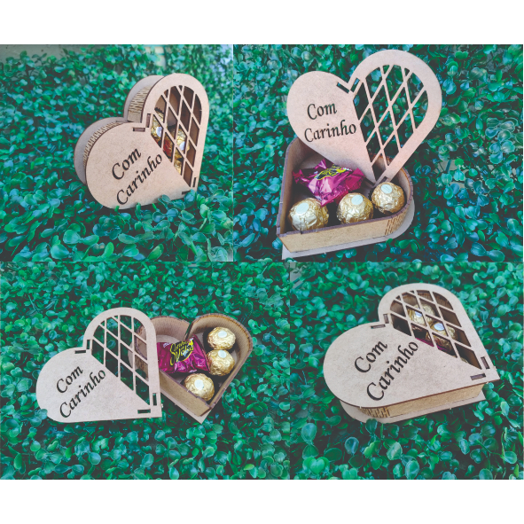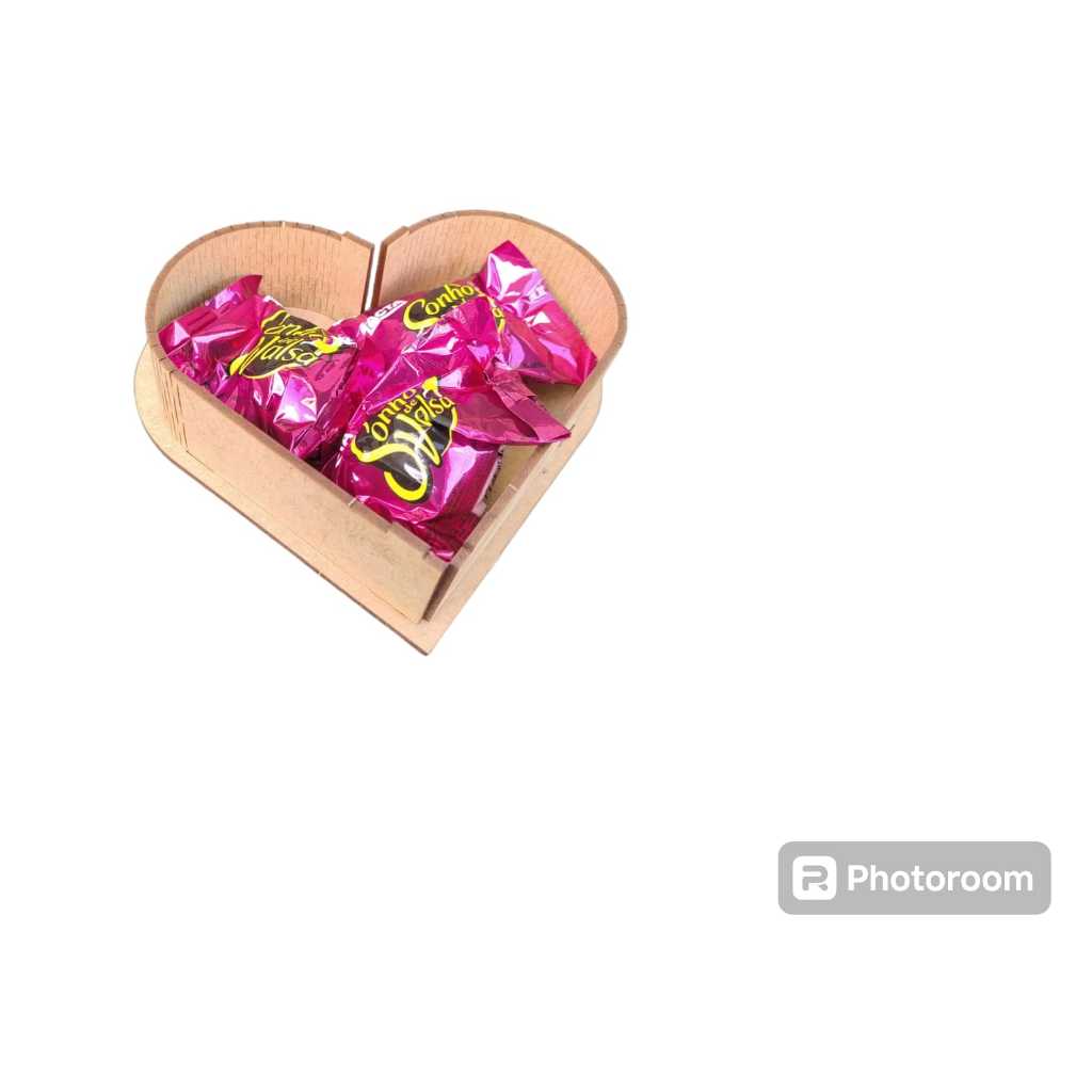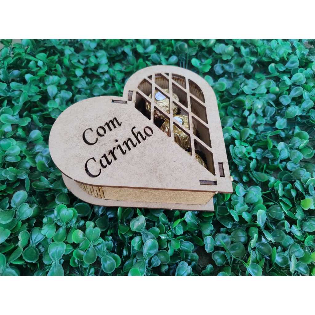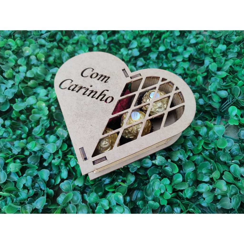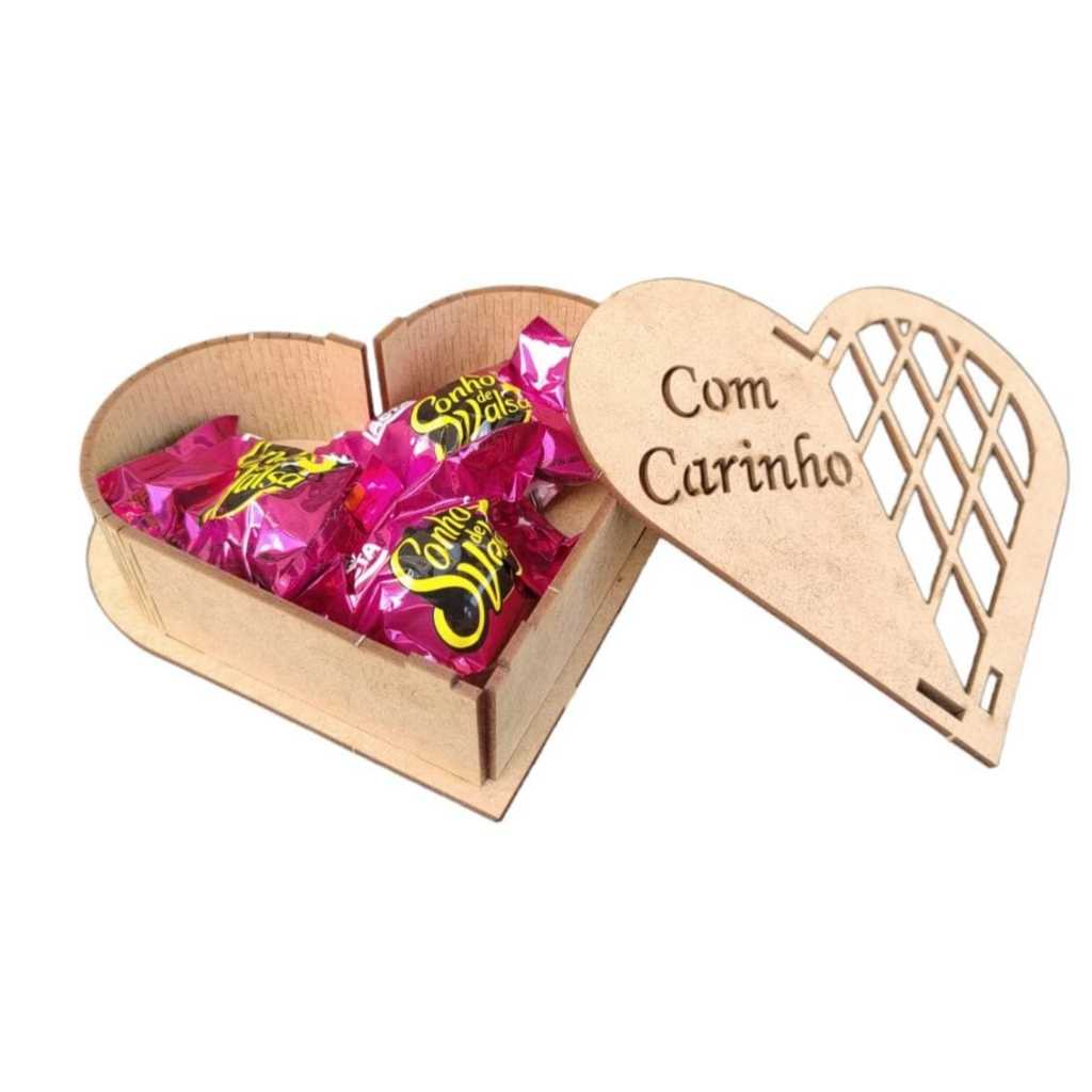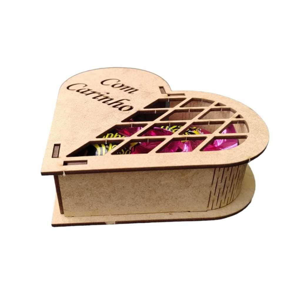 5 Caixas Coração 13 cm Para Bombom Com Carinho, Lembrança, Presentes, MDF - Madeira