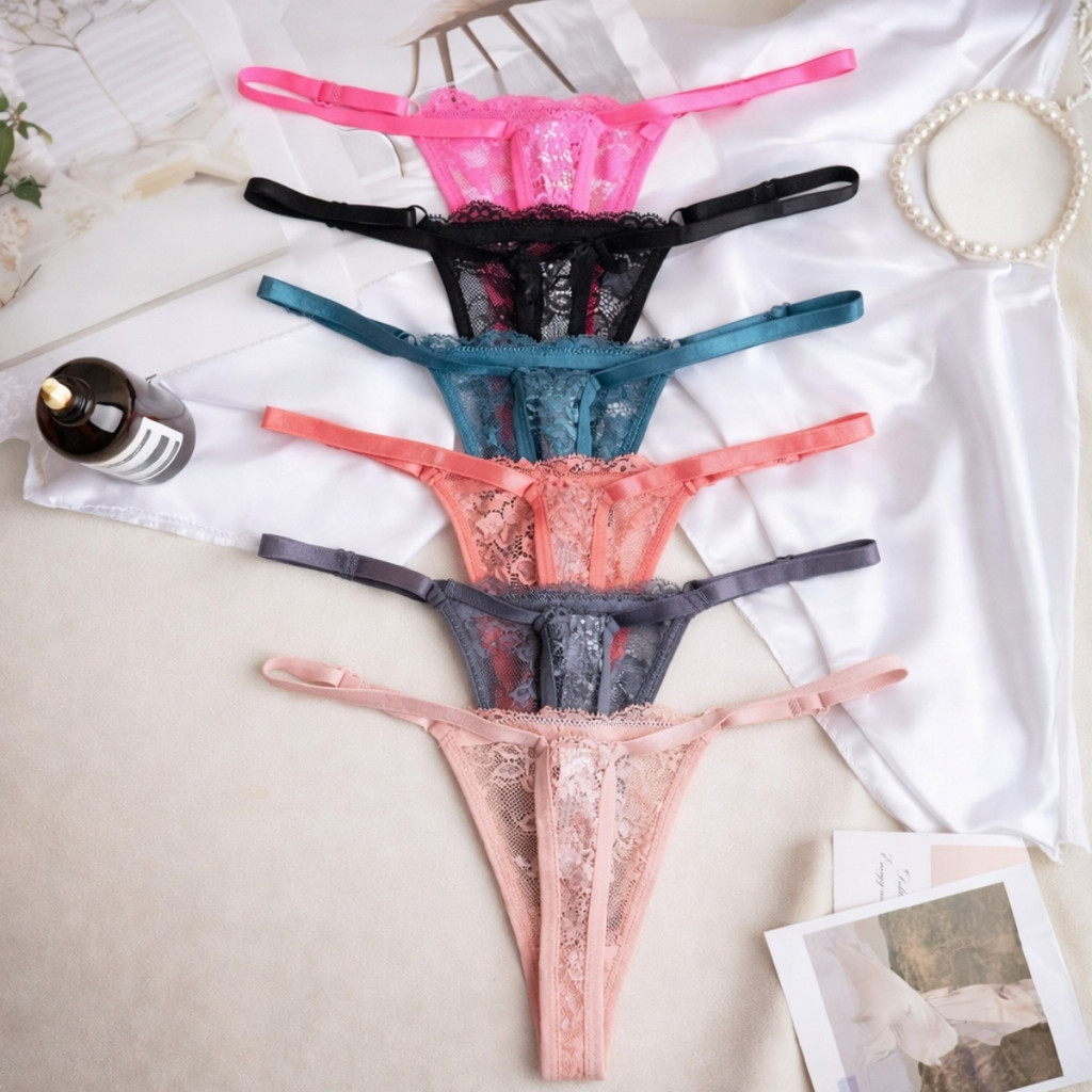 Kit 6 Calcinha de Renda Fio Dental Sexy Feminina Ajustável