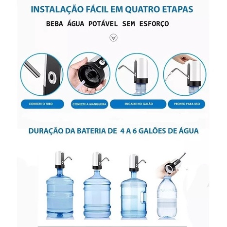Bomba Elétrica Para Galão Universal Com Carregamento USB Garrafão Ou Galão