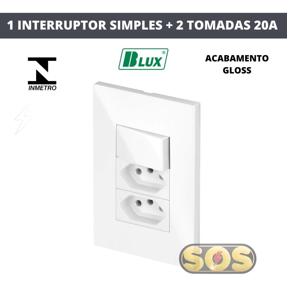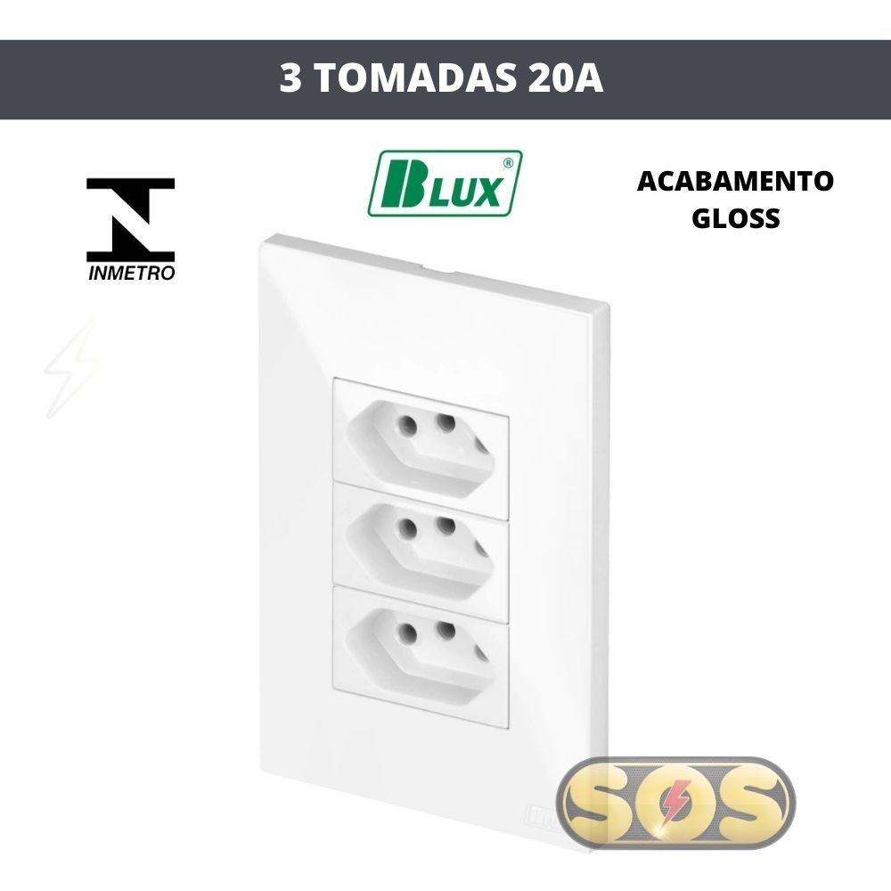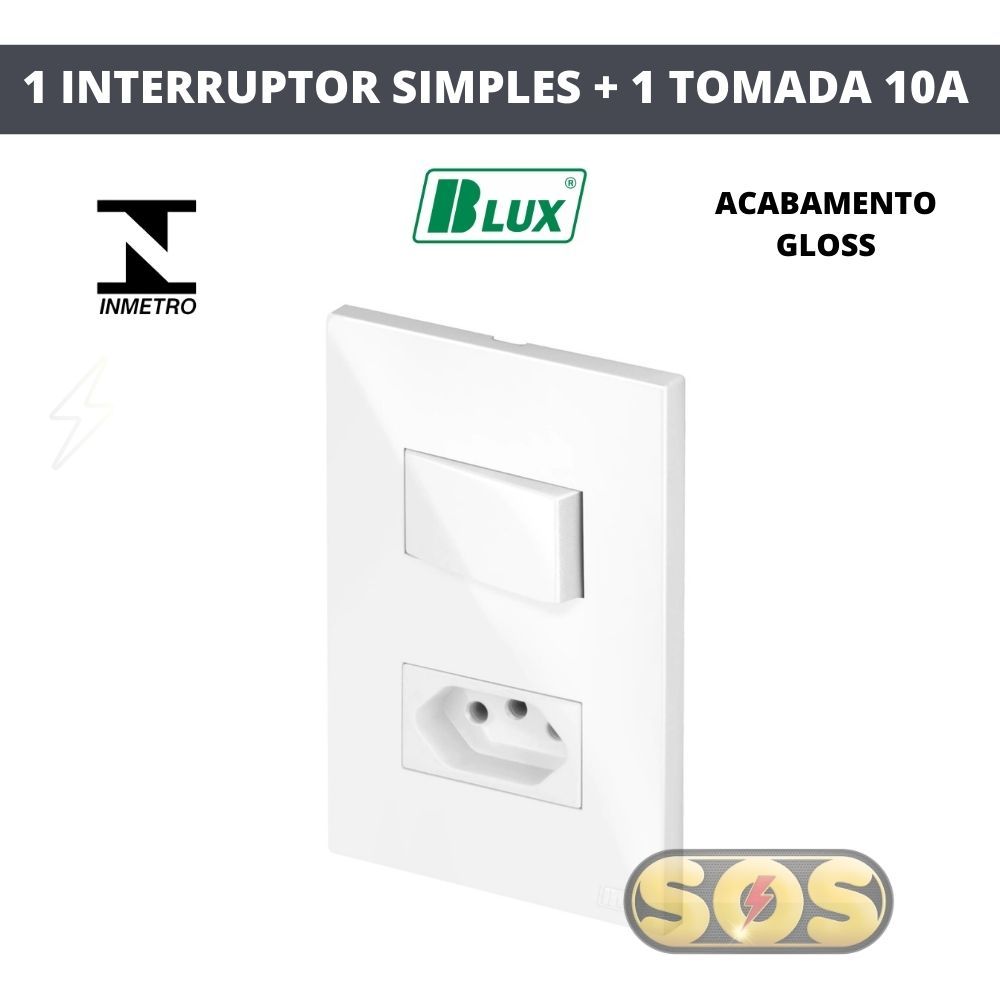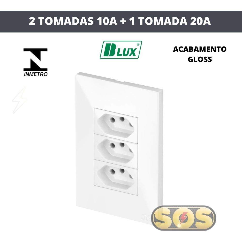 CONJUNTOS TOMADAS 10A, 20A, INTERRUPTORES , RJ45, RJ11, PLACA CEGA 4X2 4X4 RECTA GLOSS BRANCA BLUX