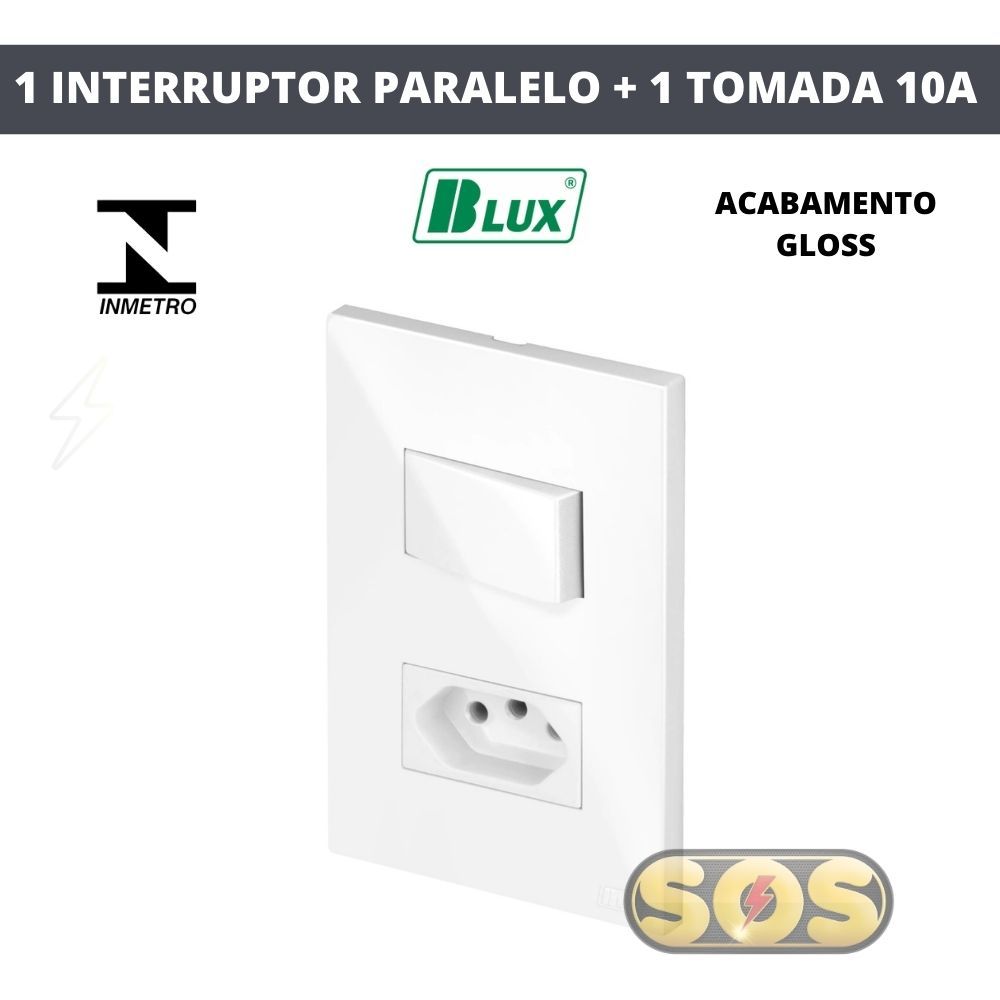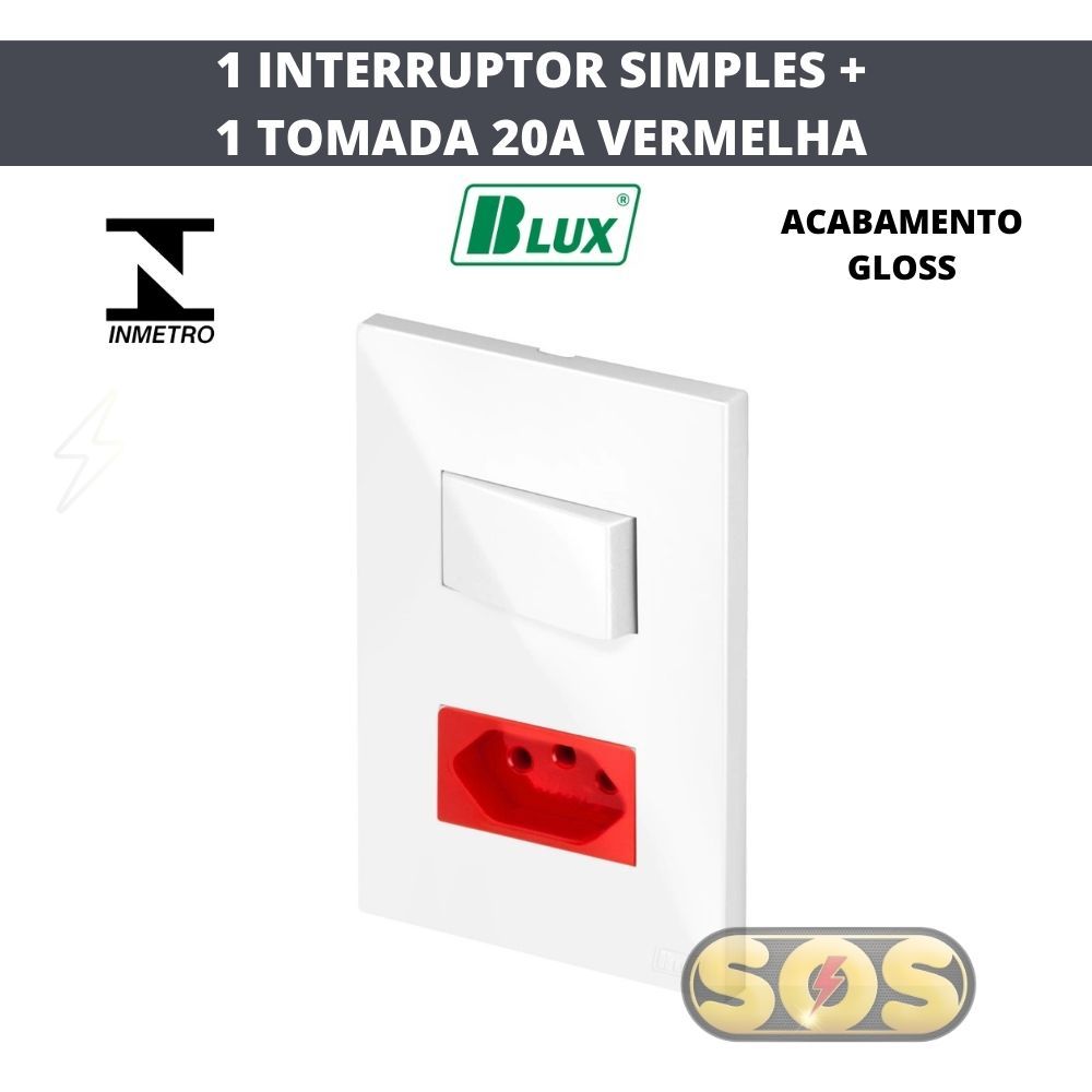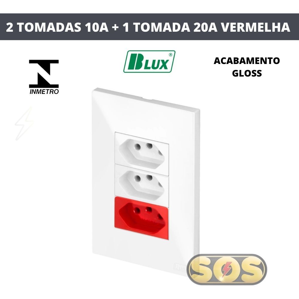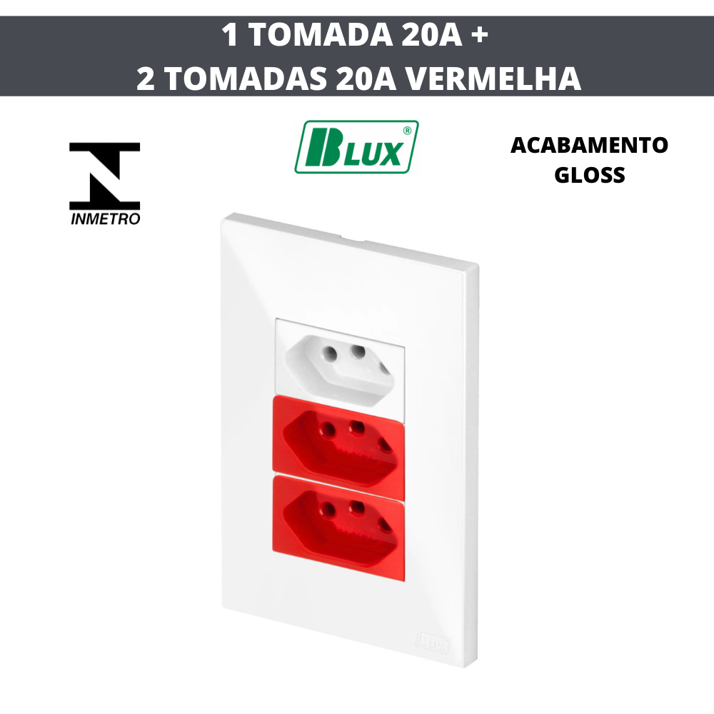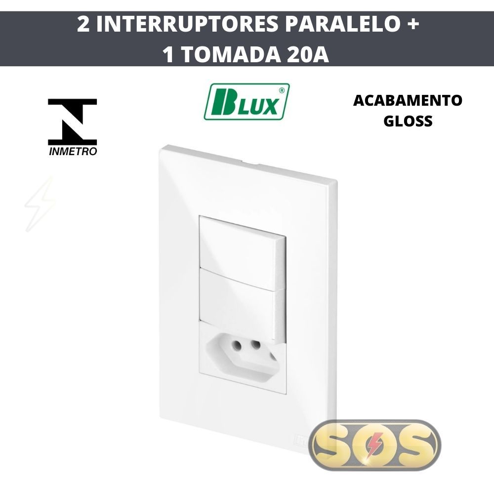 CONJUNTOS TOMADAS 10A, 20A, INTERRUPTORES , RJ45, RJ11, PLACA CEGA 4X2 4X4 RECTA GLOSS BRANCA BLUX