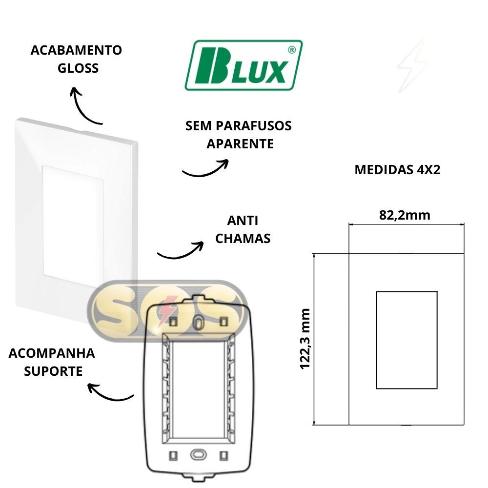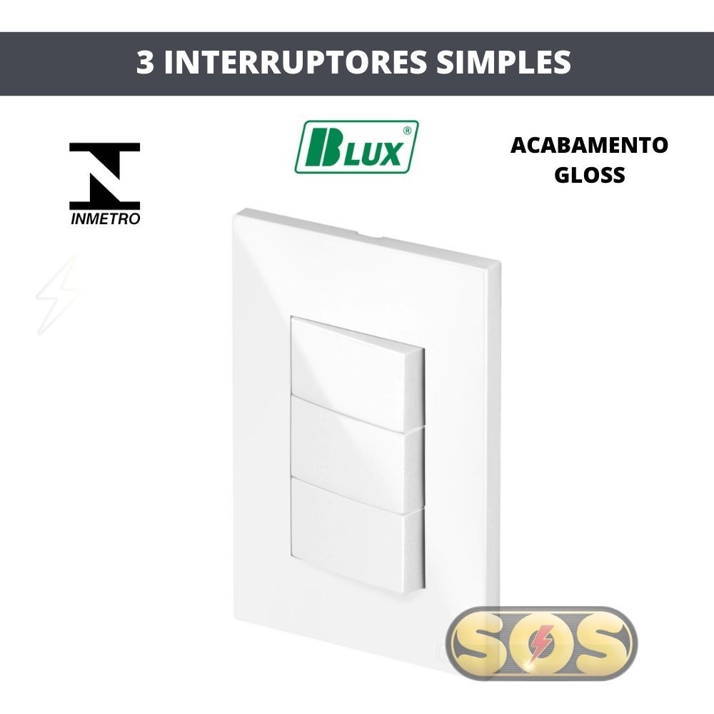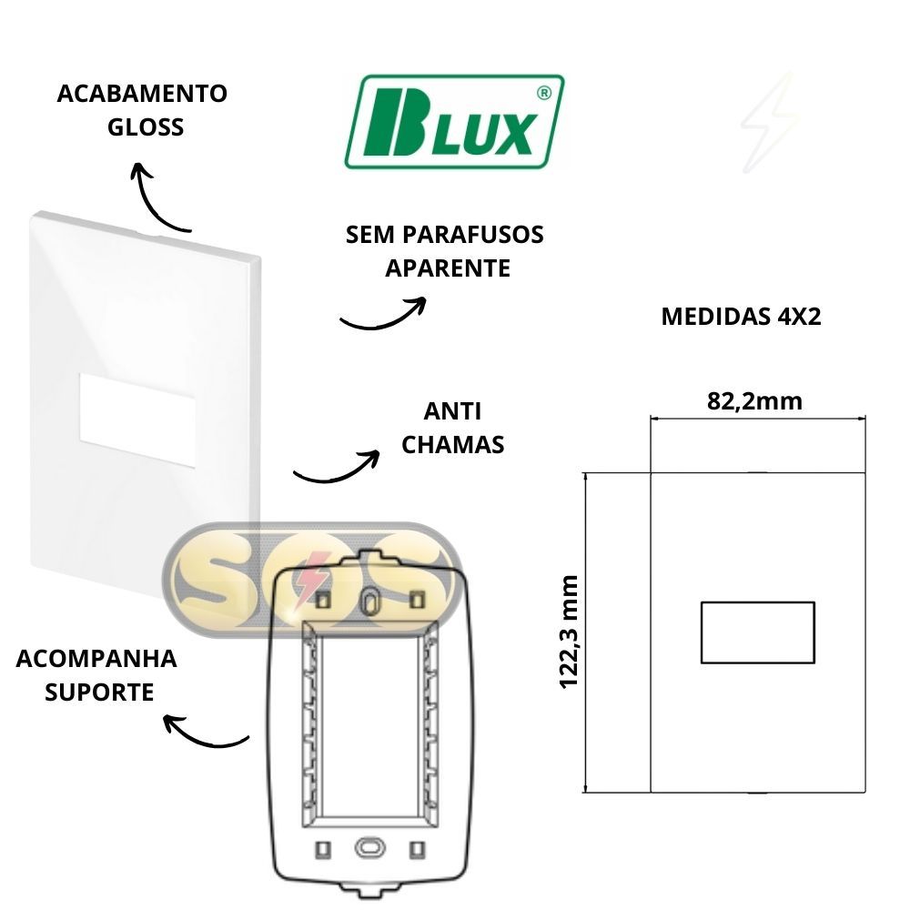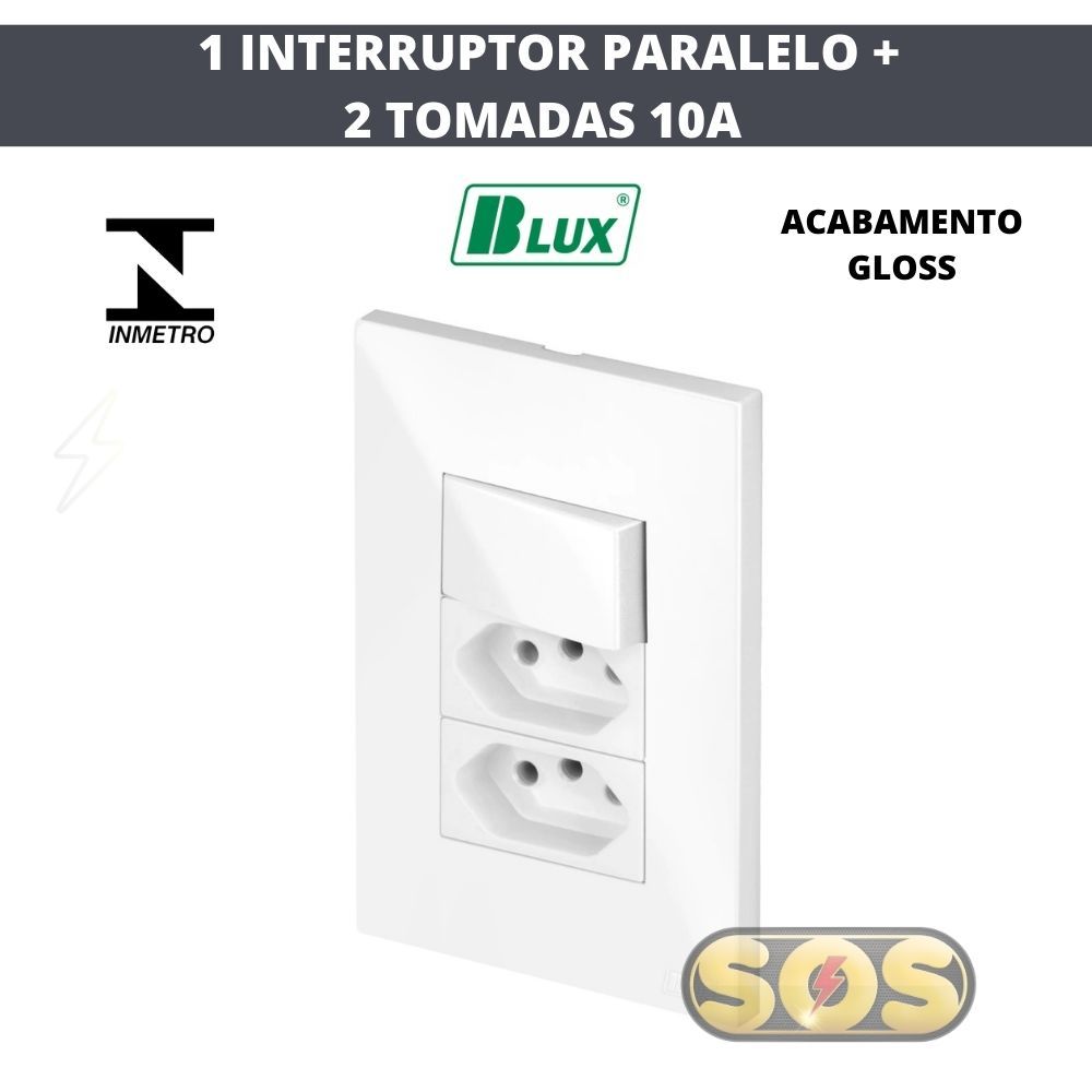 CONJUNTOS TOMADAS 10A, 20A, INTERRUPTORES , RJ45, RJ11, PLACA CEGA 4X2 4X4 RECTA GLOSS BRANCA BLUX