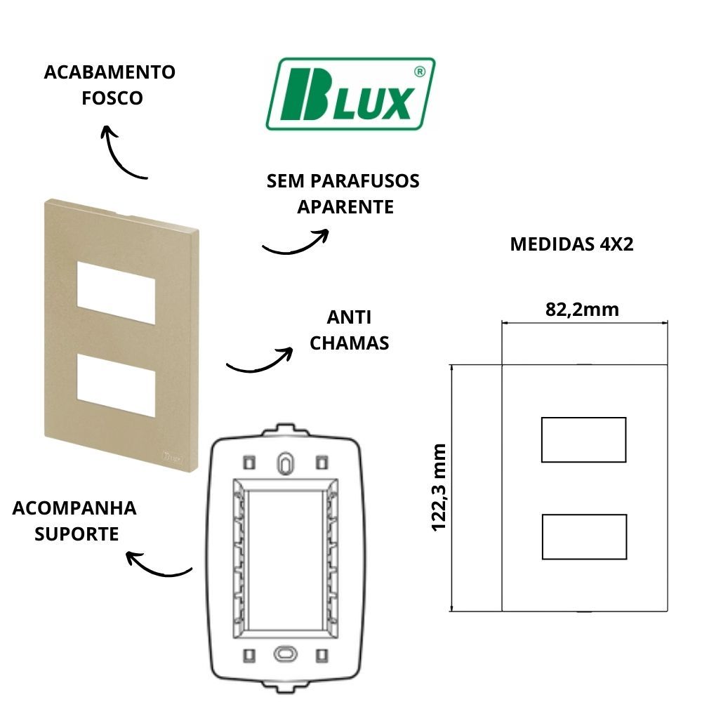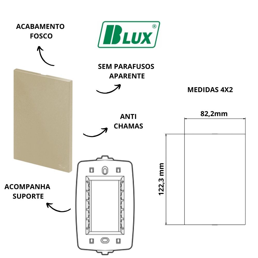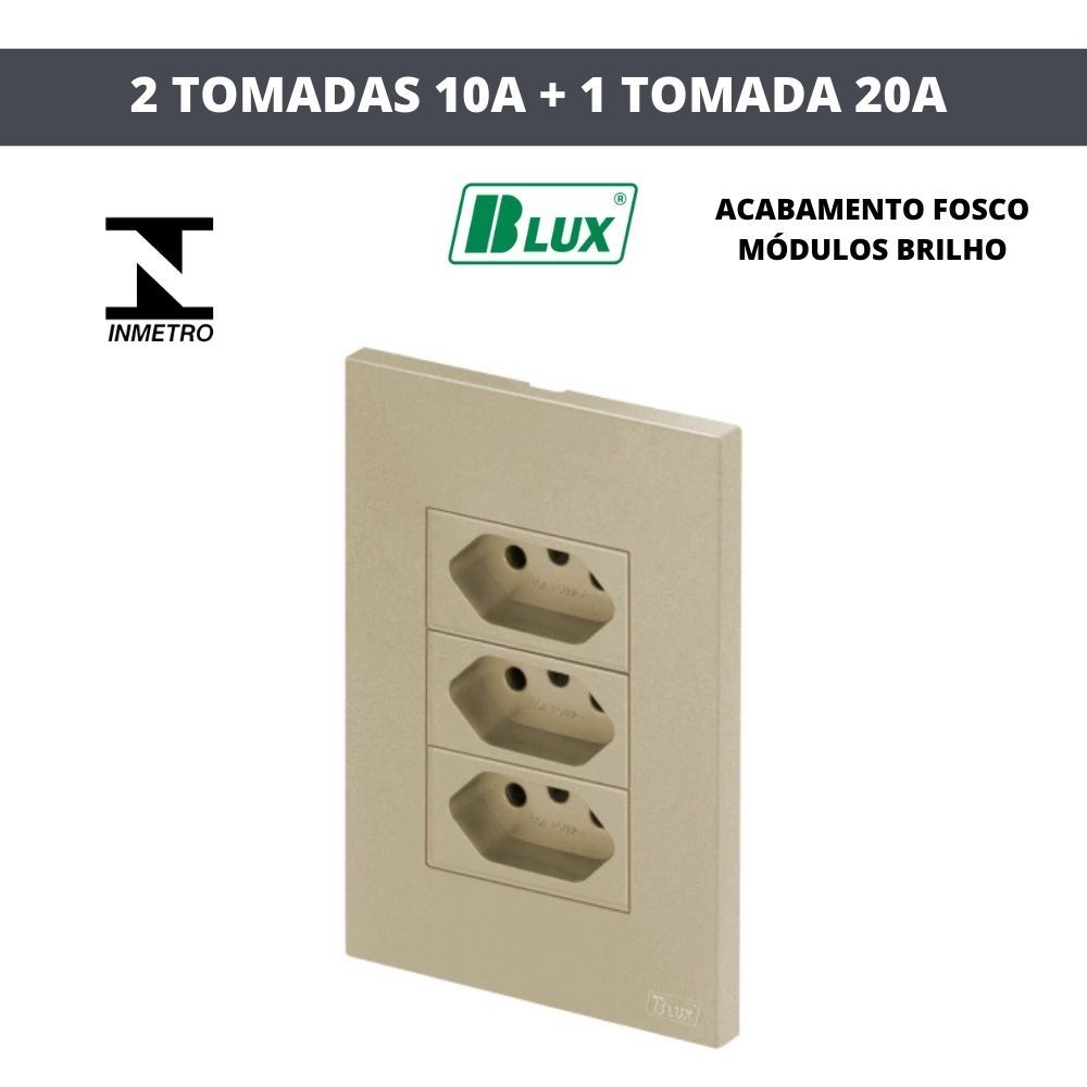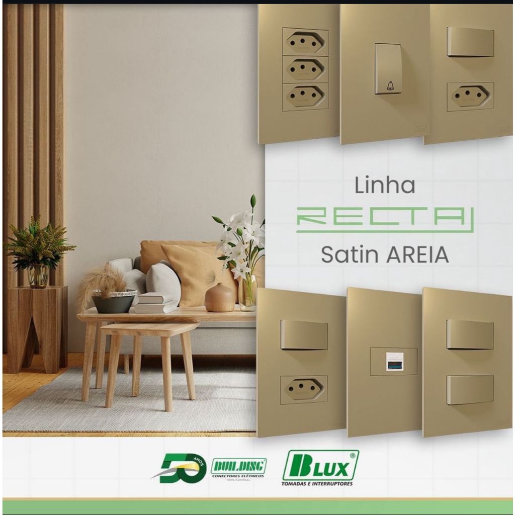 CONJUNTOS AREIA FOSCO RECTA SATIN BLUX TOMADAS 10A, 20A, INTERRUPTORES, Rj45 OU Rj11 4X2, 4X4