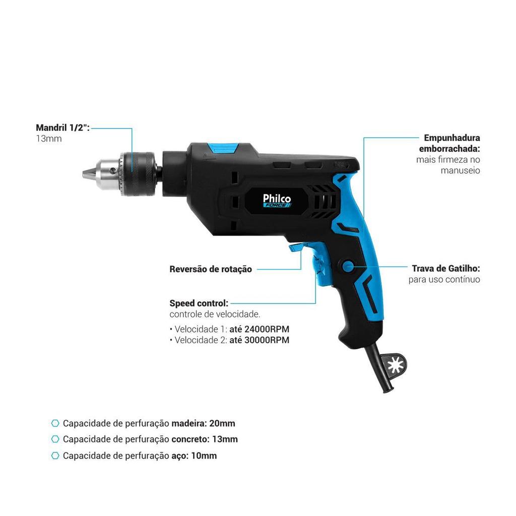 Furadeira Philco Force 3000 RPM Mandril 13mm 850W PFU04